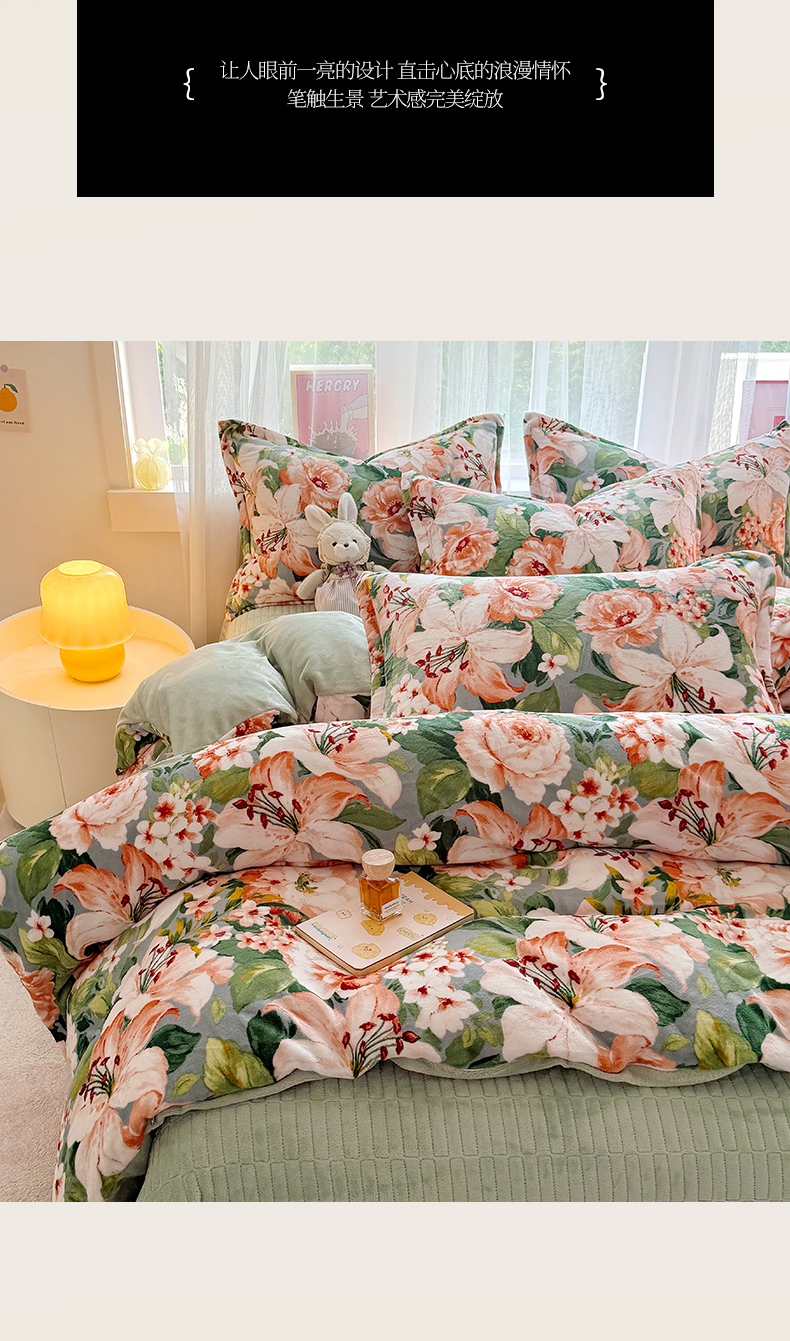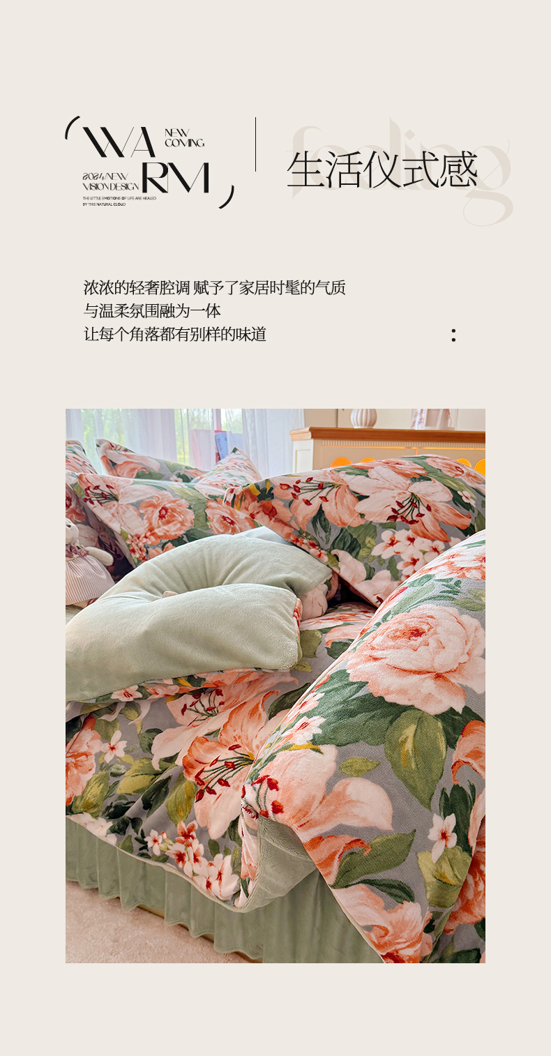 当前位置: 91家纺网 > 商品网购 > 床品套件 > 四件套 > 牛奶绒四件套 > 梵克保罗 2025秋冬新款印花牛奶绒床盖炕垫炕盖四件套-云裳 云裳-牡丹倾城绿