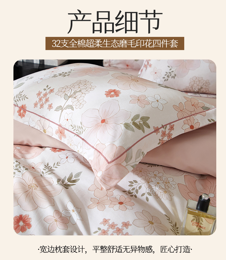 商品名称:品乐家纺 2025新款32支超柔生态磨毛四件套 春意