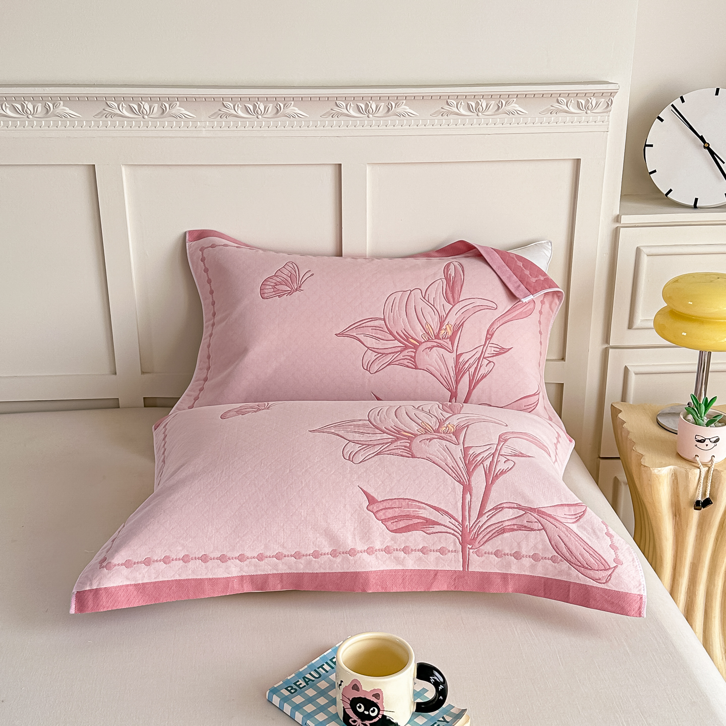 沐瑟家纺 2025新款馨梦枕巾 四叶草-粉 52x75cm枕巾一对