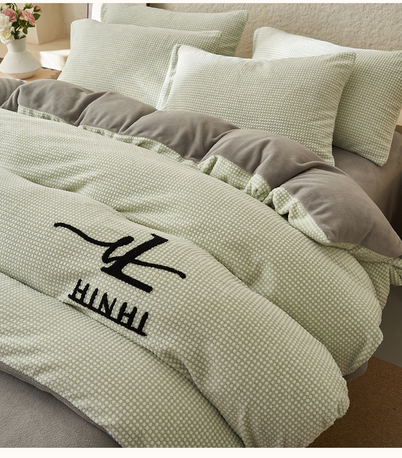 商品名称:早晨家纺 2025新款深蓝款阳离子提花牛奶绒四件套 深蓝-绿