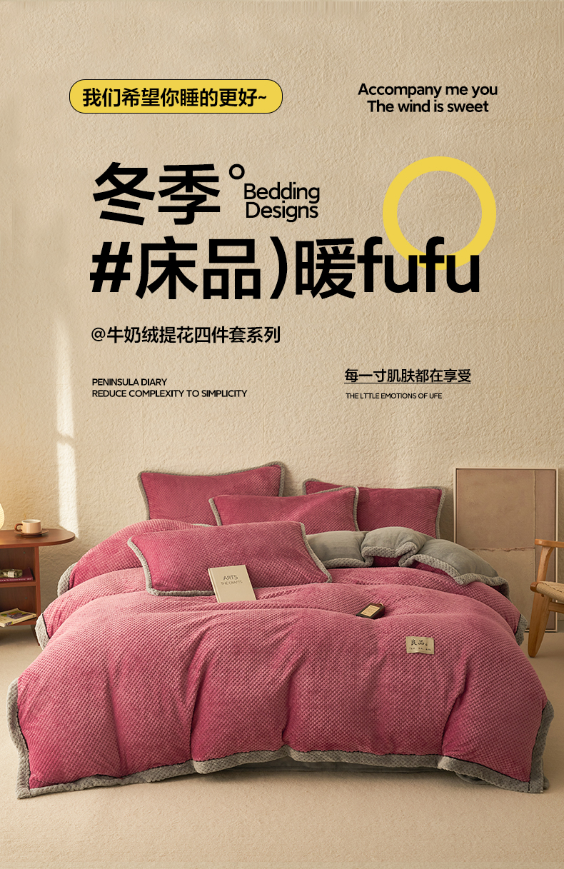 商品名称:早晨家纺 2025新款尚流款牛奶绒提花四件套 尚流-豆沙