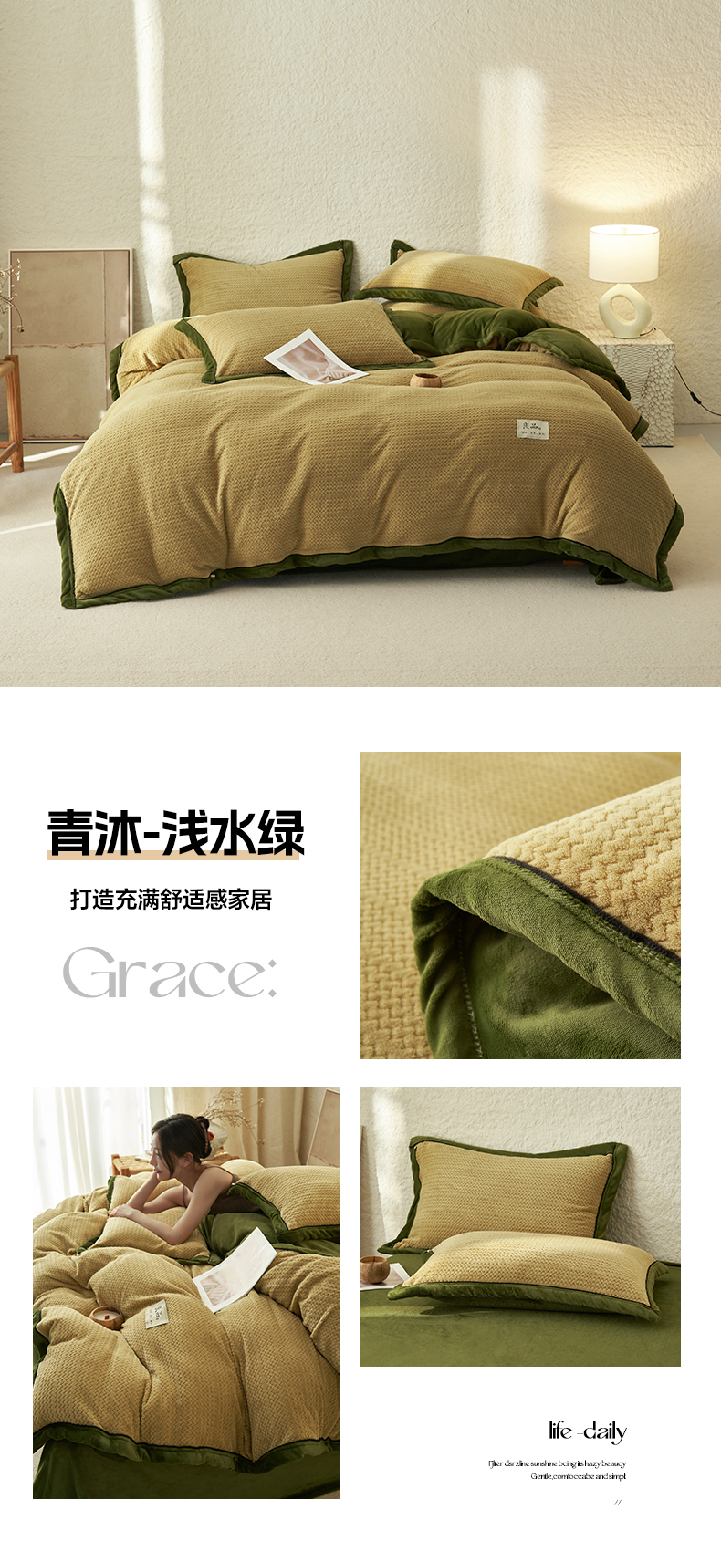早晨家纺 2025新款青沐款牛奶绒提花四件套 青沐-浅水绿