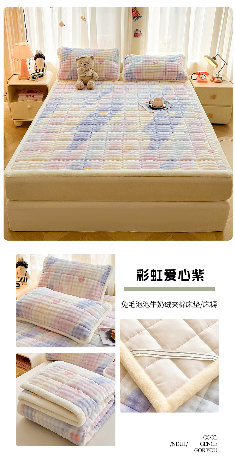 • 91家纺网 家纺一手货源 找家纺 (总)梵朴 2025新款牛奶绒泡泡兔毛绒床垫学生宿舍床褥子床护垫(大床款印花系列)-场景二,爱心蝴蝶结绿,彩虹爱心紫,彩虹哈皮狗,繁星,黄油小熊,咖底蛋糕熊,蕾丝蝴蝶结紫,梦幻太空人,趴趴熊,顽皮小熊猫,星黛露粉,星星小熊灰,音乐狗蓝--,云纹爱心粉