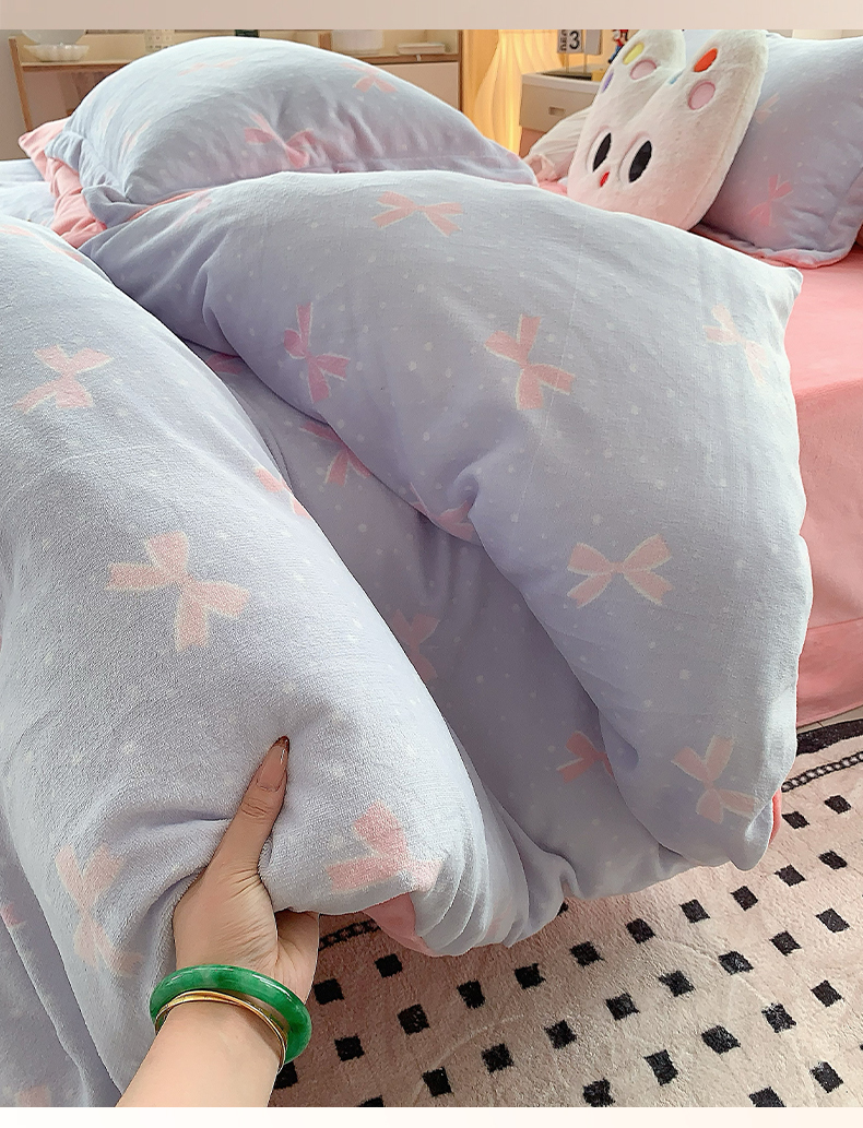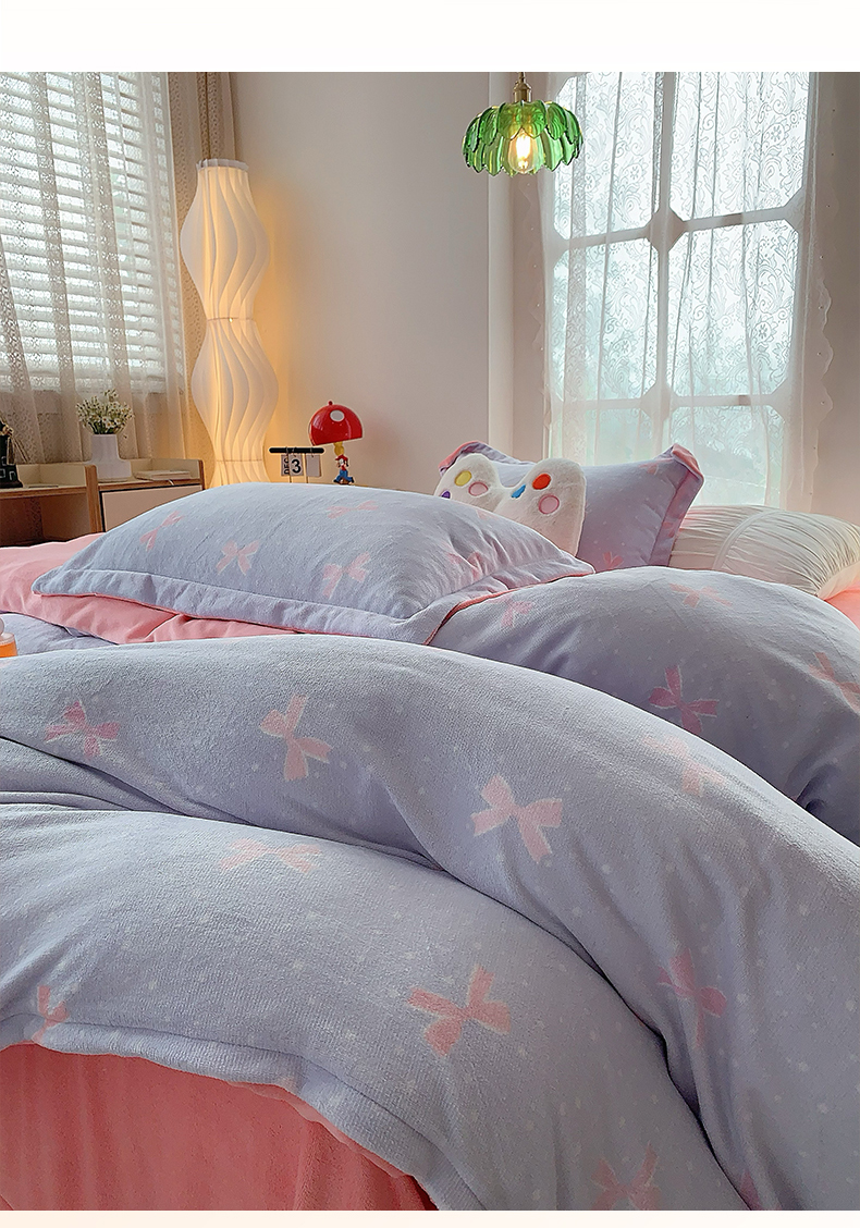 莱豫家纺 2025新款加厚牛奶绒三件套四件套保暖不静电 蝶影