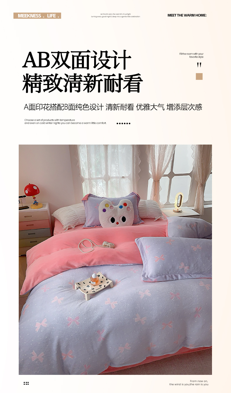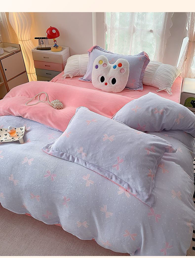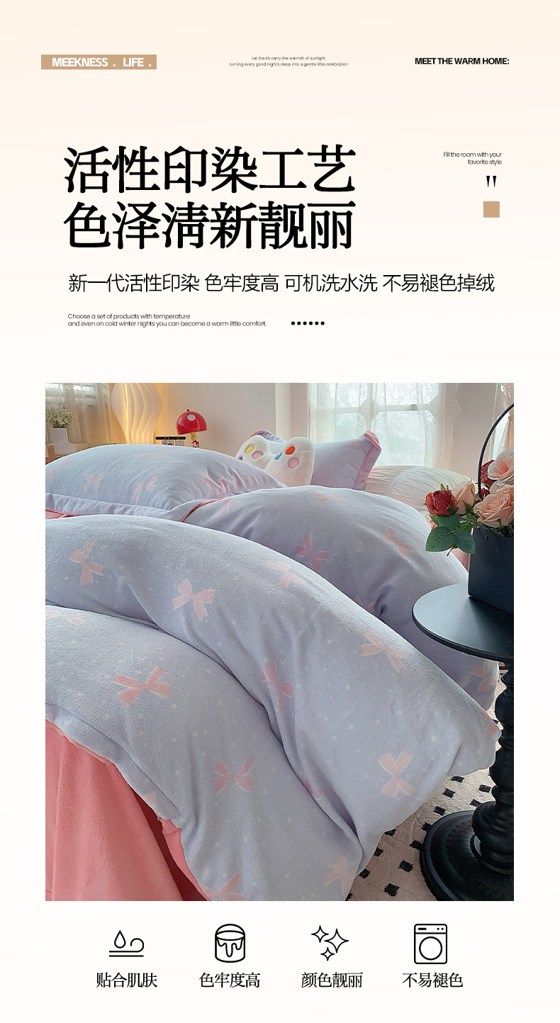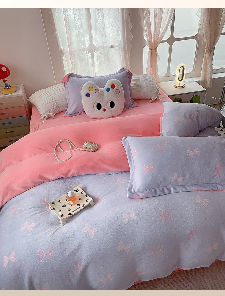 商品名称:莱豫家纺 2025新款加厚牛奶绒三件套四件套保暖不静电 蝶影