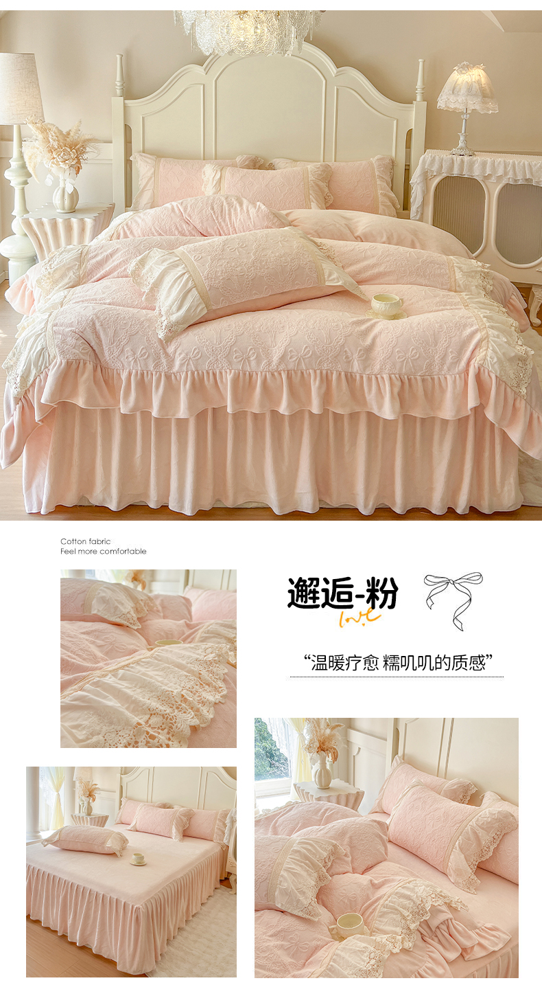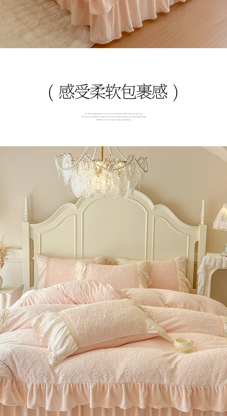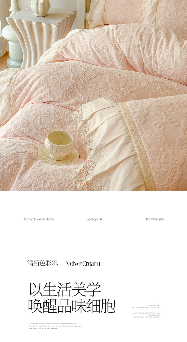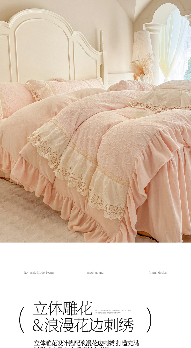 当前位置: 91家纺网 > 商品网购 > 床品套件 > 四件套 > 牛奶绒四件套 > (总)好儿喜家纺 2025新款法式雕花牛奶绒四件套床裙款-邂逅系列