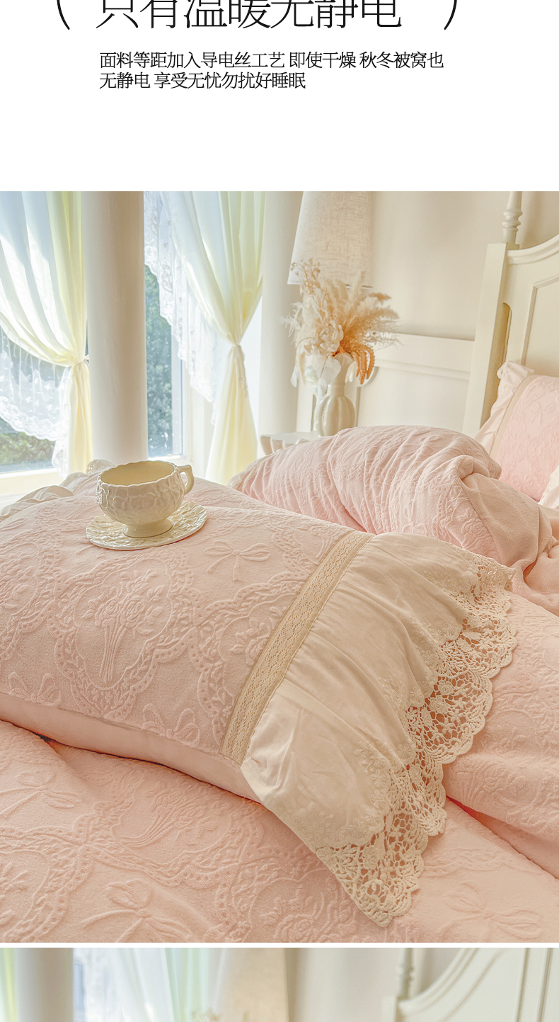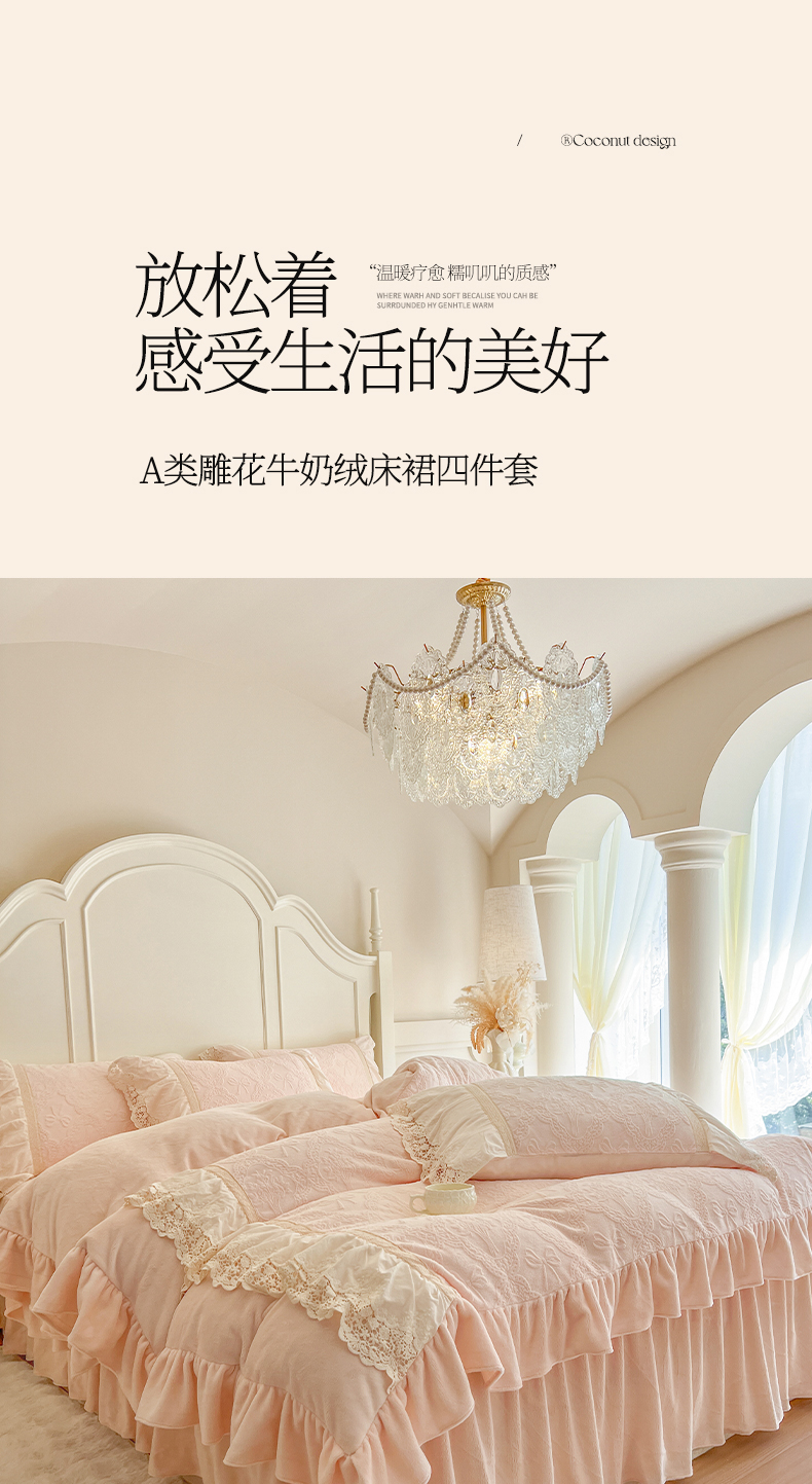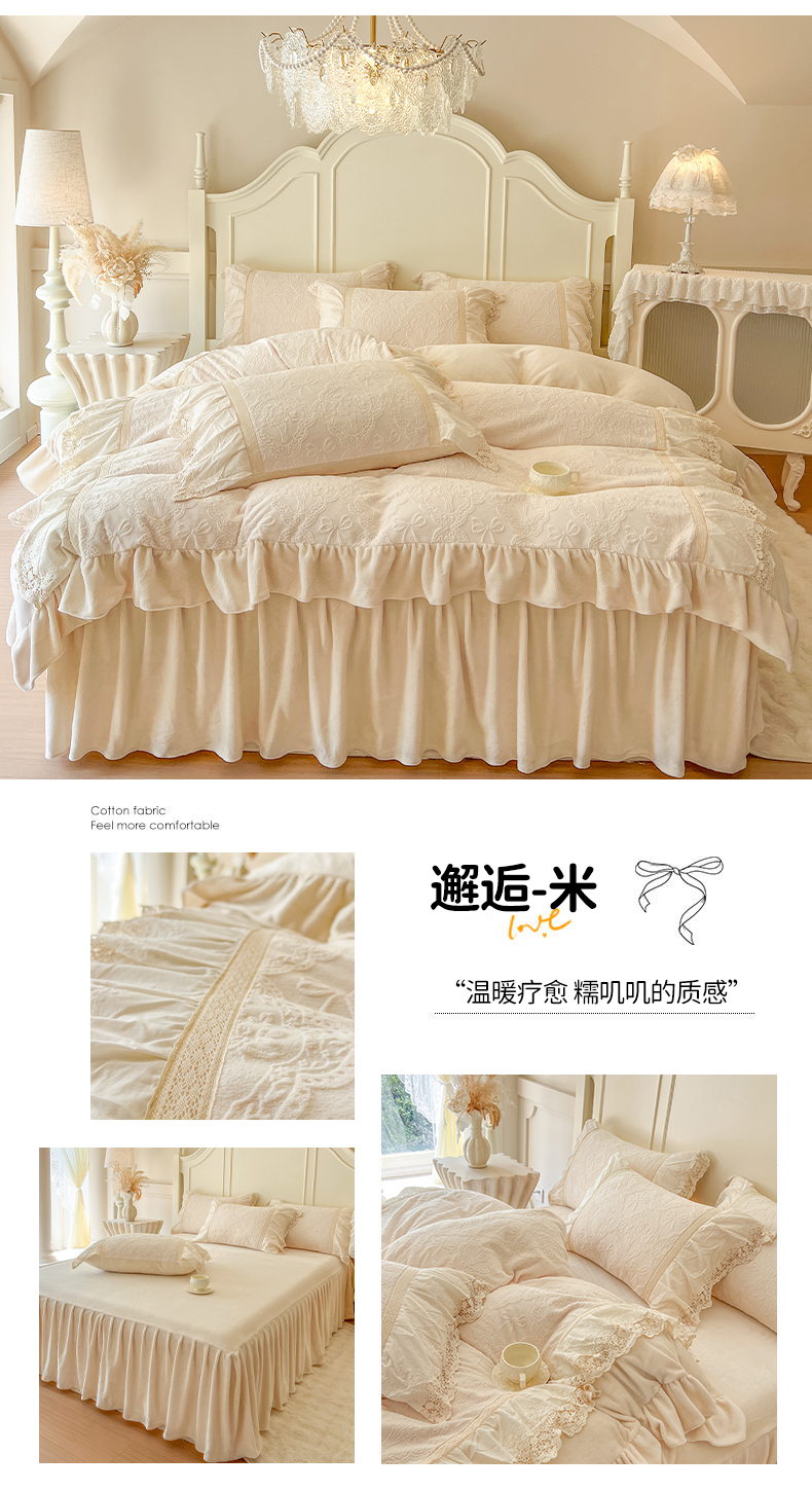 当前位置: 91家纺网 > 商品网购 > 床品套件 > 四件套 > 牛奶绒四件套 > (总)好儿喜家纺 2025新款法式雕花牛奶绒四件套床裙款-邂逅系列