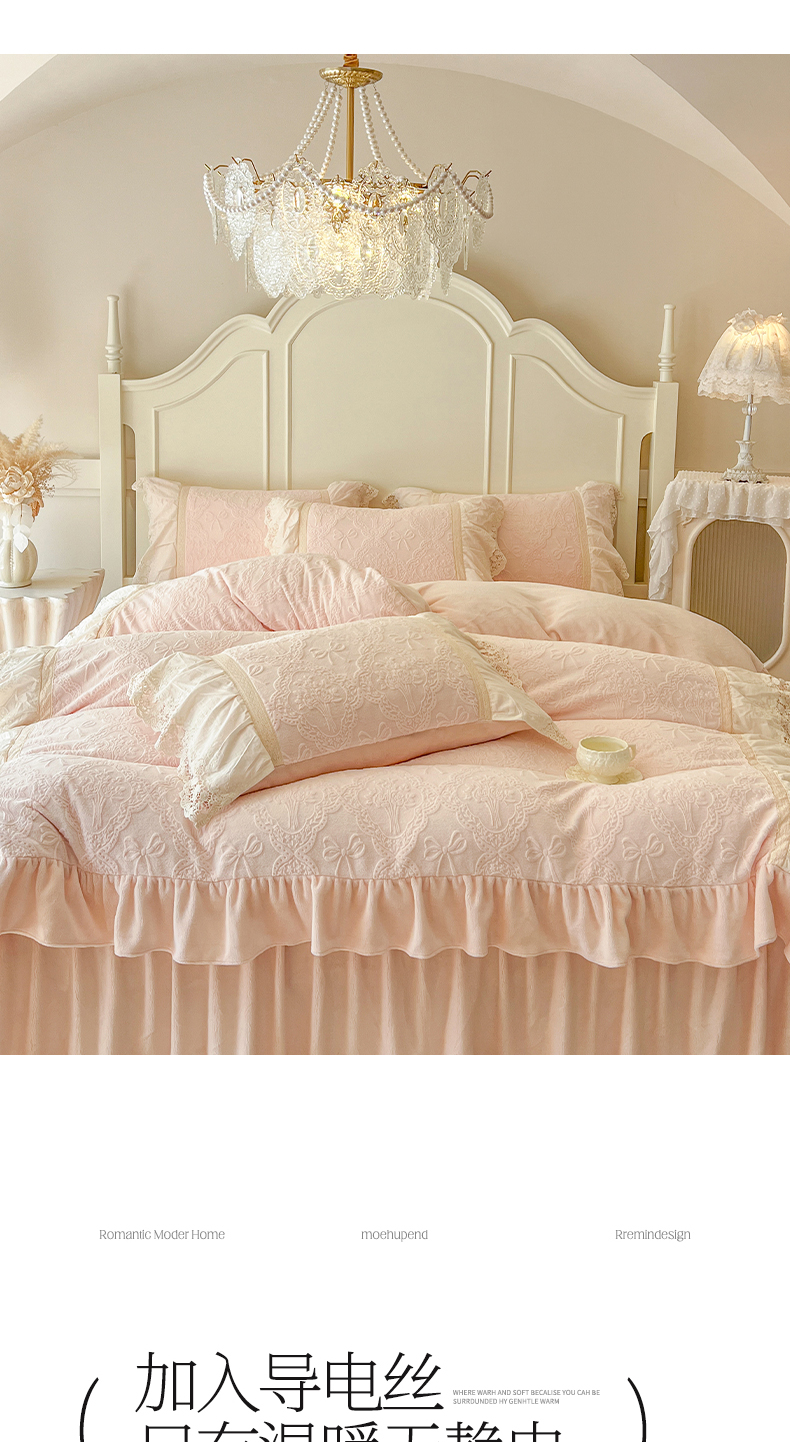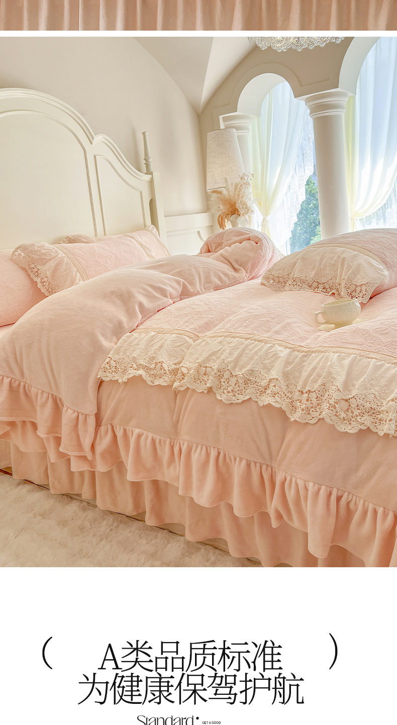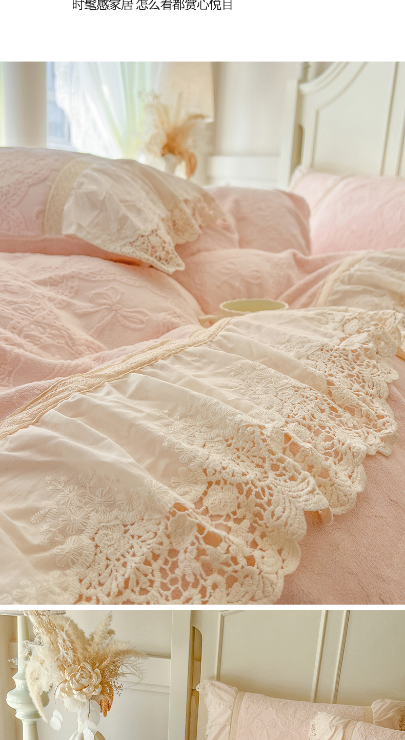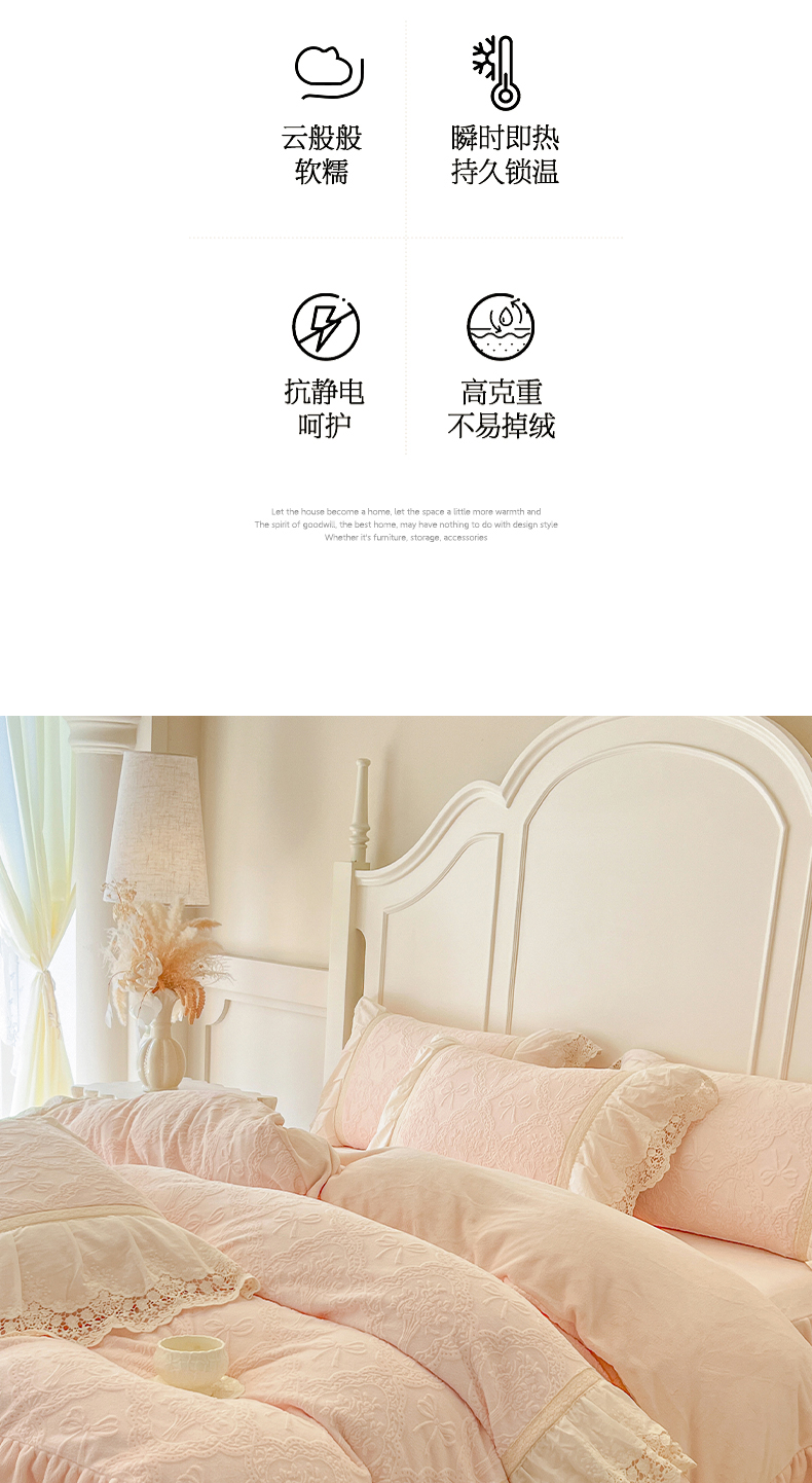 当前位置: 91家纺网 > 商品网购 > 床品套件 > 四件套 > 牛奶绒四件套 > (总)好儿喜家纺 2025新款法式雕花牛奶绒四件套床裙款-邂逅系列