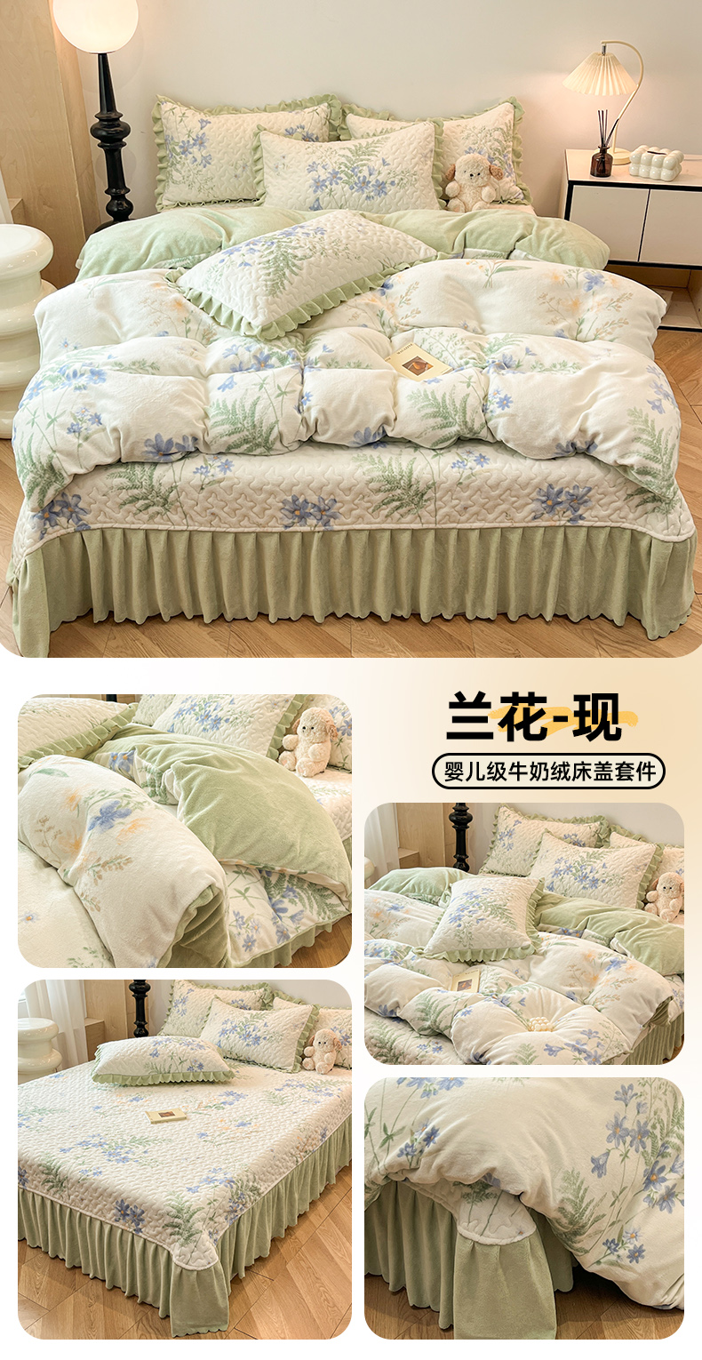 当前位置: 91家纺网 > 商品网购 > 床品套件 > 四件套 > 牛奶绒四件套 > 金梦家居 2025新款高克重牛奶绒床盖四件套 兰花-现