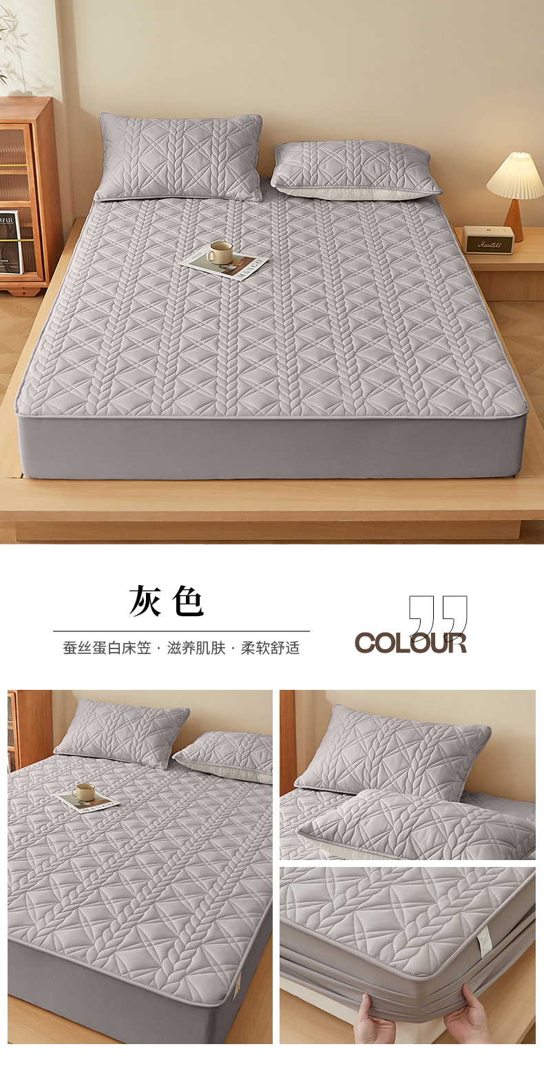 • 91家纺网 家纺一手货源 找家纺 盛眠家纺 2025新款桑蚕丝蛋白夹棉床笠-叶韵 叶韵 灰色