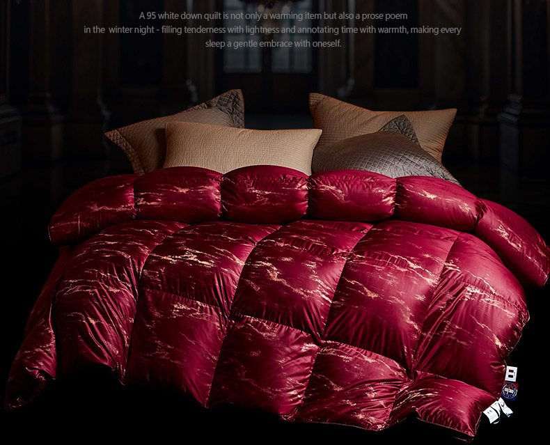 • 91家纺网 家纺一手货源 找家纺 (总)暖羽屋羽绒馆 2025新款国标95白鹅绒被子 绒子含量95羽绒被芯 双人2米加大冬被 婚庆羽绒被秋冬被,恒运莱 金-角度一,恒运莱 金-角度二