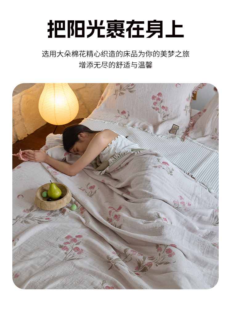 (总)沐瑟家纺 2025新款亲肤柔软全棉纱布中国风盖毯毯子,百花集,翠影鸟-蓝色,花想容,花鸟韵,蝶语-绿,蝶语-淡粉,花蝶-米,比翼鸟,墨葵,绮梦花