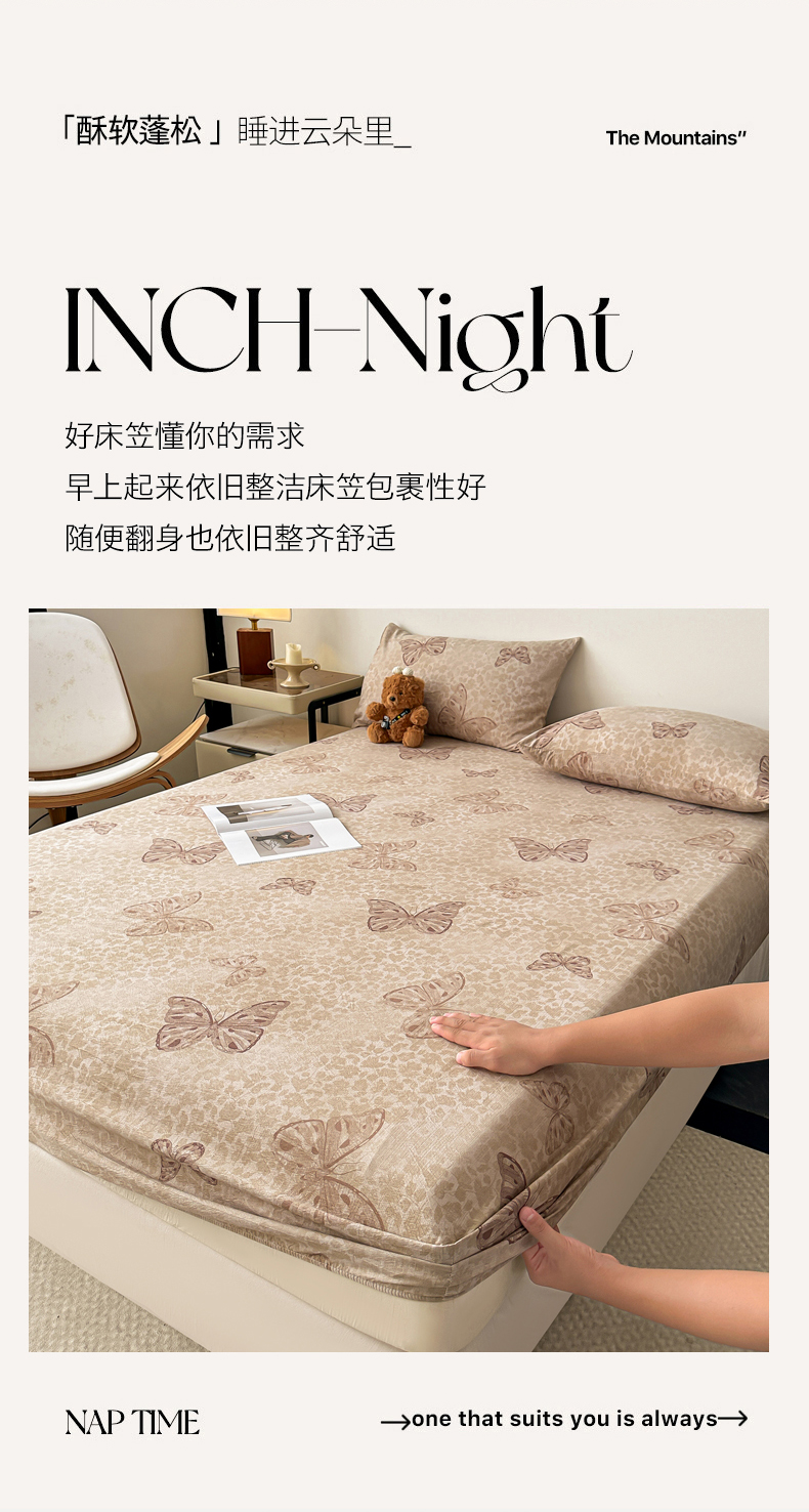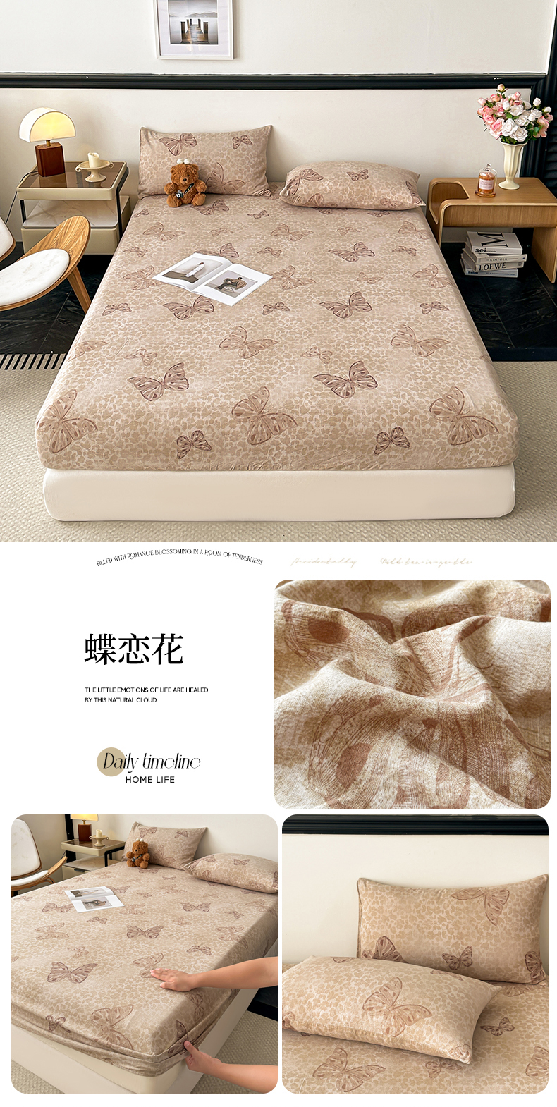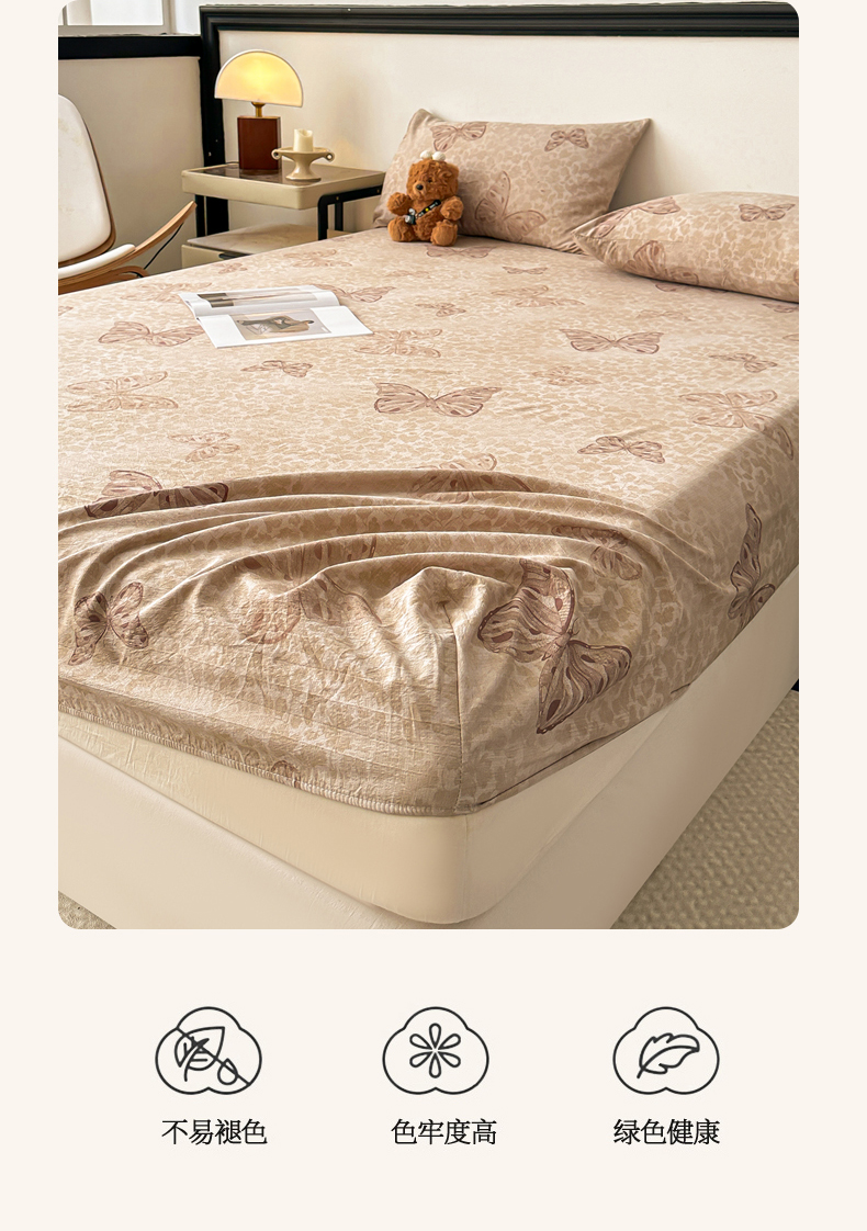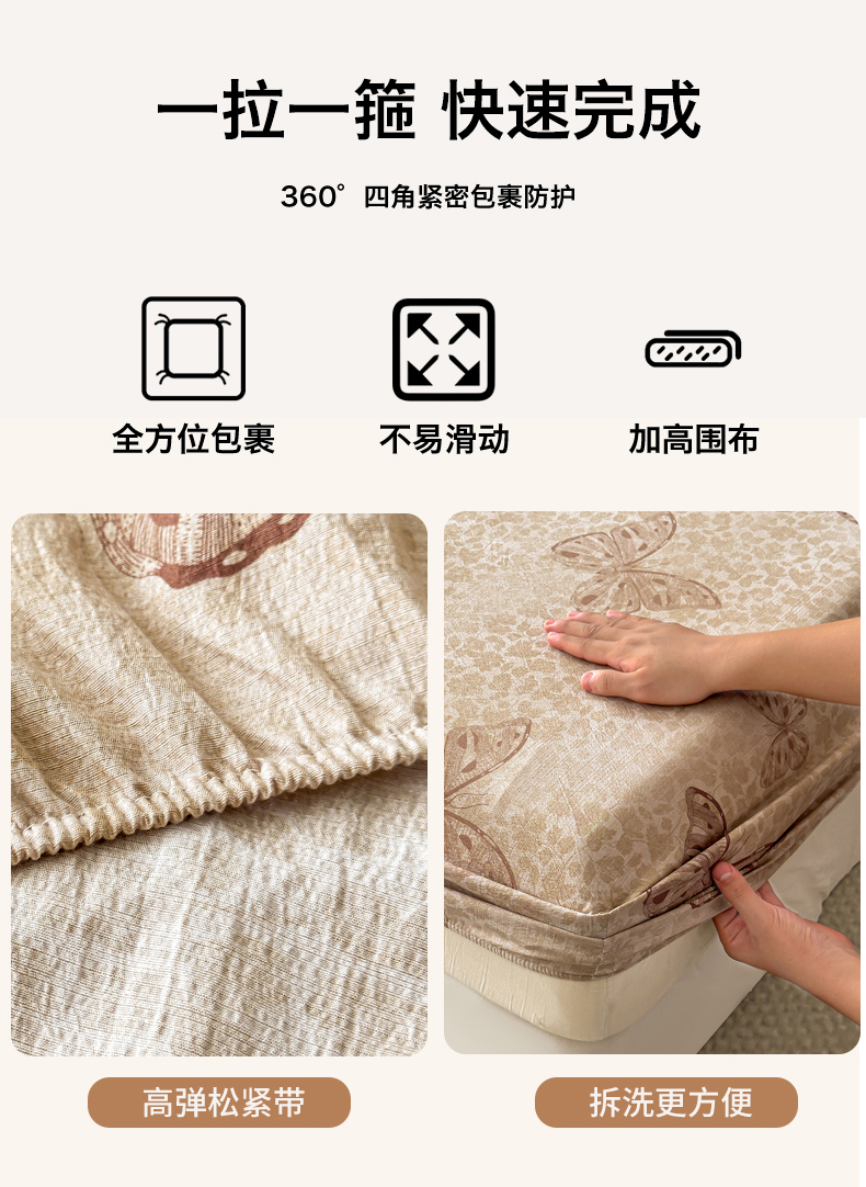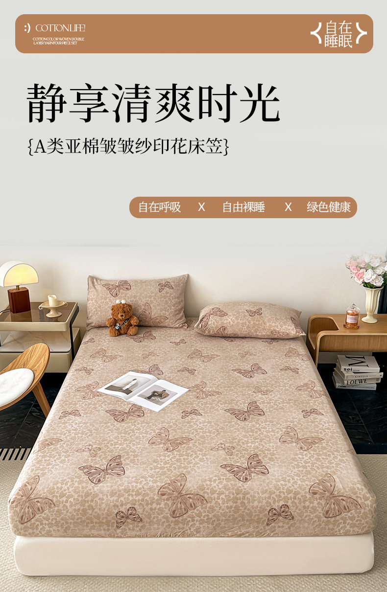 • 91家纺网 家纺一手货源 找家纺 梦嘉居 2025新款加厚亚麻皱皱纱床笠单床笠枕套床笠单品 蝶恋花