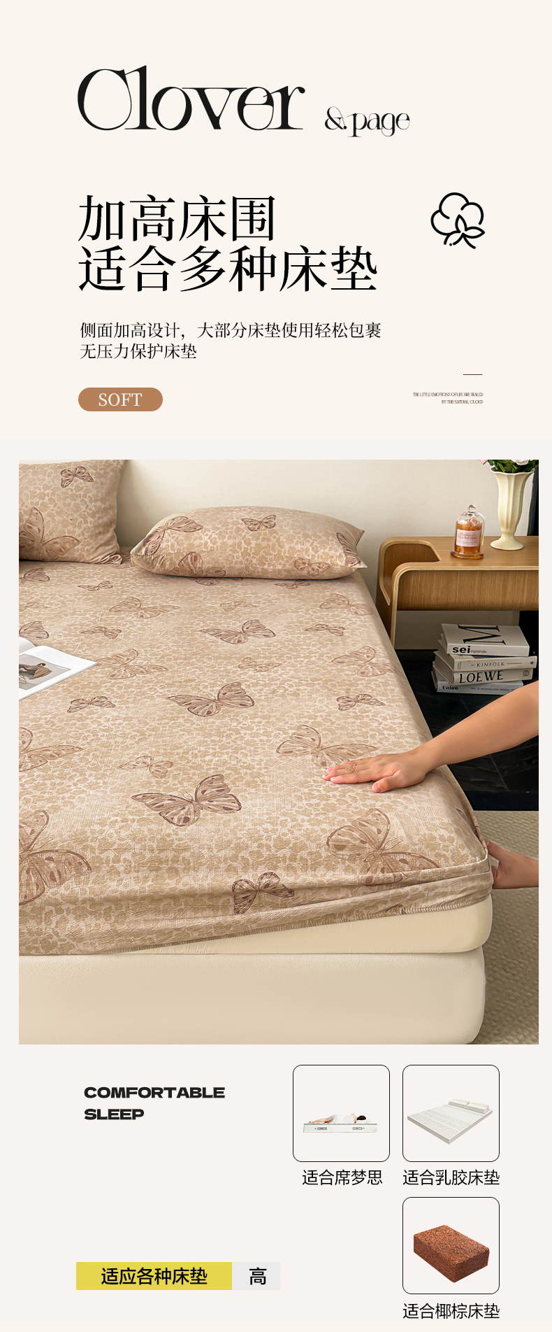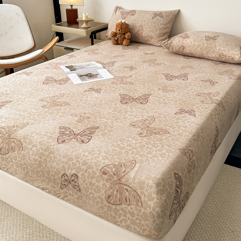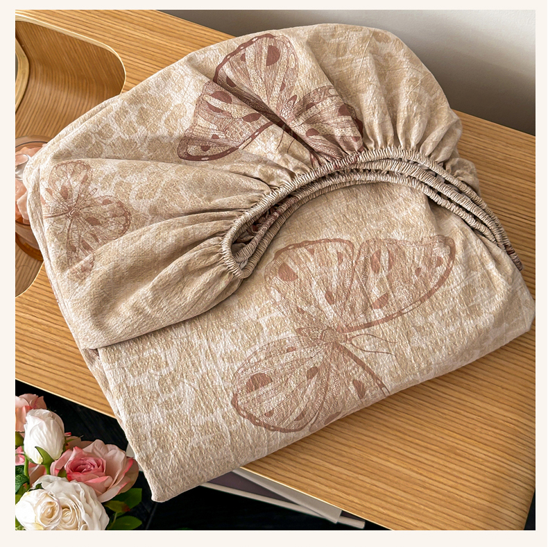 梦嘉居 2025新款加厚亚麻皱皱纱床笠单床笠枕套床笠单品 蝶恋花