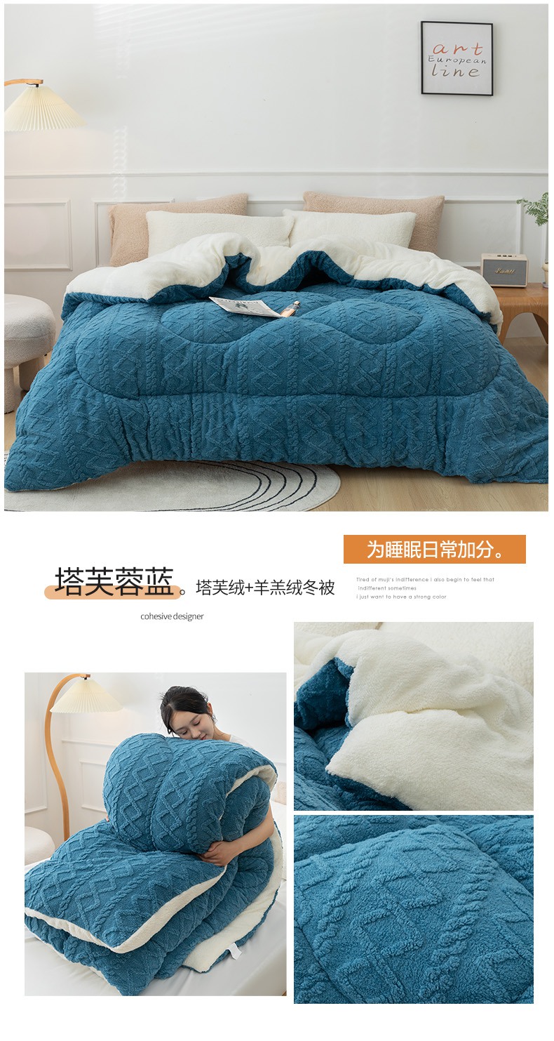 • 91家纺网 家纺一手货源 找家纺 悦织湾家纺 2025暖绒冬季被子A面雪花绒牛奶绒塔芙绒B面羊羔绒加厚速暖2025新款跨境出口外贸电商热销款可定做 牛奶绒被子蓝