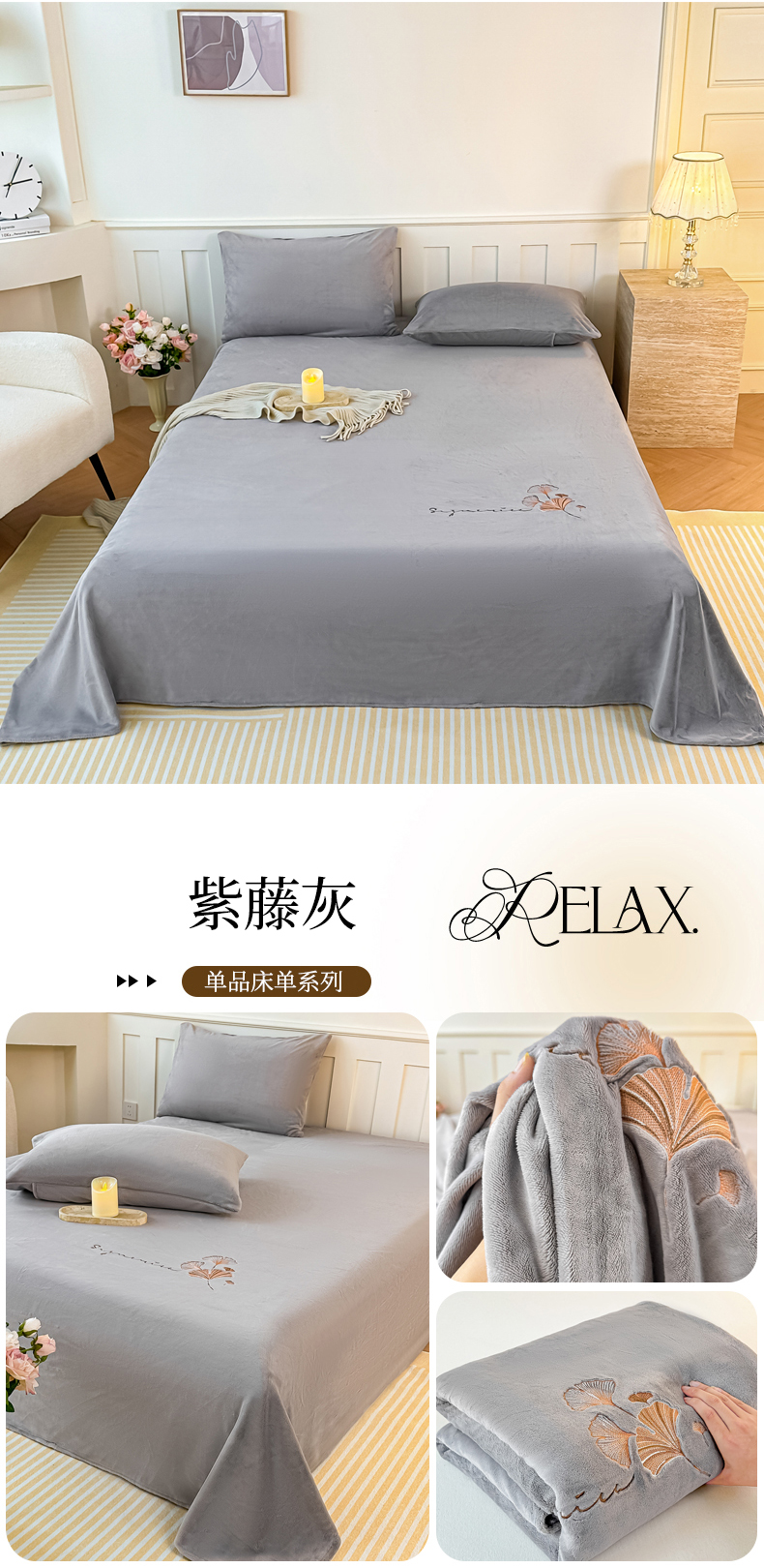 (总)卓缦家纺 2025新款秋冬牛奶绒刺绣床单加厚三件套单品,香槟,薄荷粉,宾利蓝,摩卡棕,奶白,紫藤灰,组合