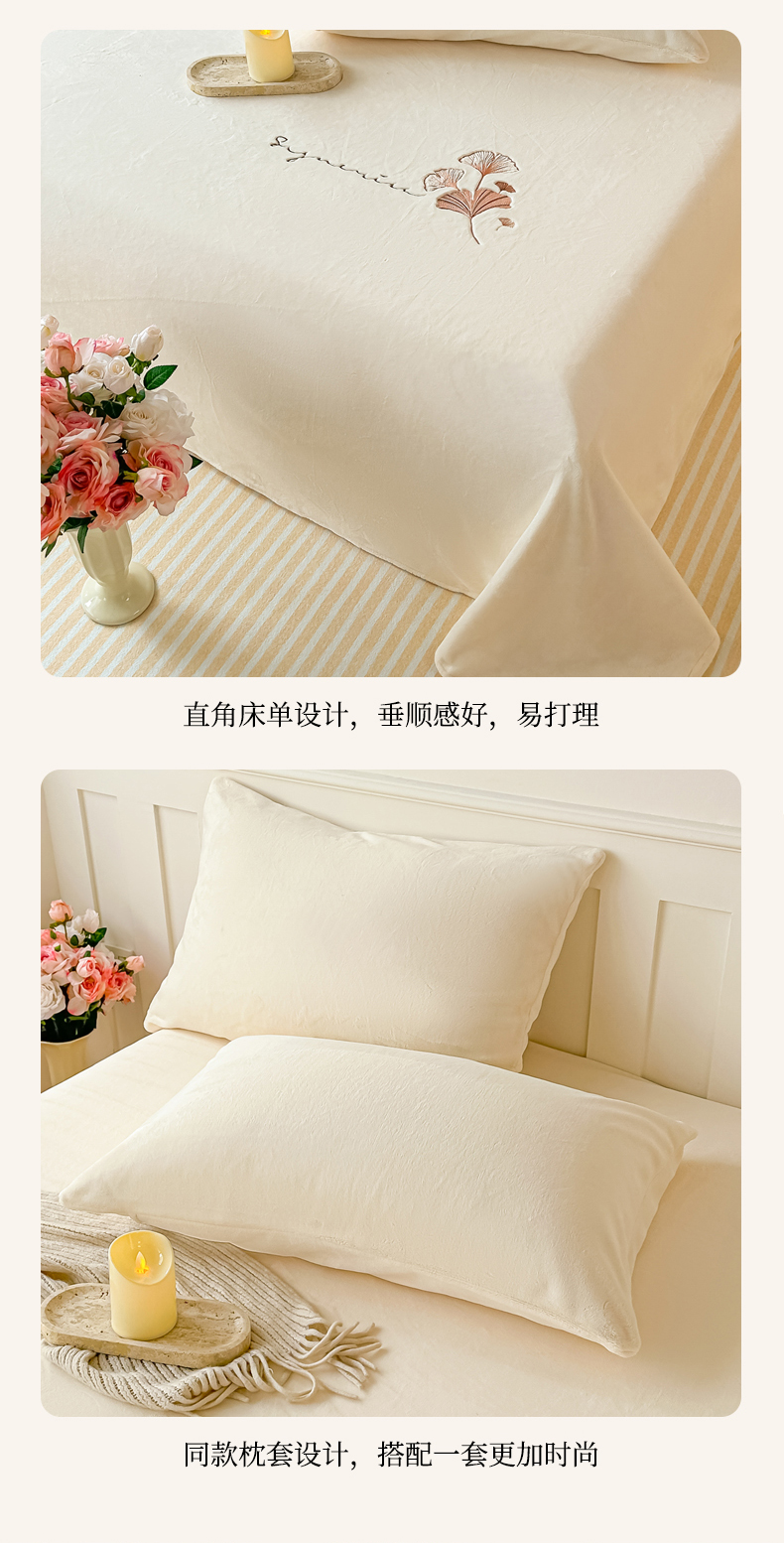 商品名称:卓缦家纺 2025新款秋冬牛奶绒刺绣床单加厚三件套单品 奶白