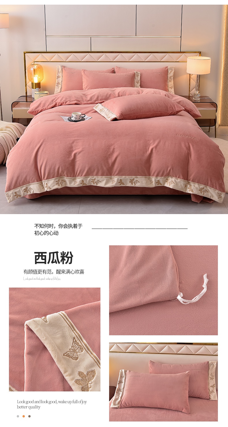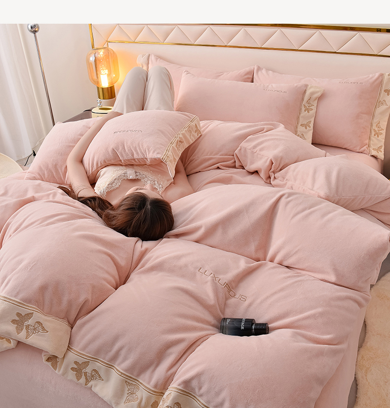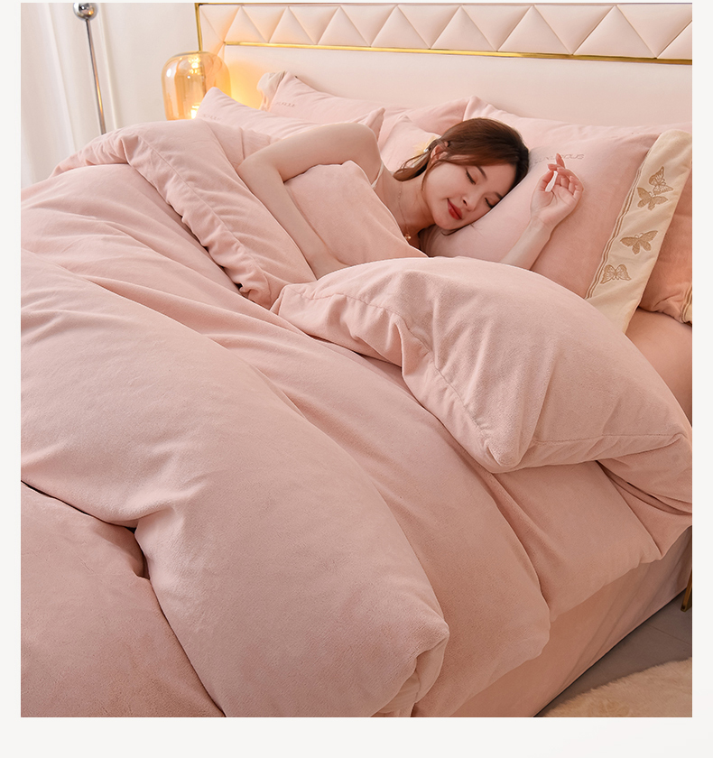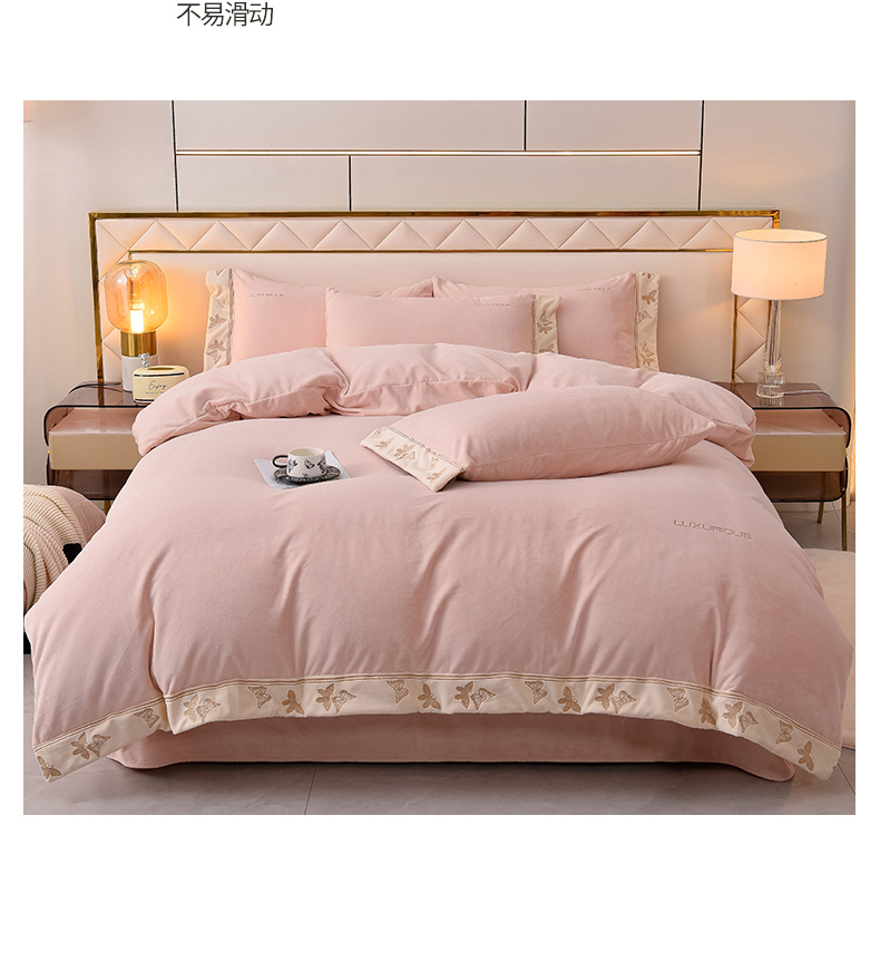 米奈家居 2025新款A类高克重婴儿绒四件套-吉娜系列 淡雅粉
