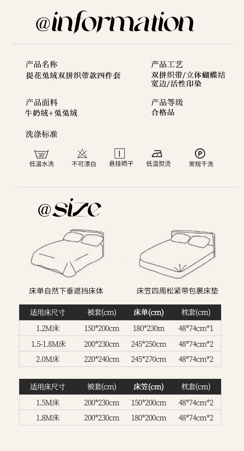商品名称:蓝邻家纺 2025新款提花兔绒双拼织带款四件套-微语系列 微语-香槟色