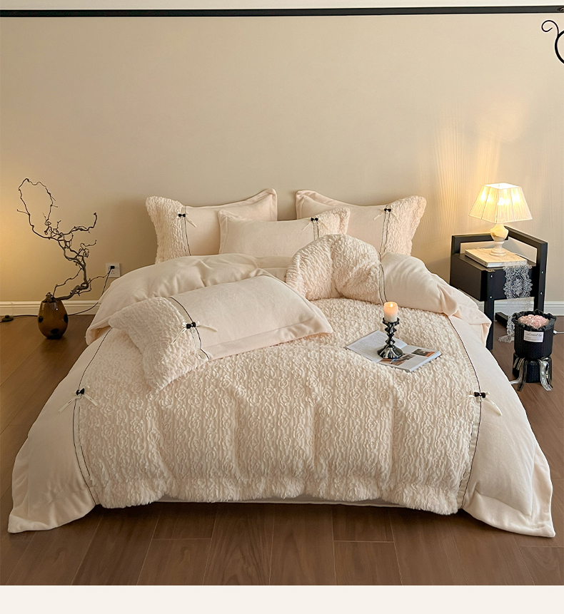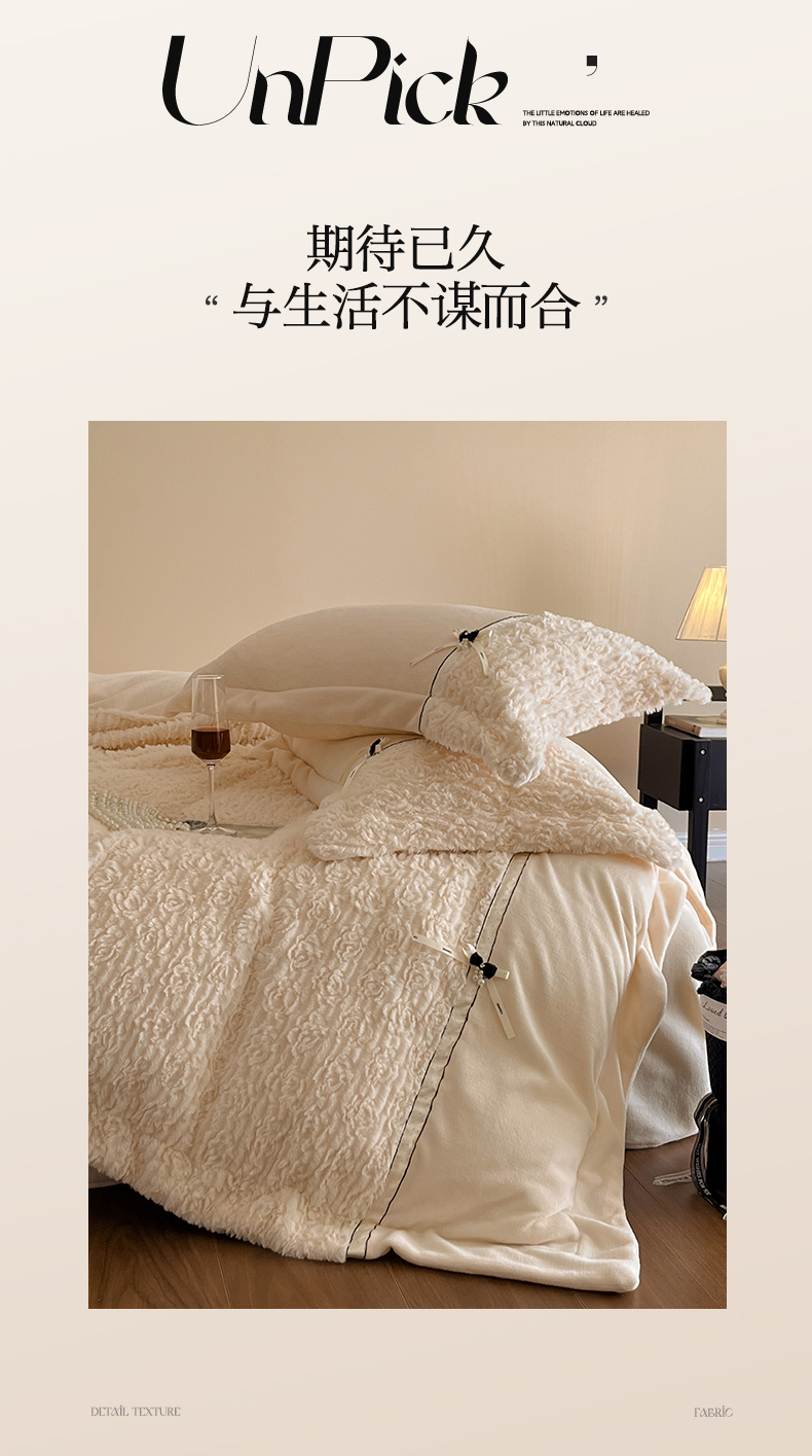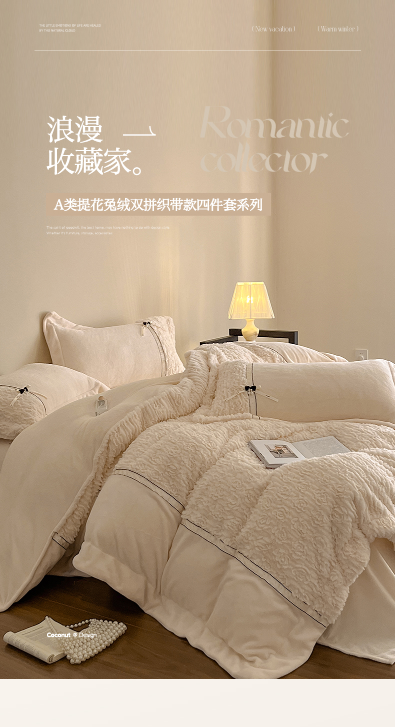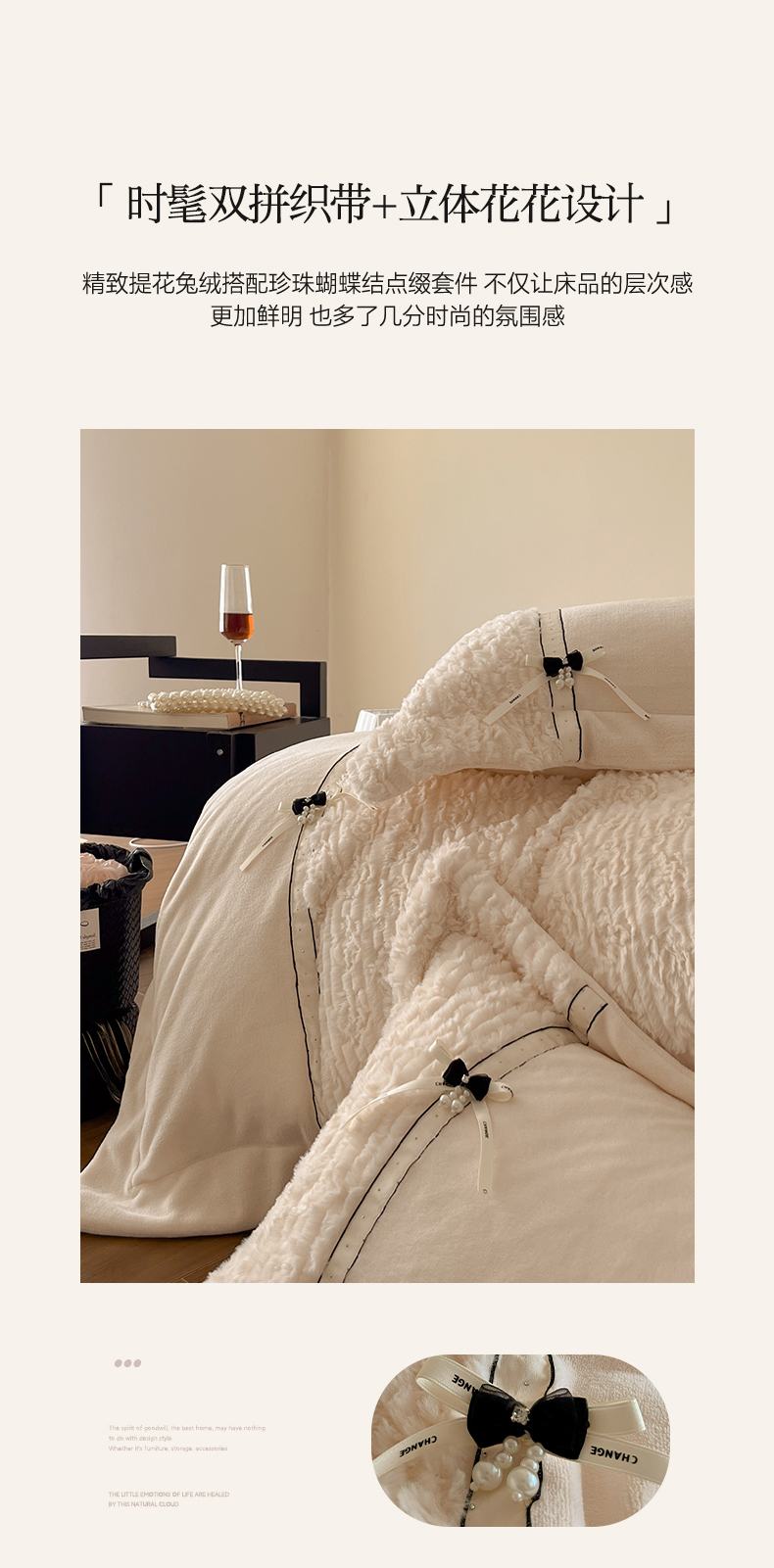 蓝邻家纺 2025新款提花兔绒双拼织带款四件套-微语系列 微语-香槟色
