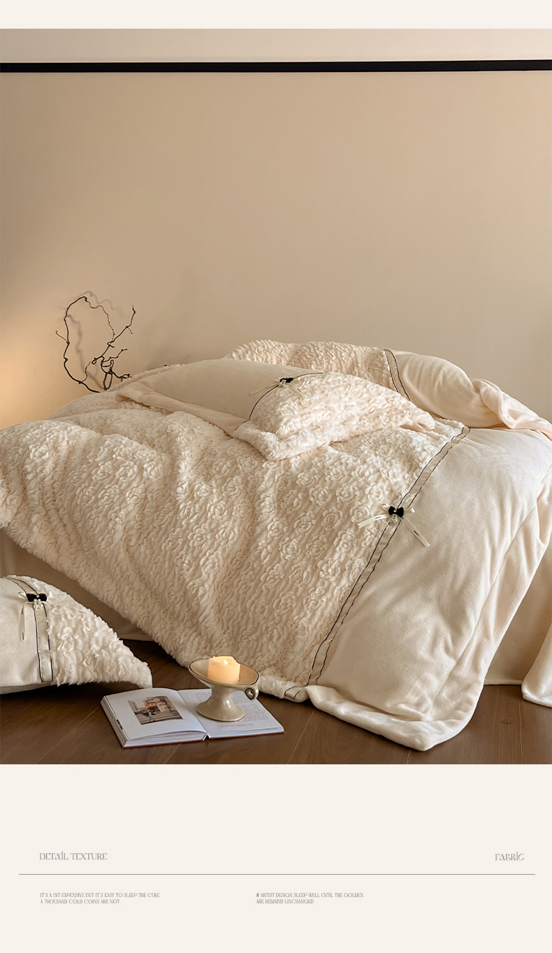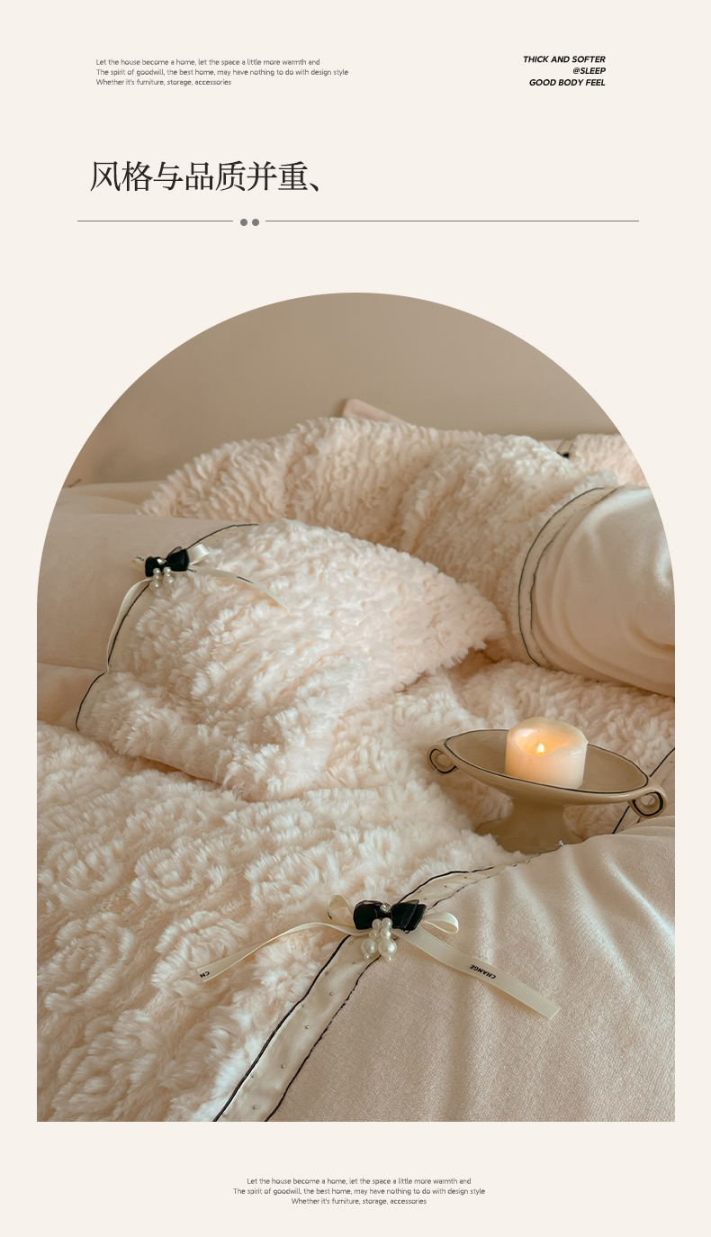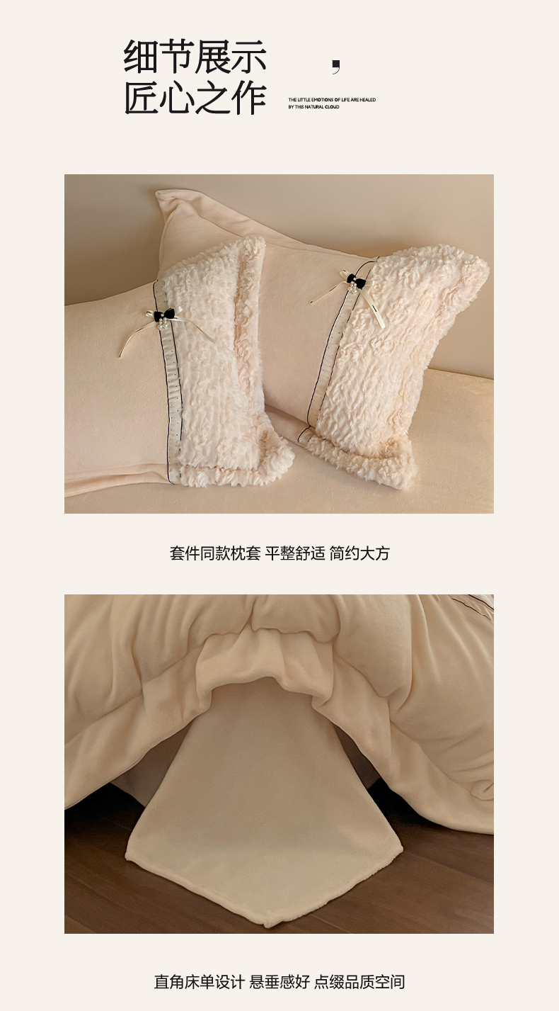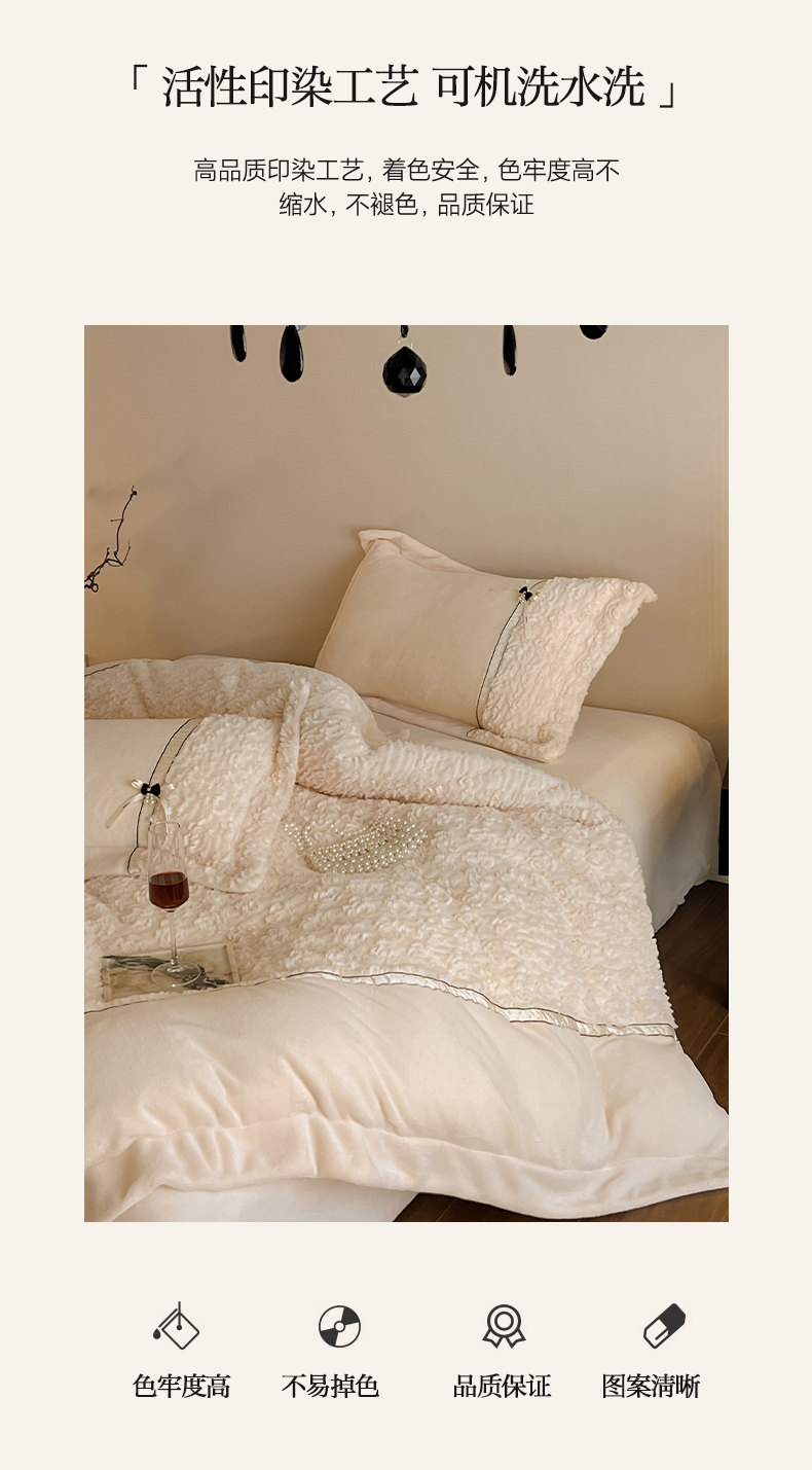 蓝邻家纺 2025新款提花兔绒双拼织带款四件套-微语系列 微语-香槟色