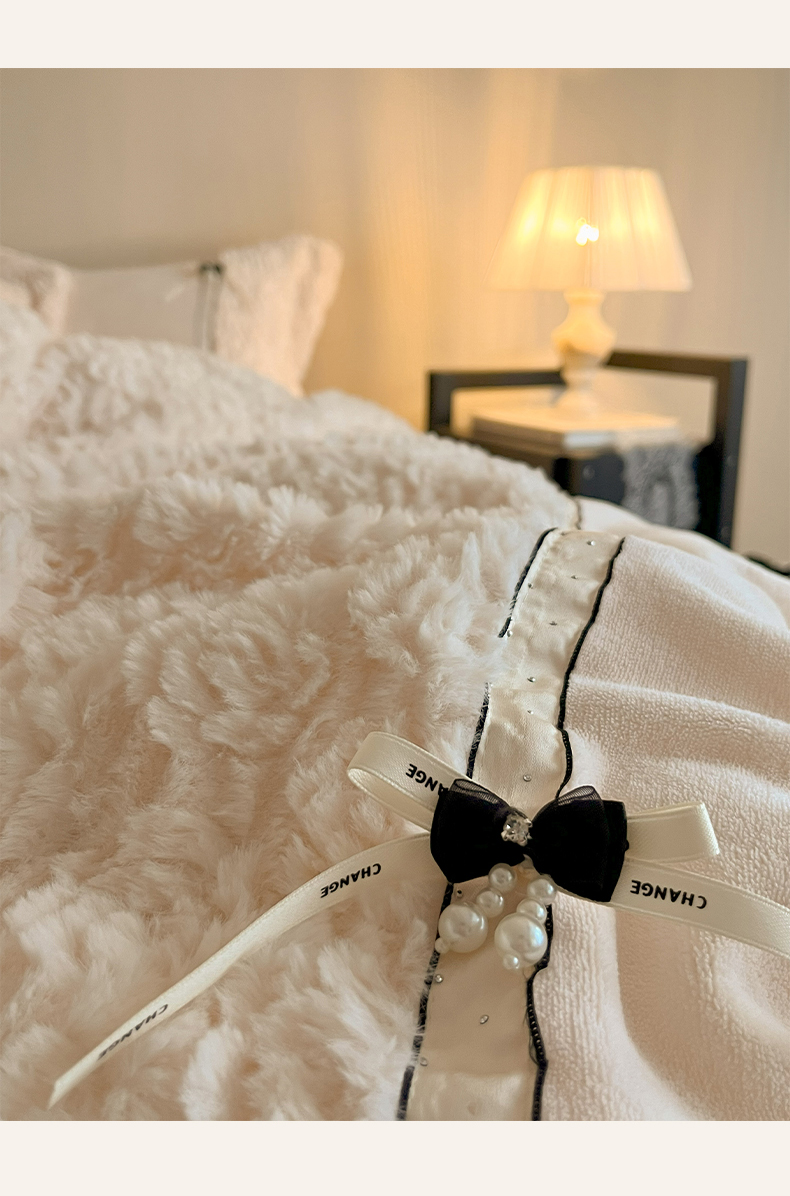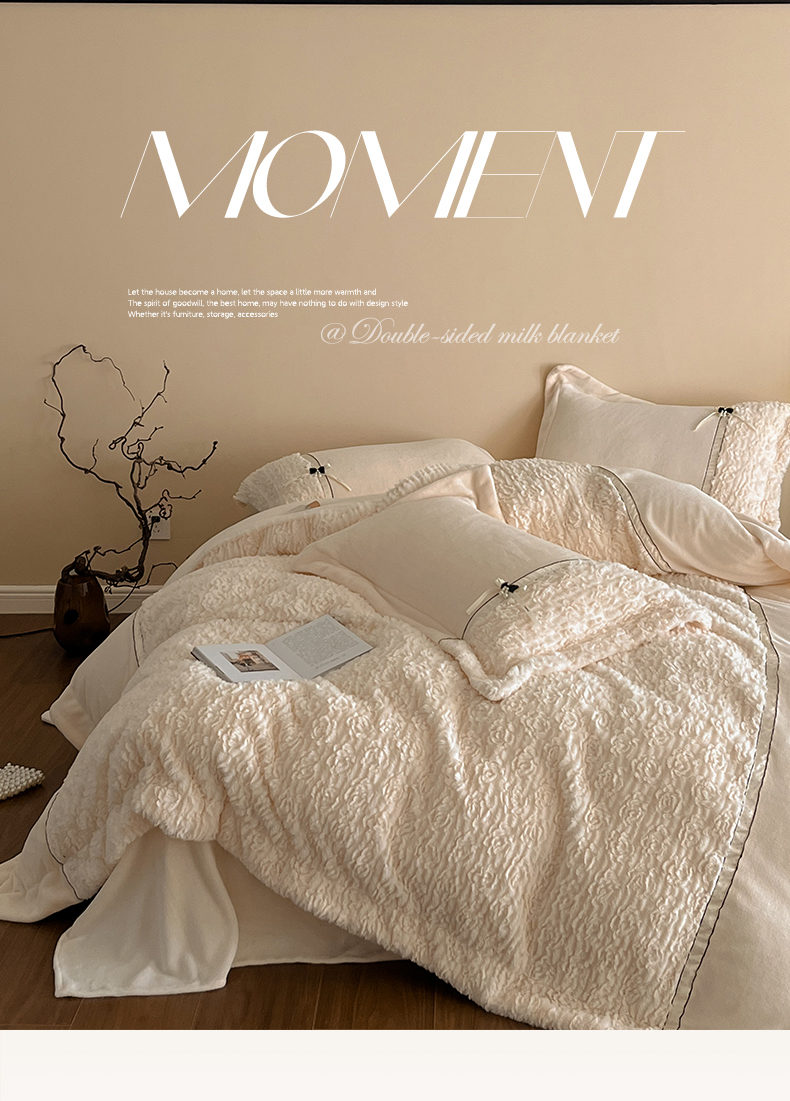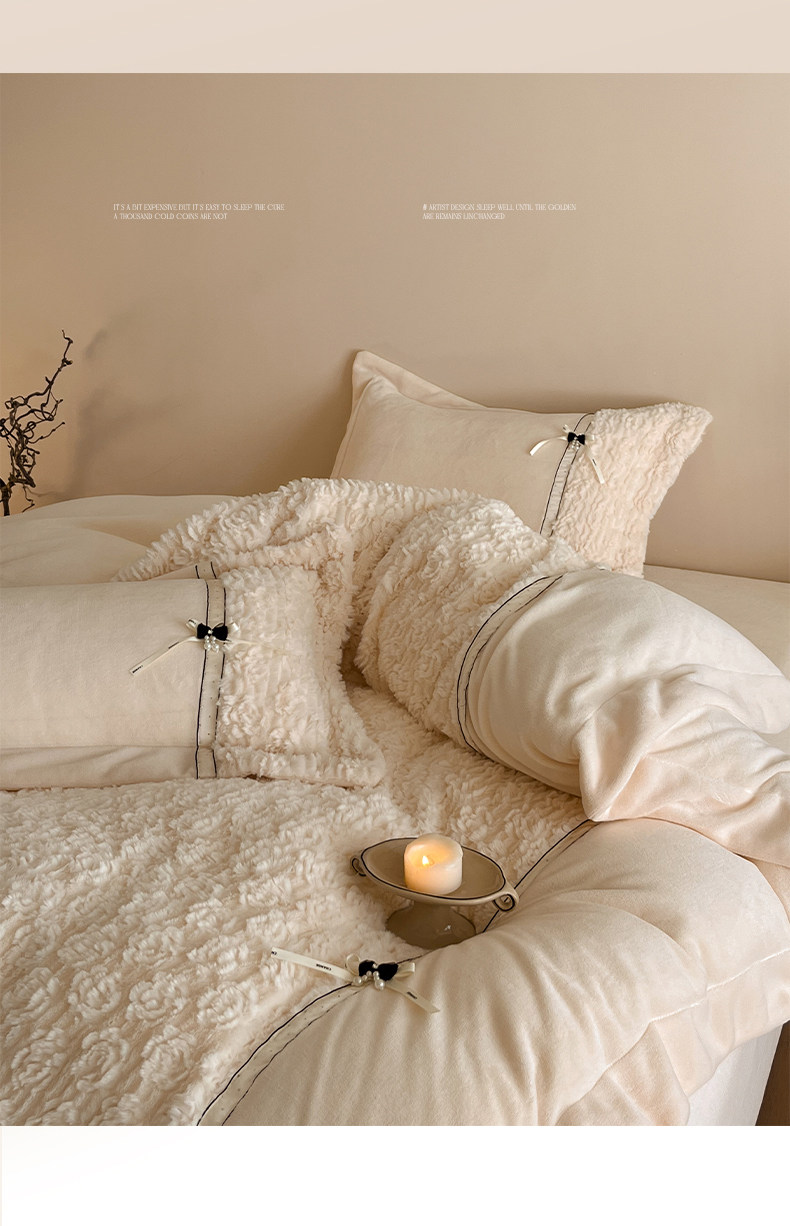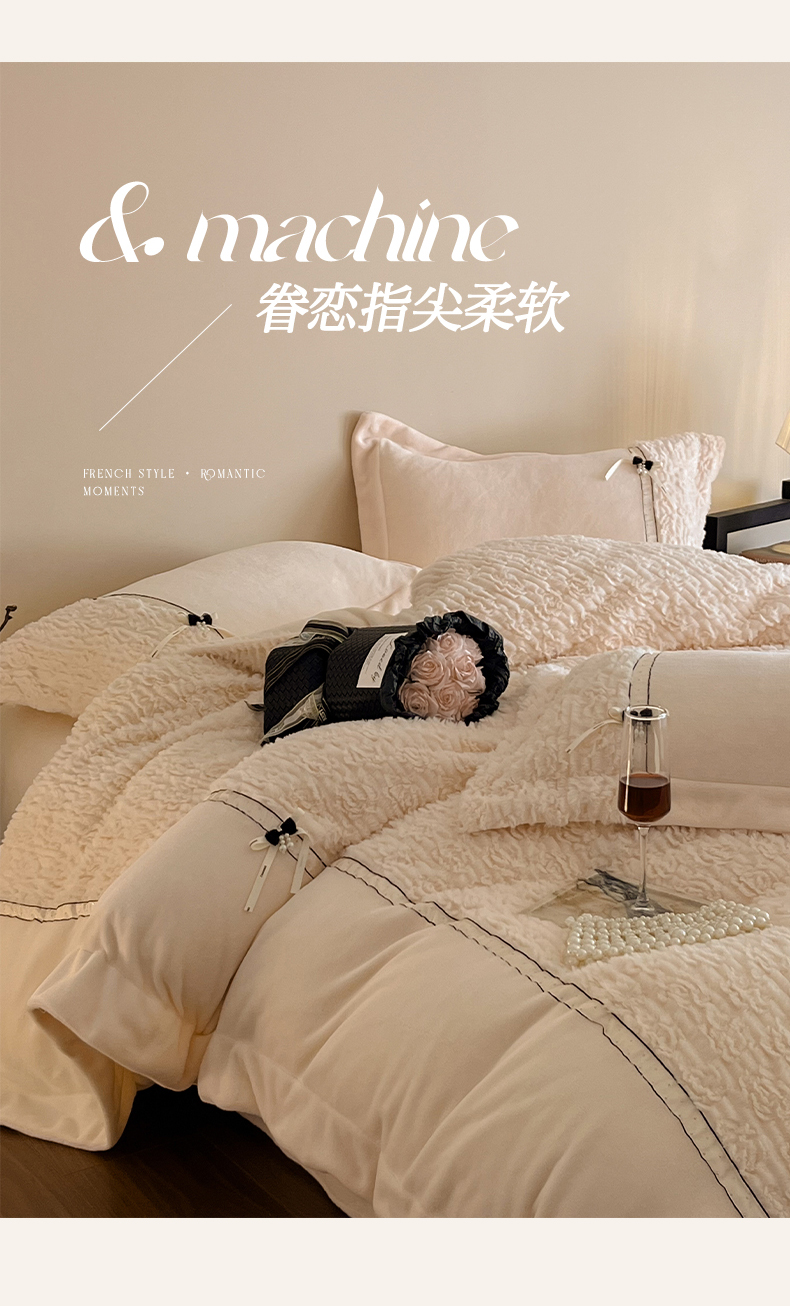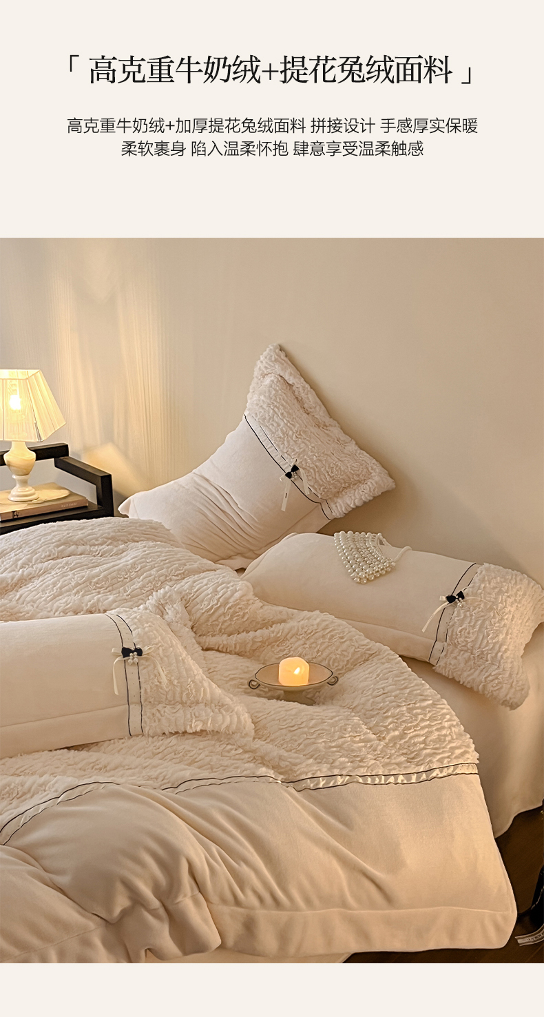 蓝邻家纺 2025新款提花兔绒双拼织带款四件套-微语系列 微语-香槟色