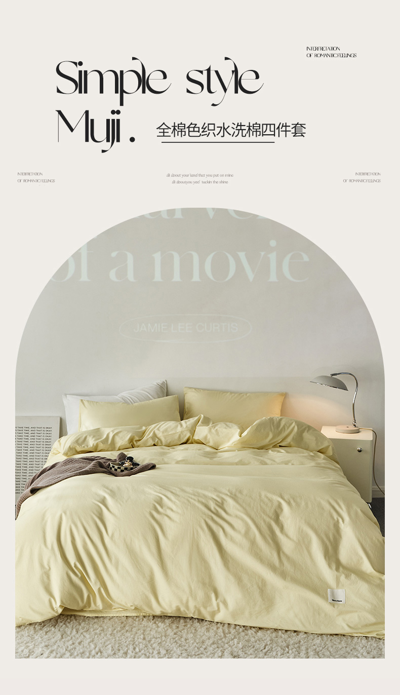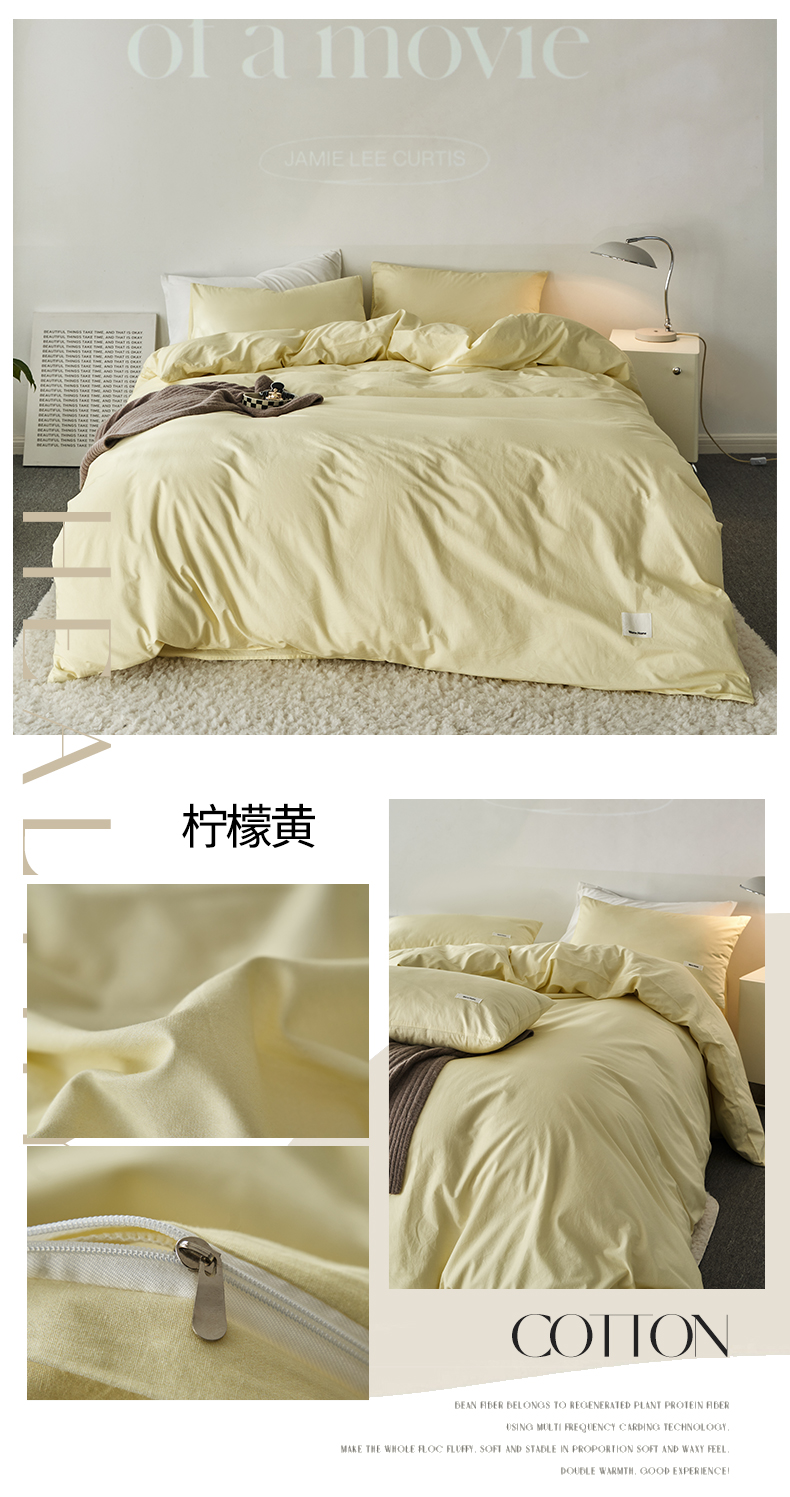 当前位置: 91家纺网 > 商品网购 > 床品套件 > 四件套 > 全棉普通四件套 > 蓝邻家纺 2025新款A类全棉纯棉水洗棉纯色贴标系列四件套-风格一 柠檬黄