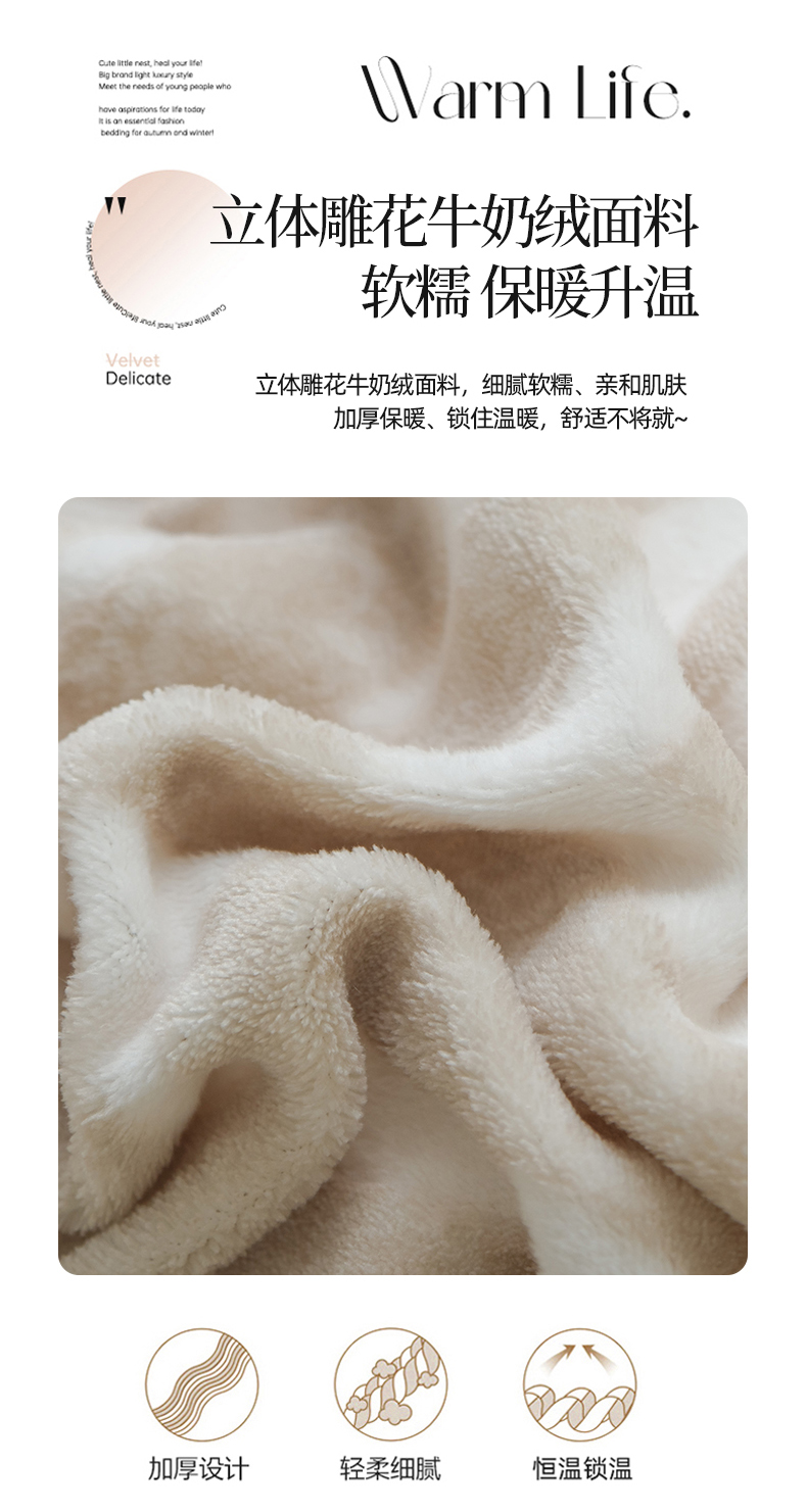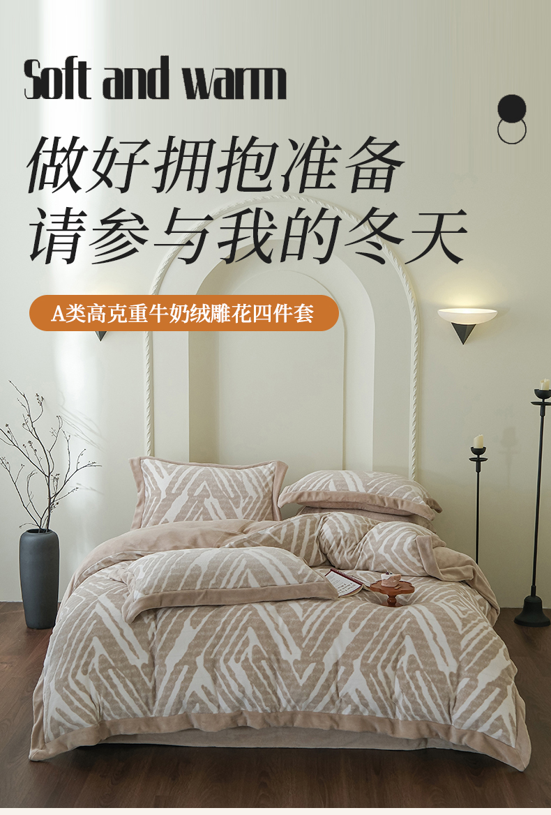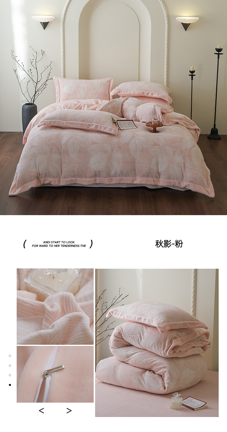 (总)米奈家居 2024新款A类牛奶雕花绒四件套-瑞丽,巴赫(卡其),巴赫(紫粉),花漾(淡雅粉),花漾(香槟),水墨(豆沙),水墨(卡其),邂逅(咖色),邂逅(绿色)