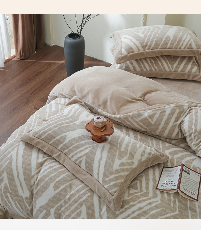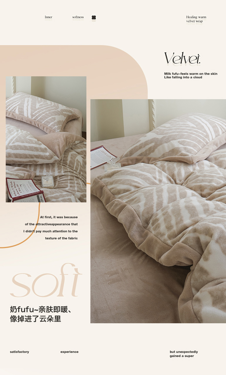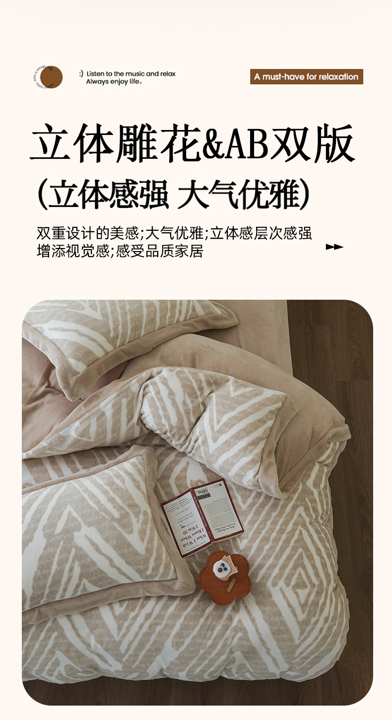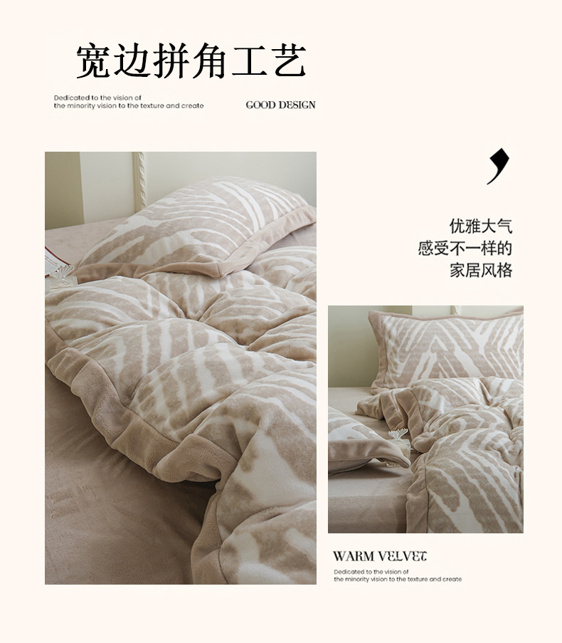 米奈家居 2025新款立体雕花拼角款牛奶绒四件套 浮光-咖