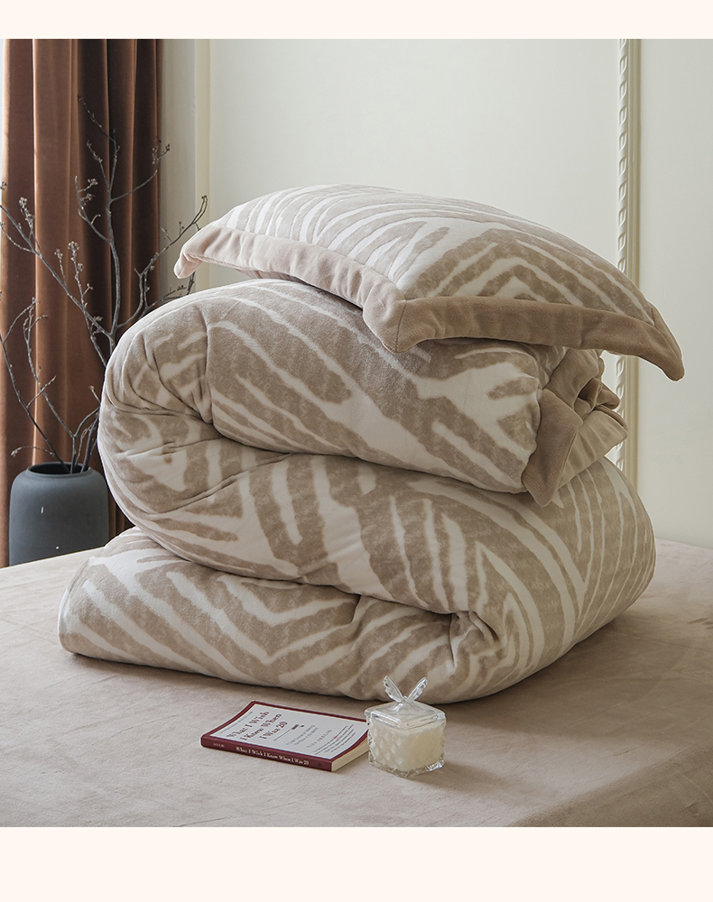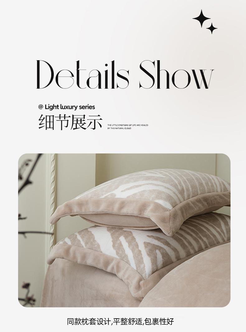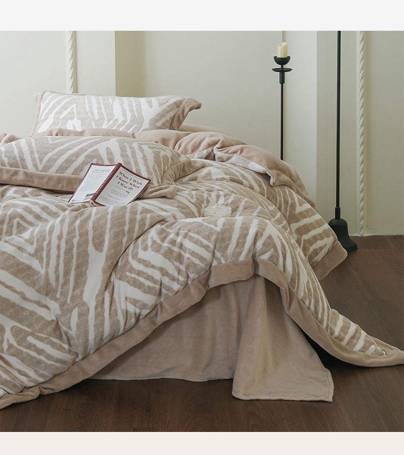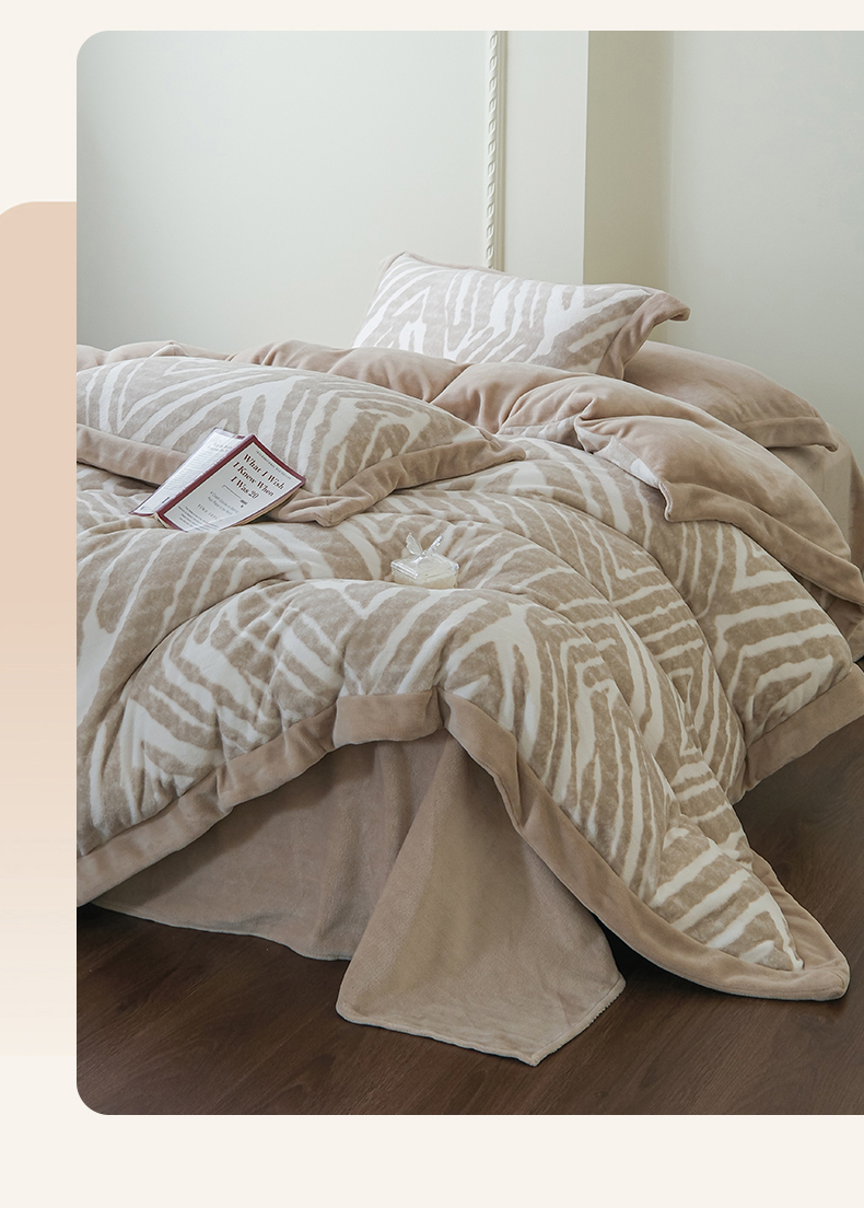 米奈家居 2025新款立体雕花拼角款牛奶绒四件套 浮光-咖