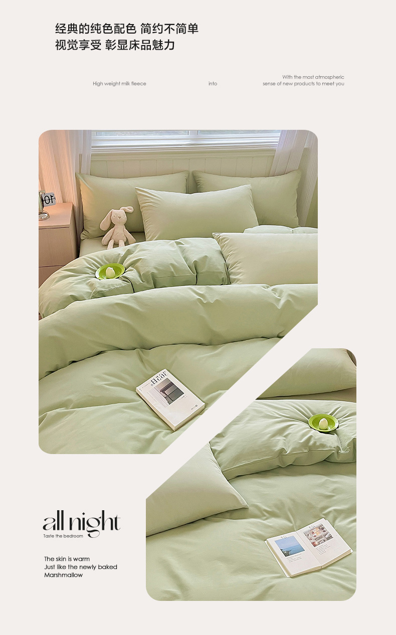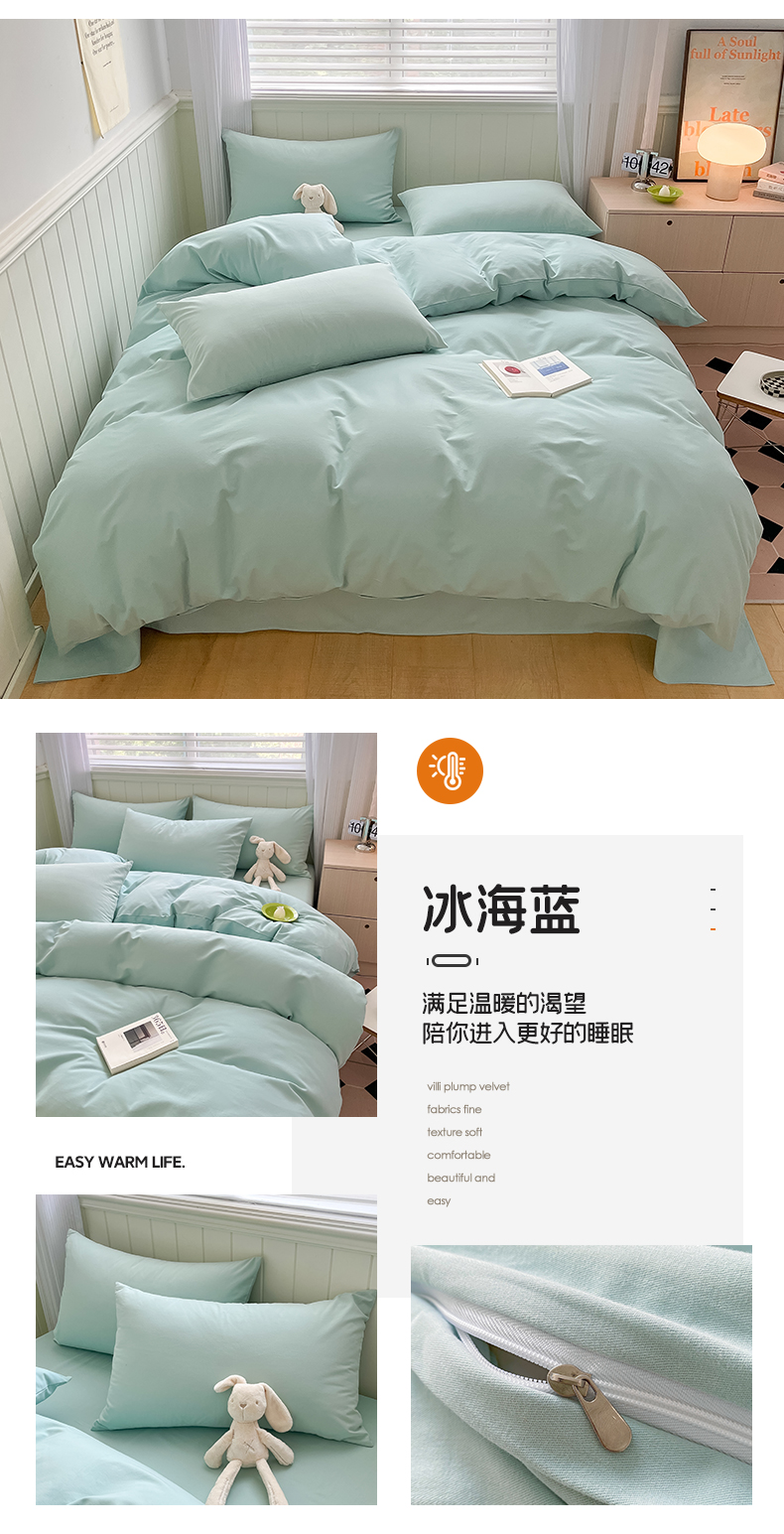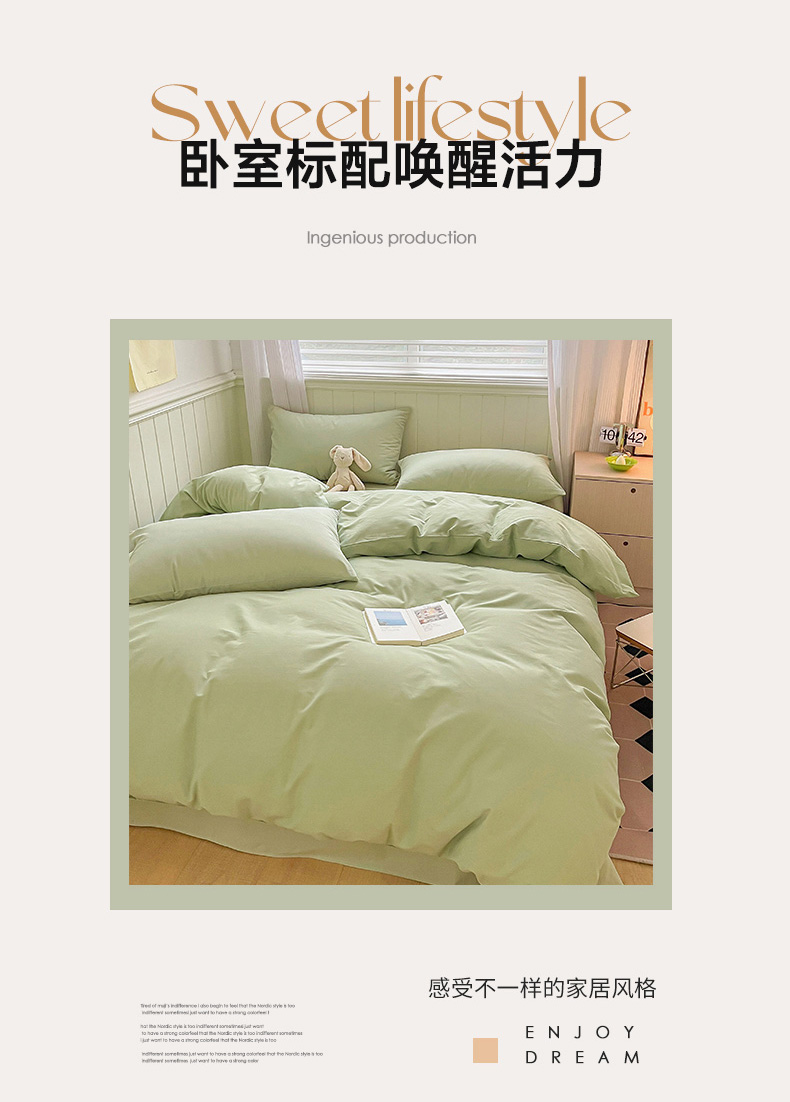 当前位置: 91家纺网 > 商品网购 > 床品套件 > 四件套 > 普通磨毛四件套 > 蓝邻家纺 2025新款全棉纯棉磨毛简约系列四件套 青绿