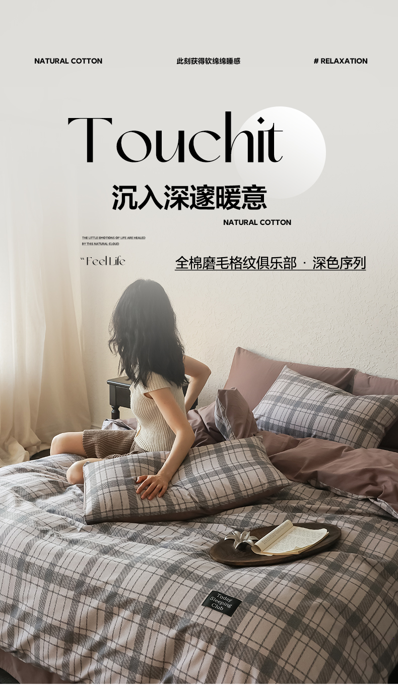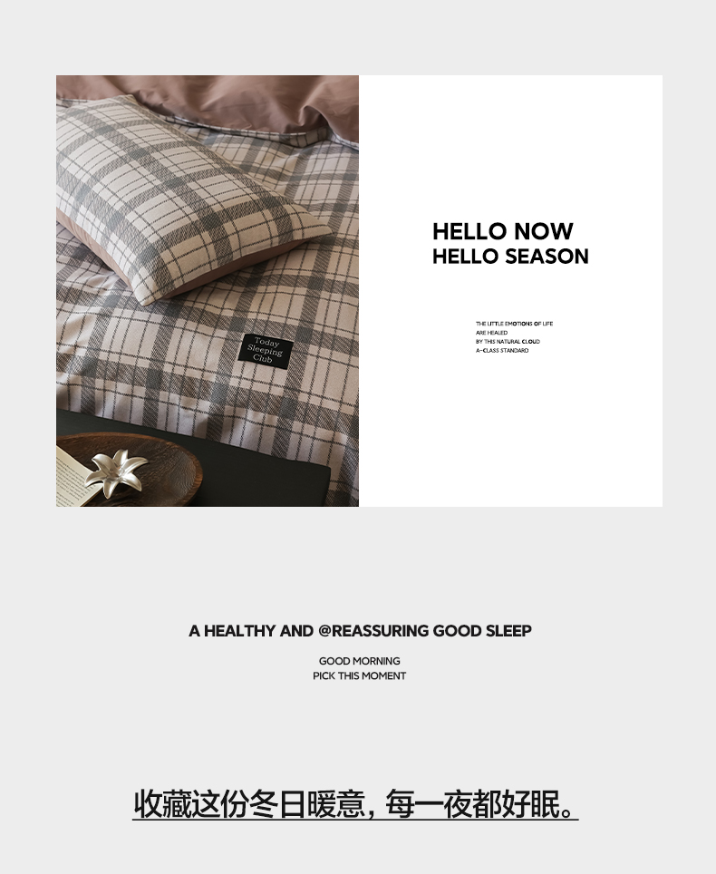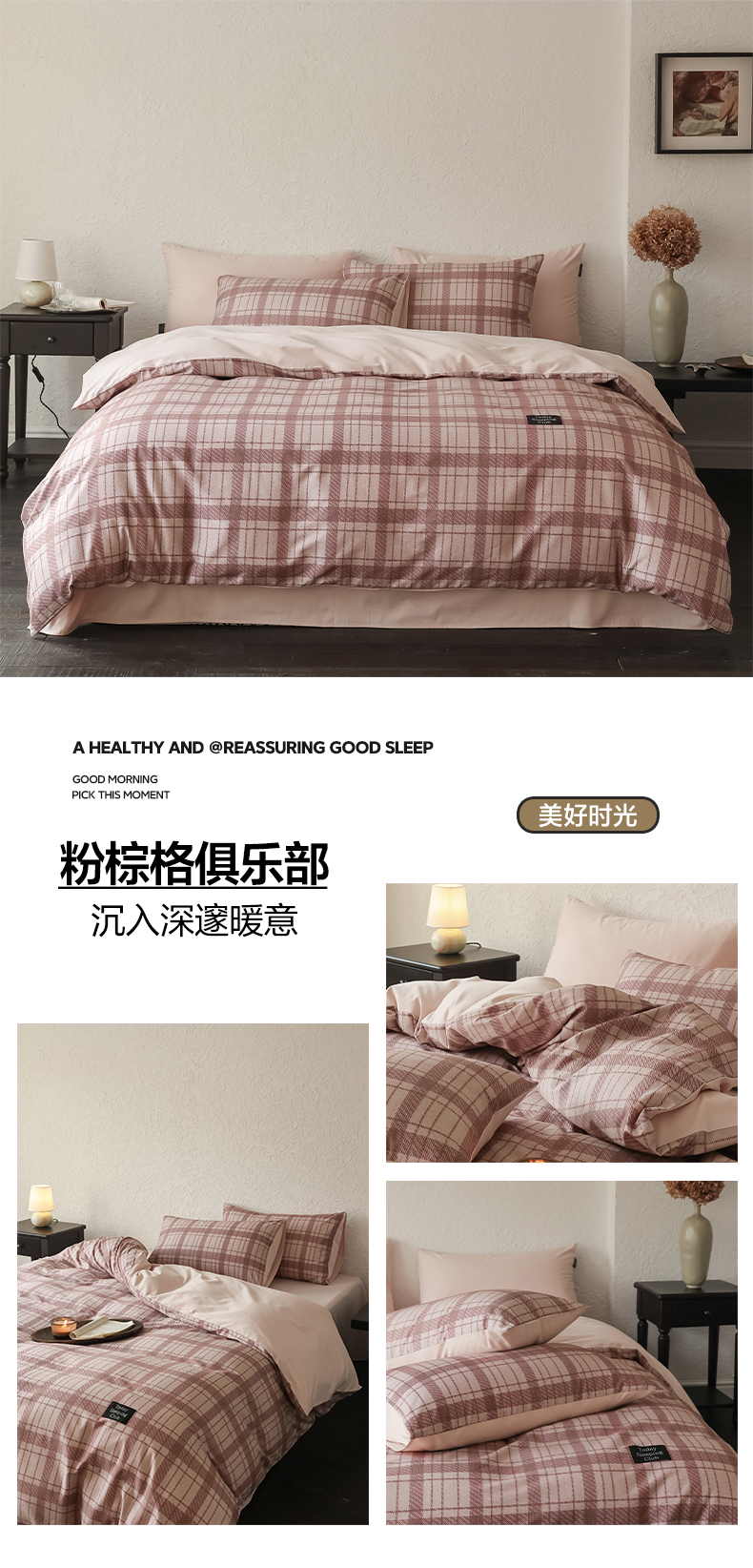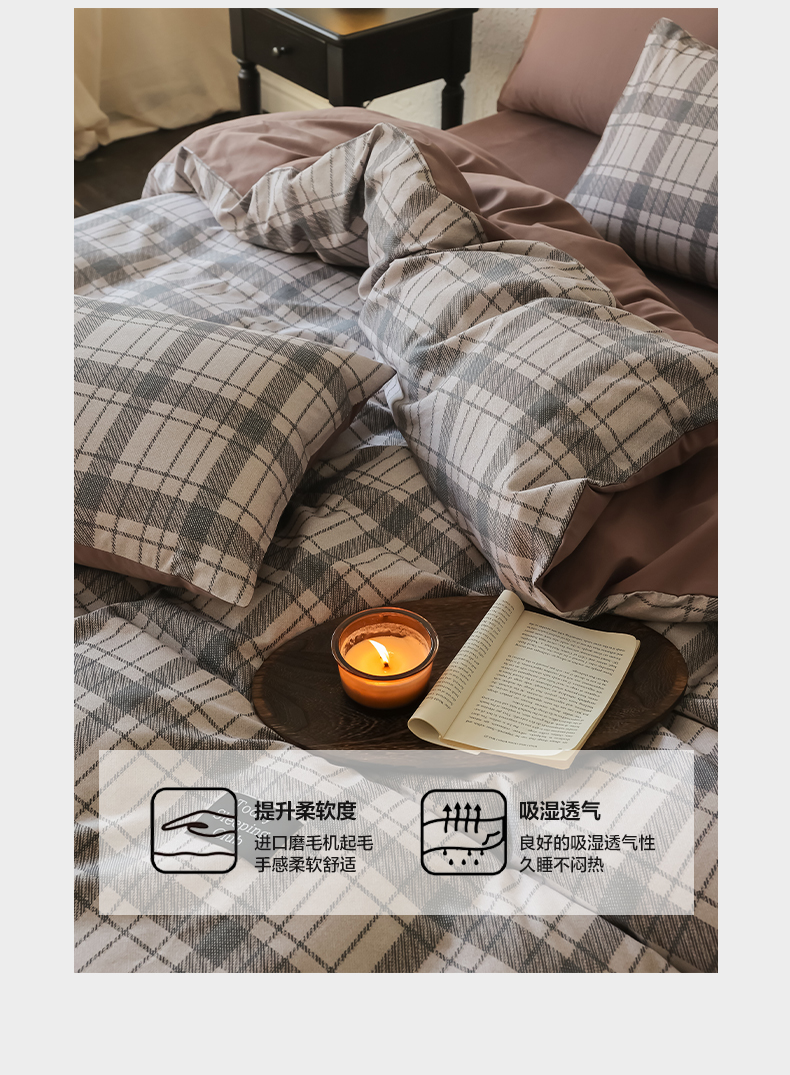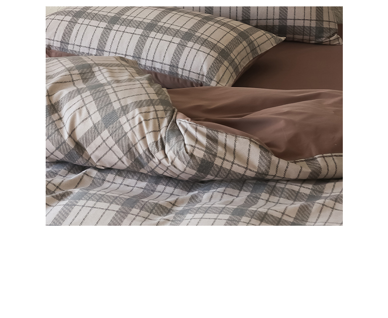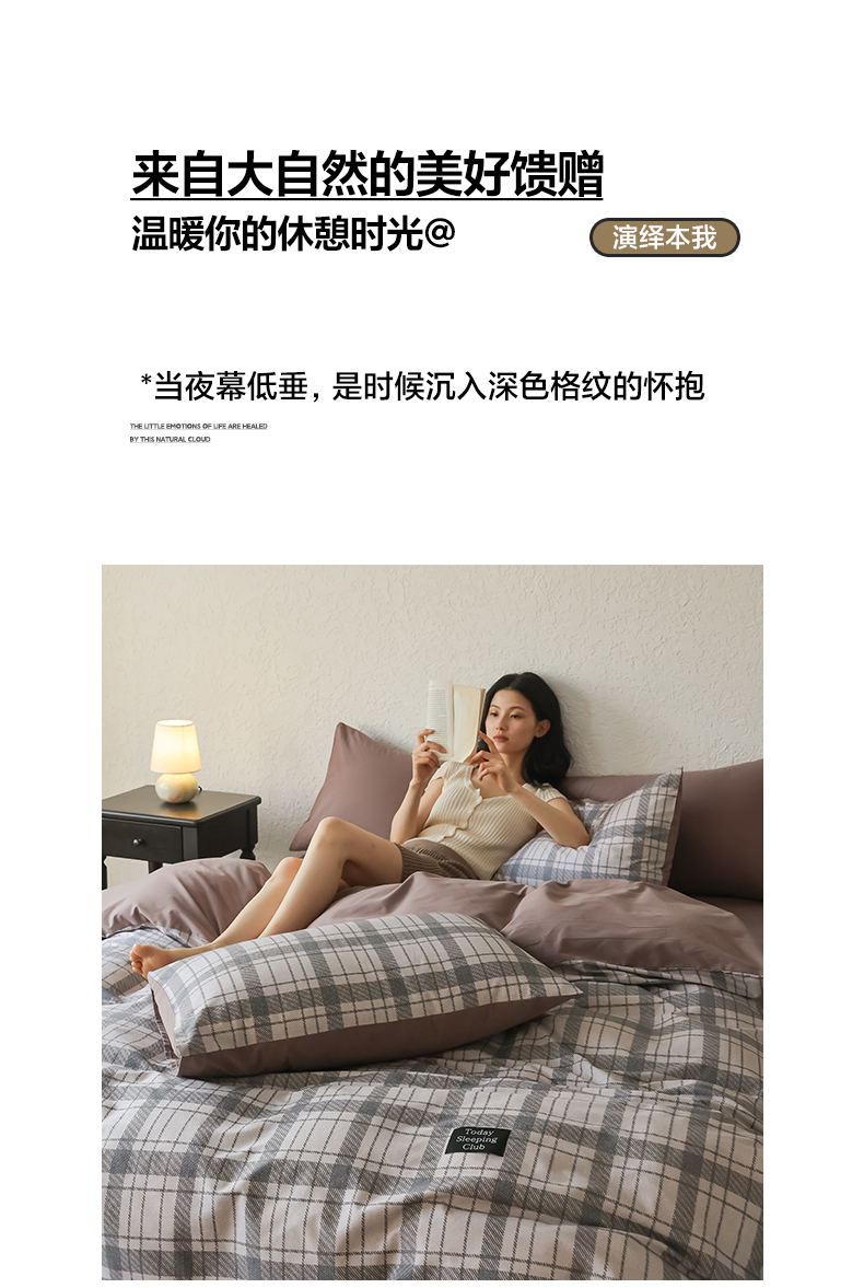 商品名称:三味舒屋 2025新款50支全棉磨毛印花四件套-格纹俱乐部 米黑格俱乐部