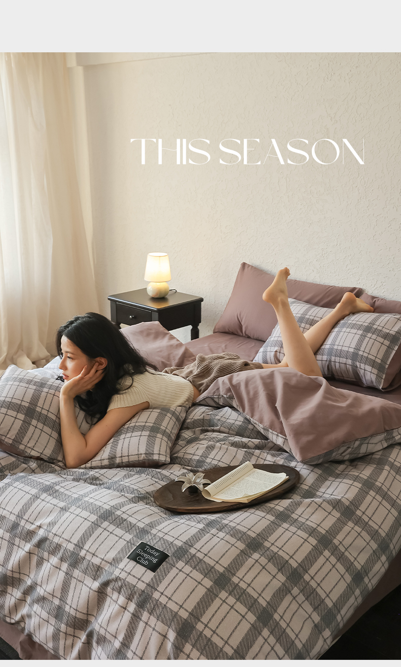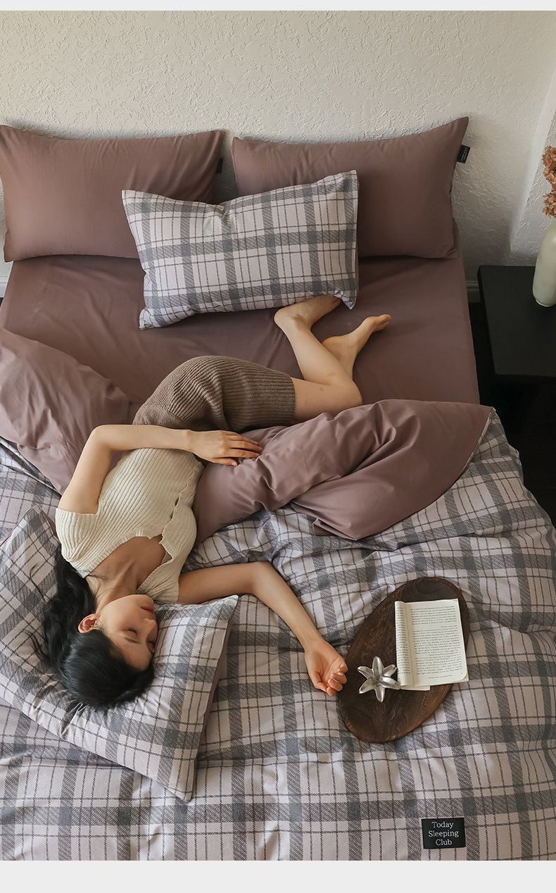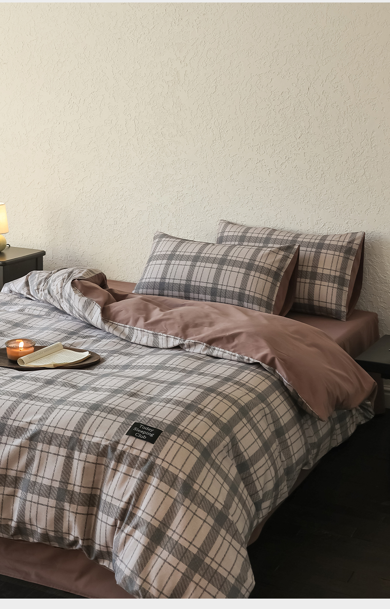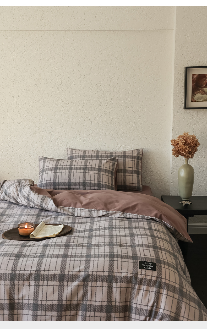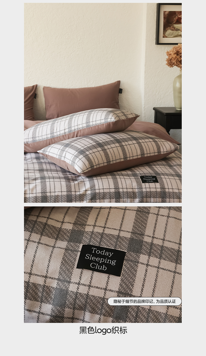 三味舒屋 2025新款50支全棉磨毛印花四件套-格纹俱乐部 米黑格俱乐部
