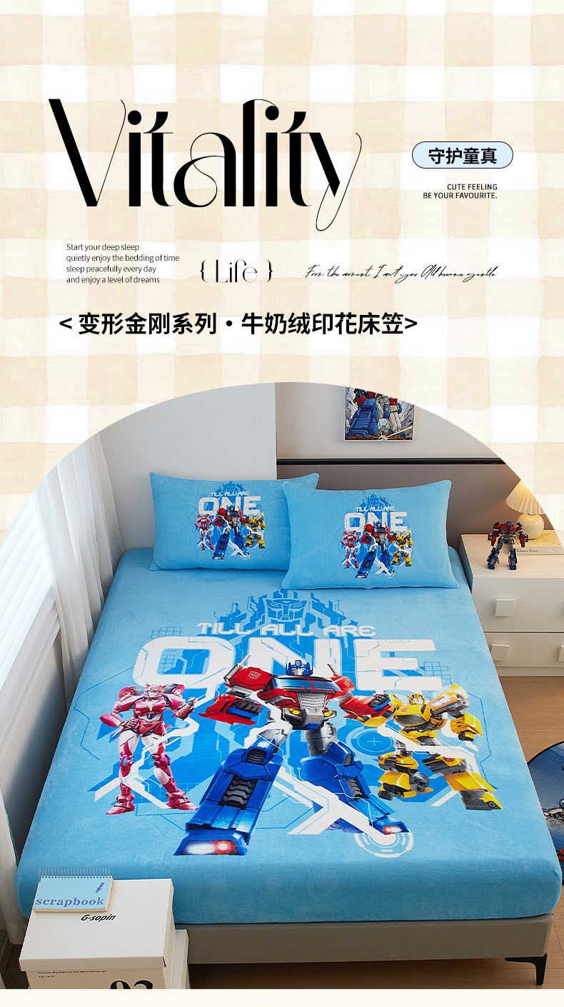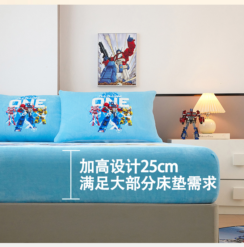 商品名称:(总)蘭菲家纺 2025新款高克重亲肤保暖牛奶绒单品床笠-变形金刚
