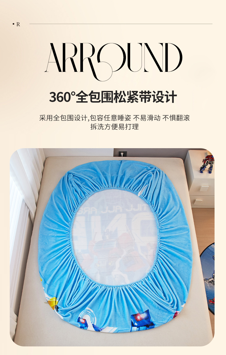 (总)蘭菲家纺 2025新款高克重亲肤保暖牛奶绒单品床笠-变形金刚