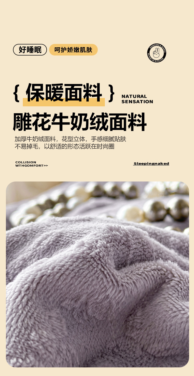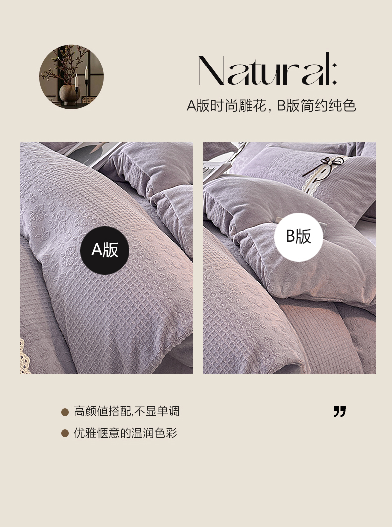(总)慕木家纺 2025新款高克重简约无印风牛奶绒双拼四件套,宾利蓝+浅灰,米驼+奶茶咖,浅灰+米金,双拼套件-豆沙+灰