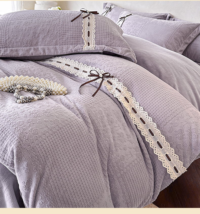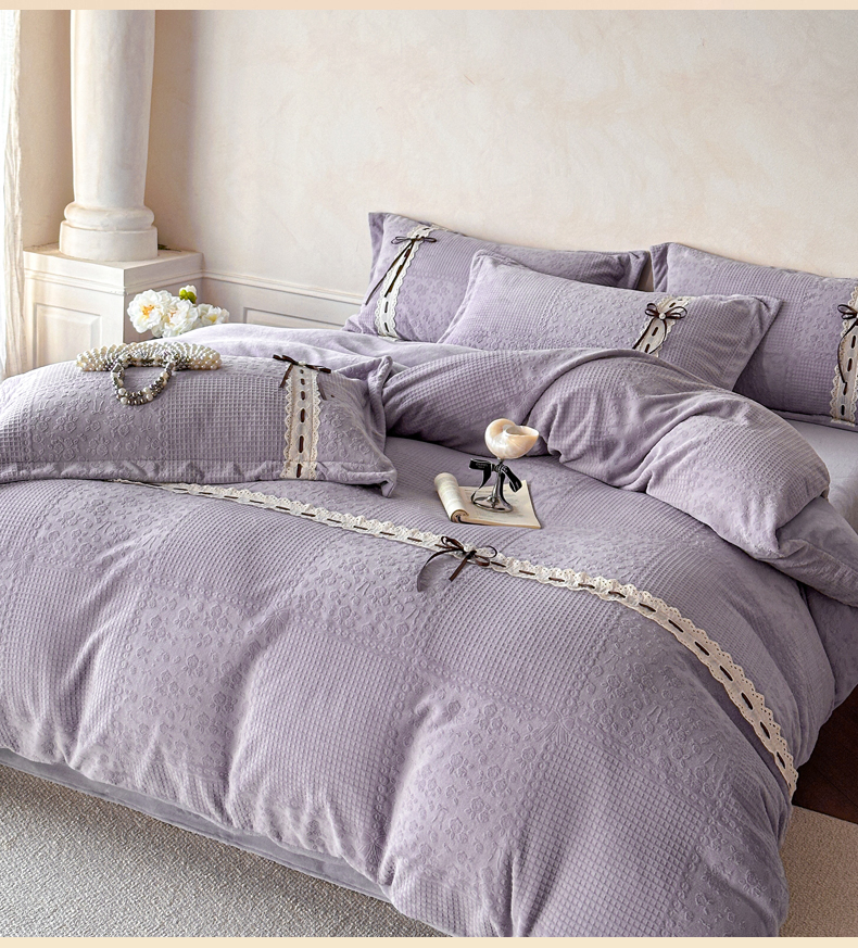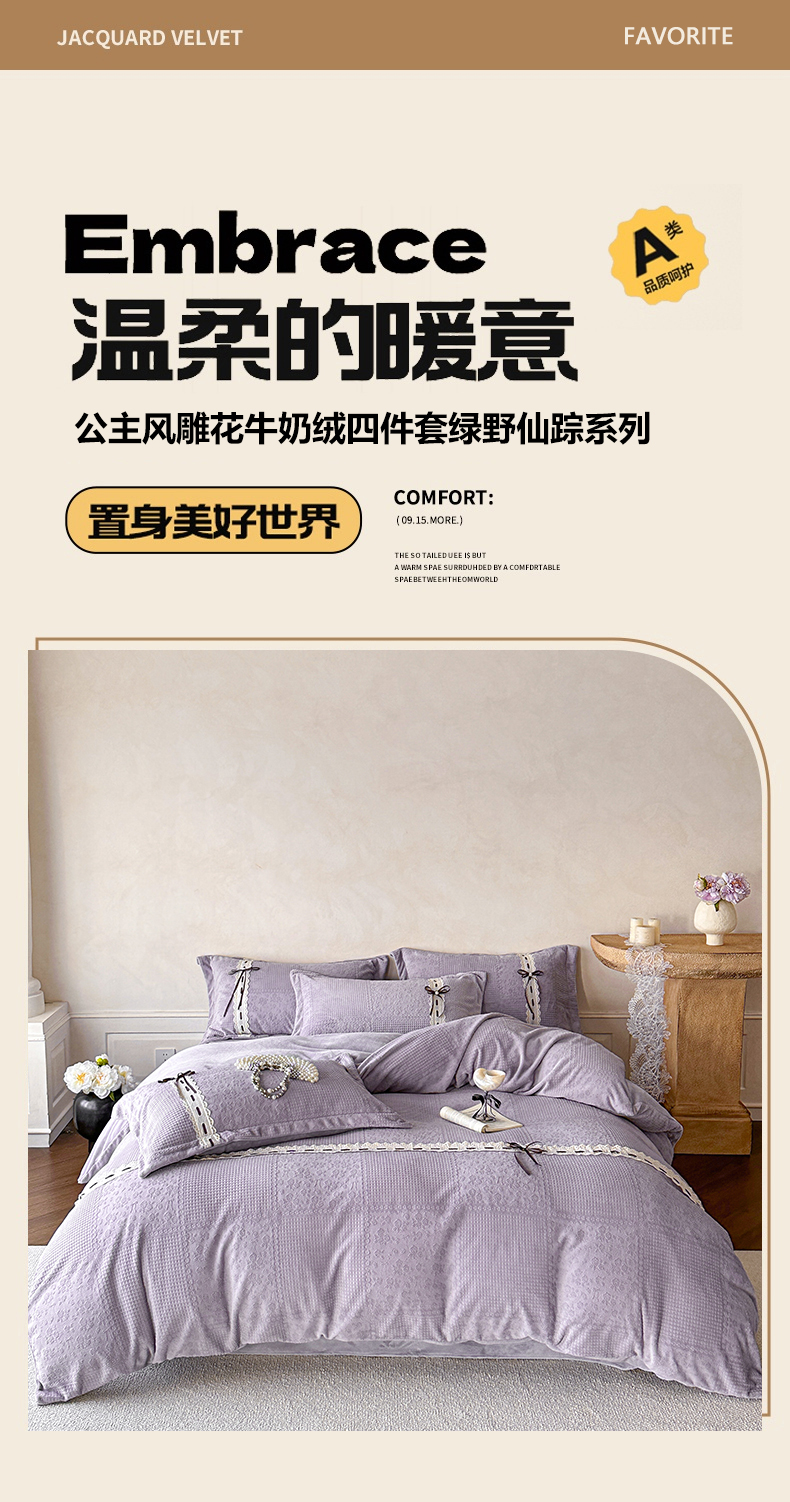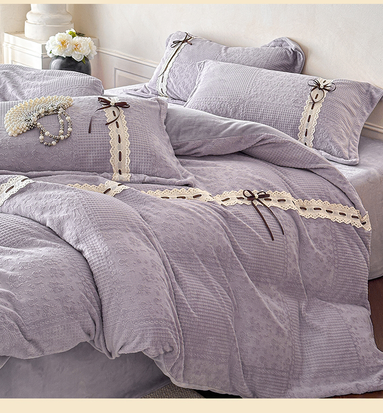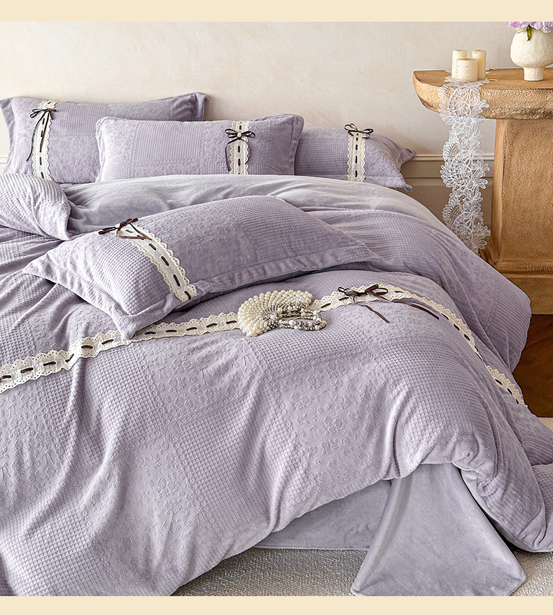 商品名称:慕木家纺 2025新款高端雕花公主风蝴蝶结工艺款四件套绿野仙踪系列(直播热款)提供买家秀 绿野仙踪-烟紫