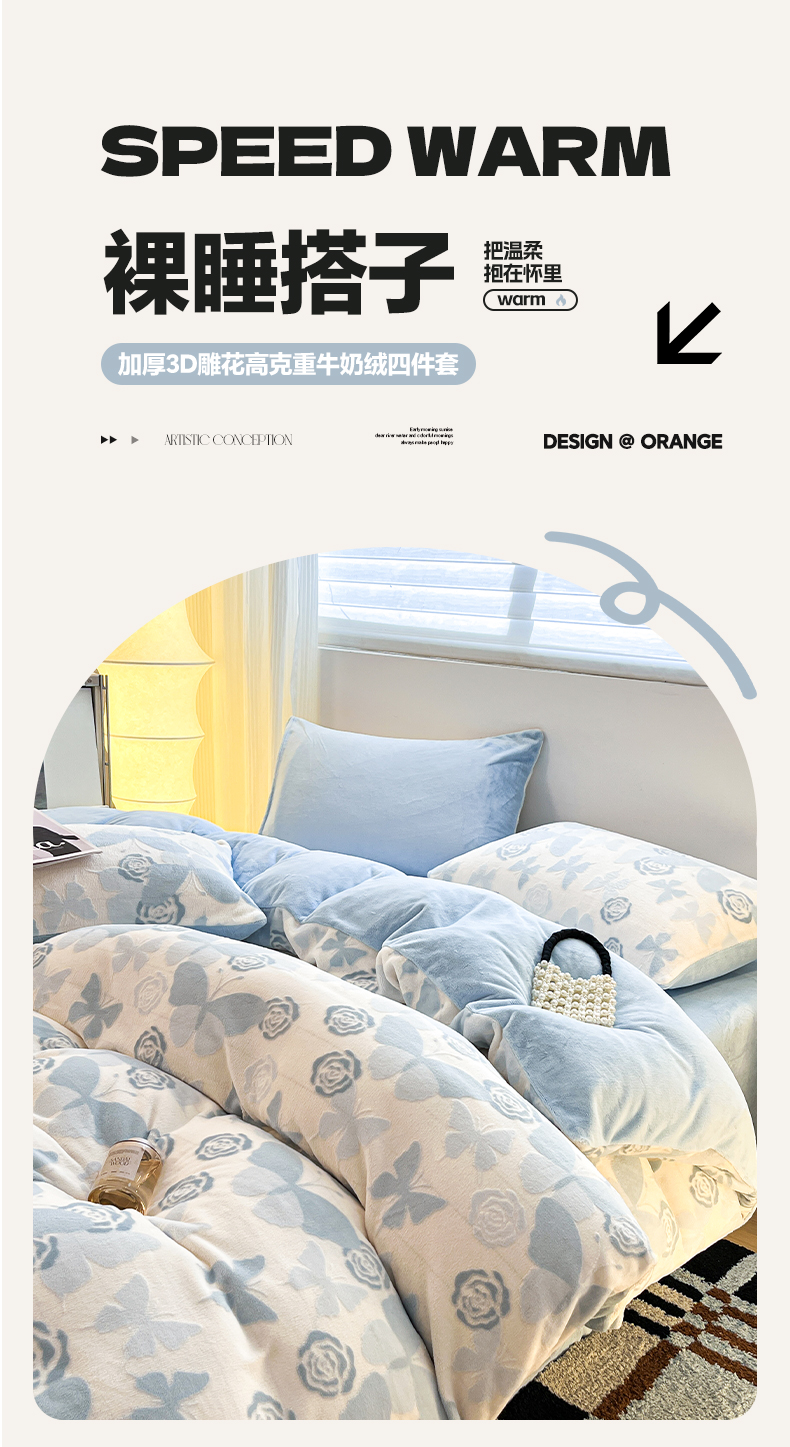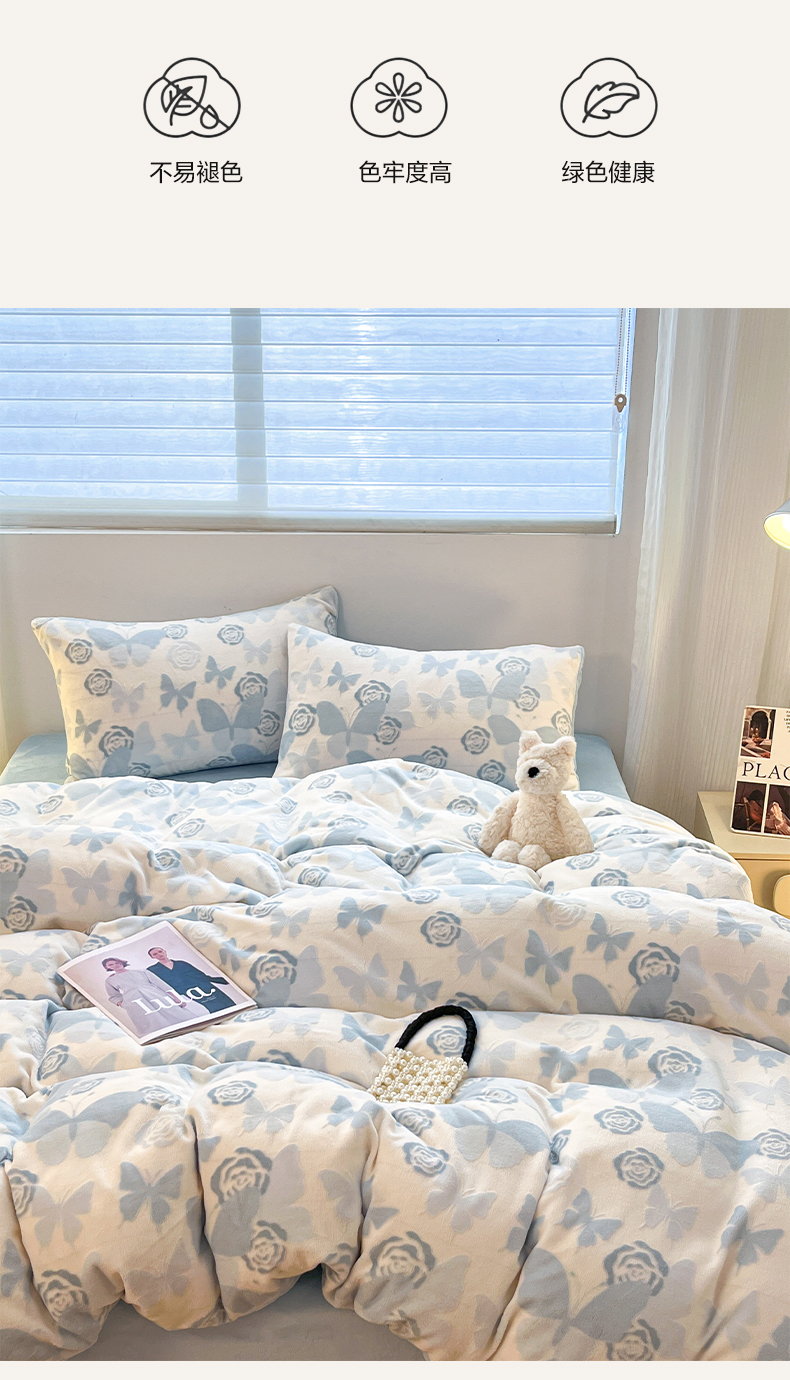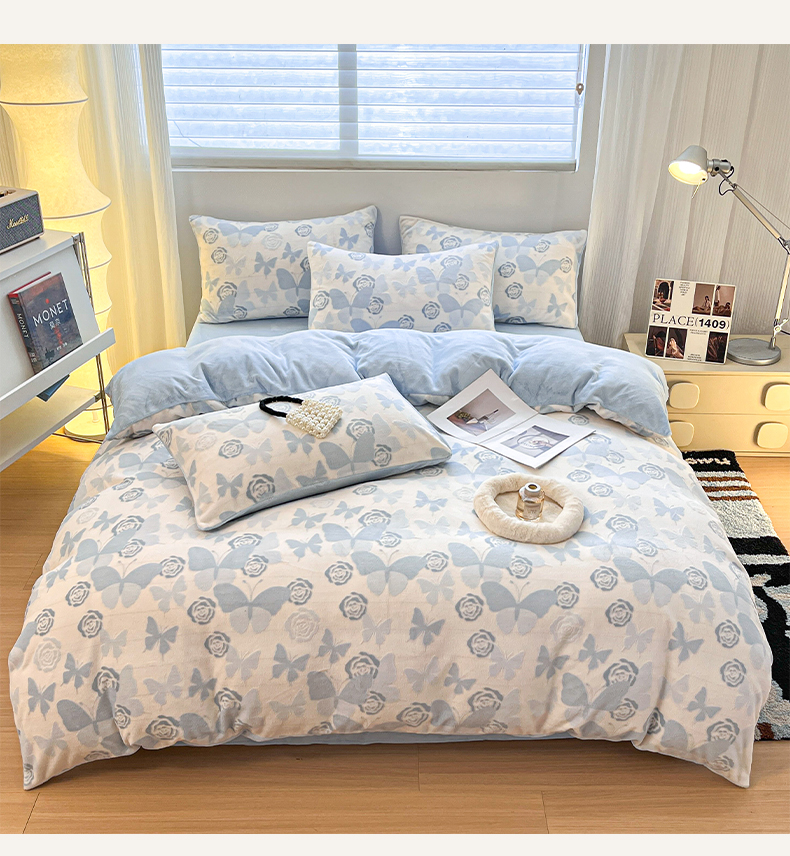 当前位置: 91家纺网 > 商品网购 > 床品套件 > 四件套 > 牛奶绒四件套 > 如一 2025新款3D雕花牛奶绒四件套 蝴蝶-天蓝