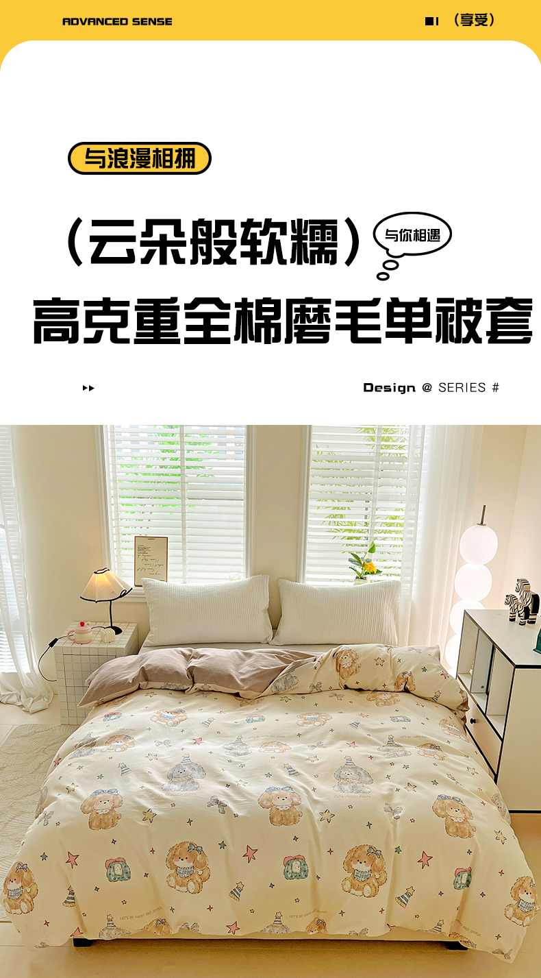• 91家纺网 家纺一手货源 找家纺 (总)依庭 2025新款高克重全棉纯棉磨毛印花单被套,乐享,贝丽丝,彼得兔,草莓奶昔,茶言妙语,初漫,蝶恋花,奥维斯,朵唯,朵韵,芳盈,飞花令,哈基米,好伙伴,好运熊-咖,好运熊-蓝,红冠象,花色伊人,吉唛,悸动,惊鸿-粉,惊鸿-桔,可爱兔,恐龙告白,酷小狗,快乐星球,蓝色恋人,绿萝,玛雅,曼迪,玫瑰花语,萌车派对,萌宠,莫利格,奶油小狗,南瓜熊,尼彩,帕比,皮皮狗,清新花园,山樱,笙白-桔,甜梦茶语,甜心花语,仙女星辰,小欢喜,星梦乐园,星晚-粉,幸福小熊,幸运熊,寻悦-桔,叶叶情深,叶之恋,叶芝,樱贝,樱絮仙踪,优漫,悠悠仙草,柚见,灼华
