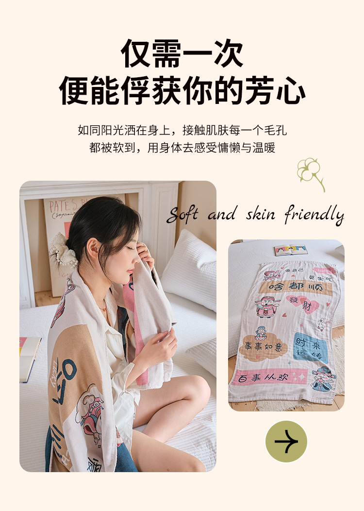 (总)沐瑟家纺 2025新款卡通A类全棉四层纱布浴巾加大毛巾-第二组,阿布女孩 80*160cm浴巾/条,半夏 80*160cm浴巾/条,暴走猪 80*160cm浴巾/条,波尔兔 80*160cm浴巾/条,发财女孩 80*160cm浴巾/条,花布猫 80*160cm浴巾/条,积木熊 80*160cm浴巾/条,梦幻故里 80*160cm浴巾/条,暮色灯塔 80*160cm浴巾/条,平安狗 80*160cm浴巾/条,时尚毛驴 80*160cm浴巾/条,泰迪童话 80*160cm浴巾/条,童年 80*160cm浴巾/条,线条恐龙 80*160cm浴巾/条,小黑猫 80*160cm浴巾/条,小花熊 80*160cm浴巾/条,小熊夫妻 80*160cm浴巾/条,邂逅蔷薇 80*160cm浴巾/条,雪乡 80*160cm浴巾/条,印象乡村 80*160cm浴巾/条