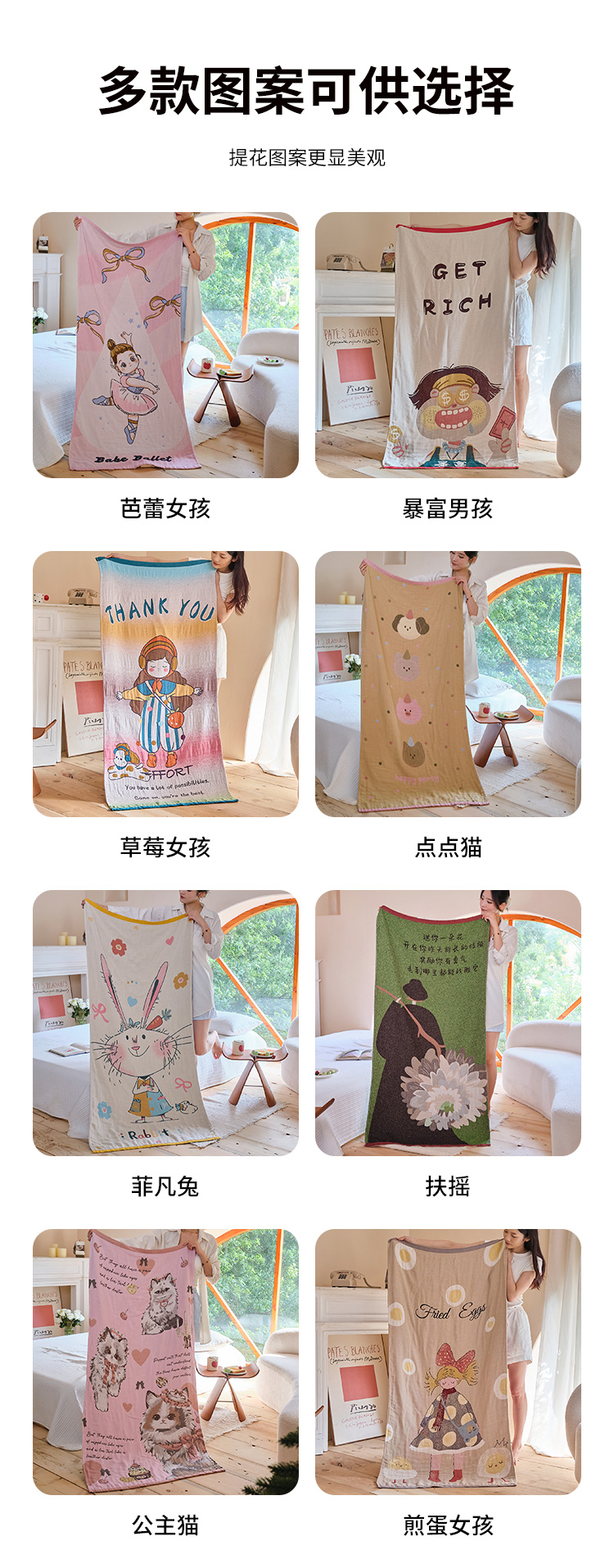(总)沐瑟家纺 2025新款卡通A类全棉四层纱布浴巾加大毛巾-第三组,芭蕾女孩 80*160cm,暴富男孩 80*160cm,草莓女孩 80*160cm,点点猫 80*160cm,菲凡兔 80*160cm,扶摇 80*160cm,公主猫 80*160cm,煎蛋女孩 80*160cm,酷酷女孩 80*160cm,落陌 80*160cm,漫画狗 80*160cm,漫画猫 80*160cm,莓烦恼 80*160cm,梦幻肯拉 80*160cm,情侣小兔 80*160cm,啥都顺 80*160cm,肖像女孩 80*160cm,月薇 80*160cm,珍爱 80*160cm,卓玛女孩 80*160cm