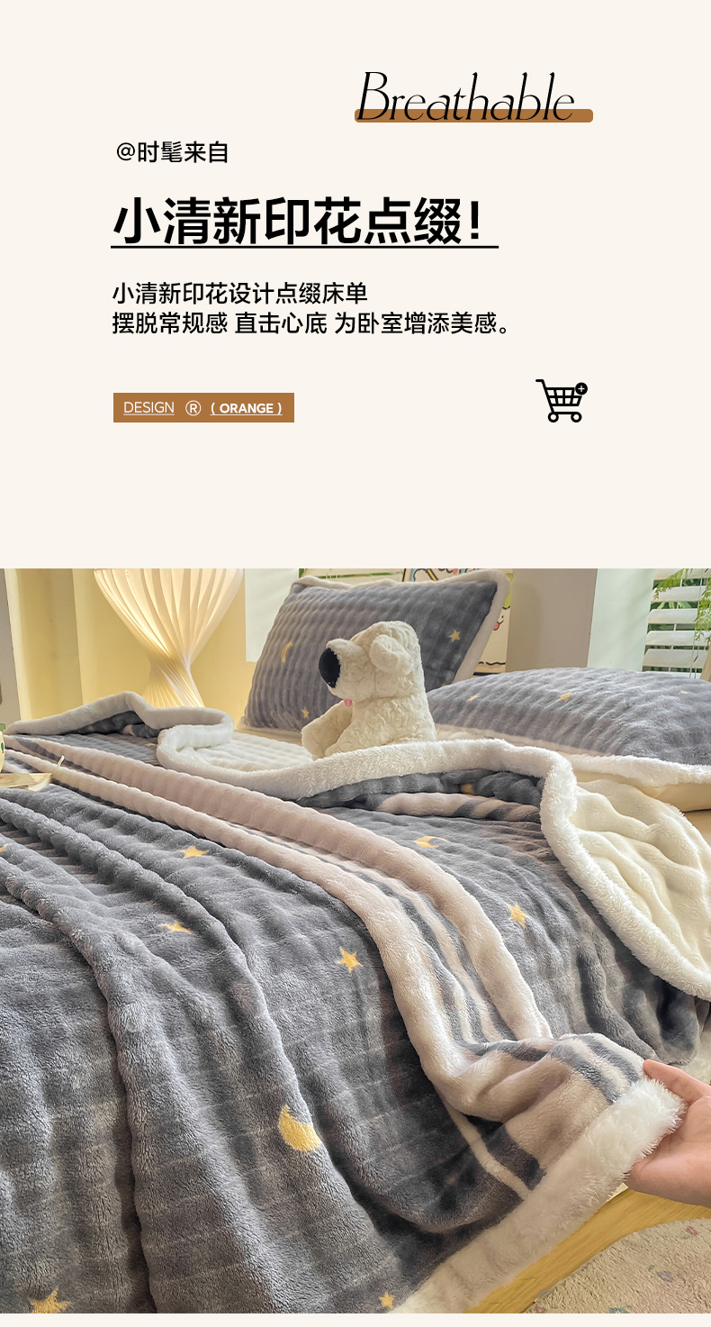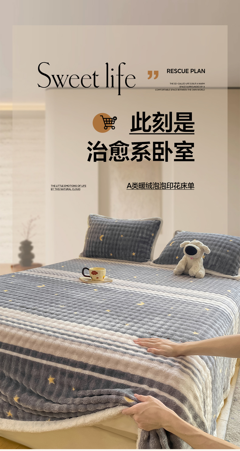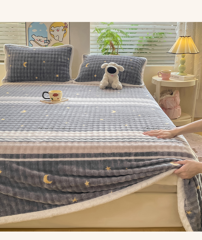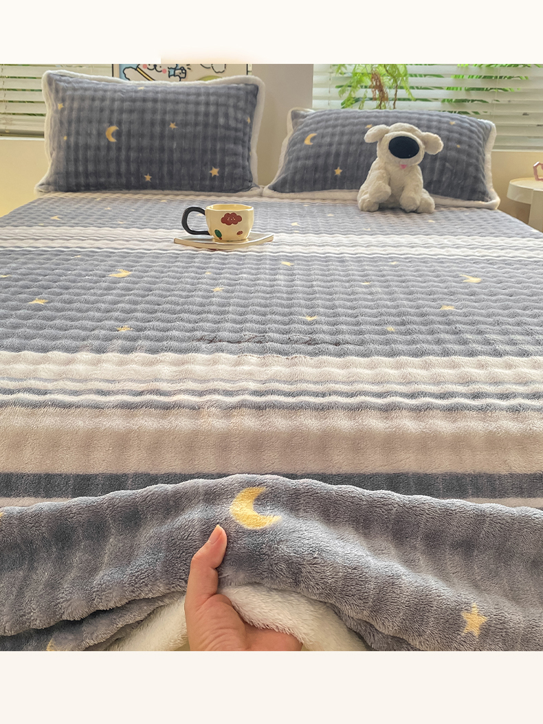 • 91家纺网 家纺一手货源 找家纺 眠势力 2025新款暖绒泡泡床单冬季保暖被单牛奶绒床单罩 繁星【暖绒泡泡床单】