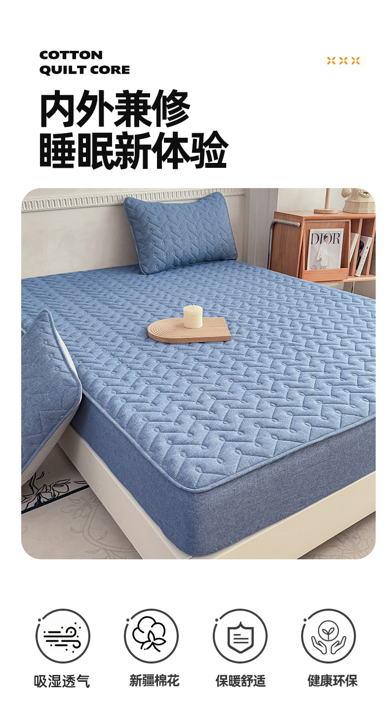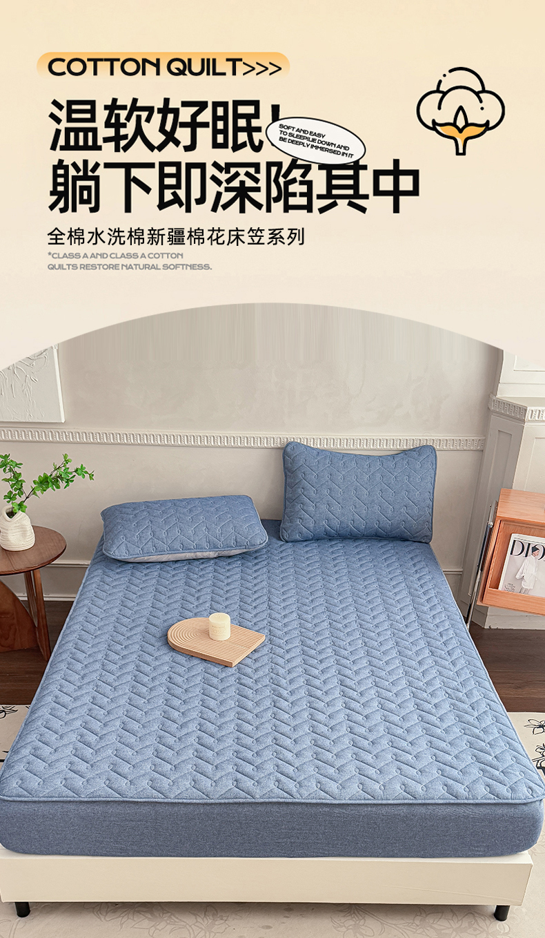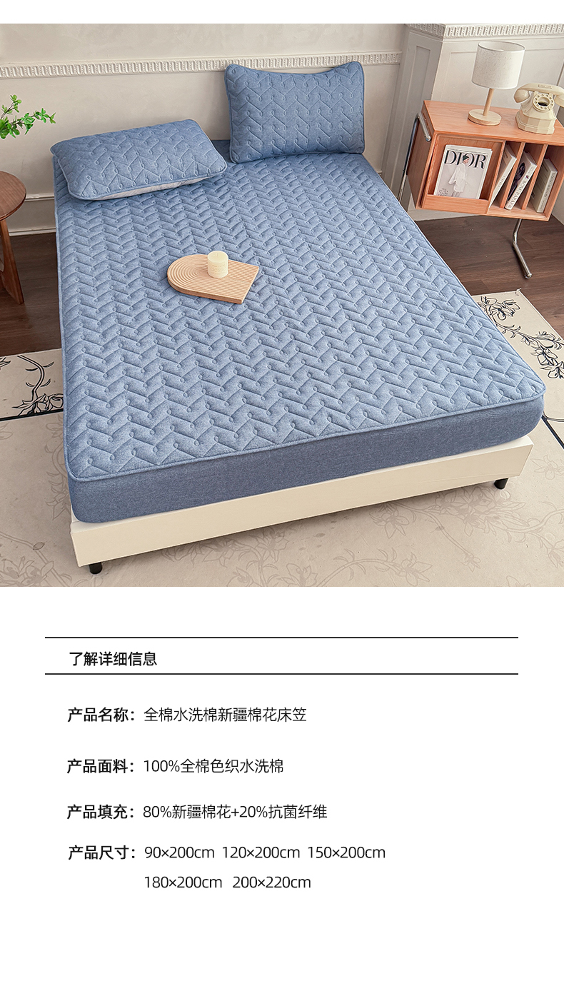 小萌虎 2025新款全棉色织水洗棉新疆棉花床笠 初棉-牛仔蓝