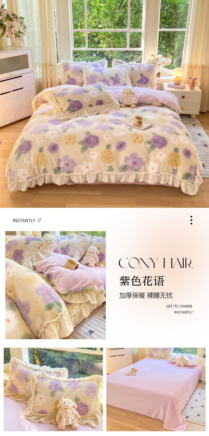 (总)米可 2025新款兔毛绒花边牛奶绒四件套,可爱蝴蝶结-粉,彩色波点,可爱蝴蝶结-咖,玫瑰庄园,梦幻女孩,柔韵-粉,柔韵-蓝,紫色花语