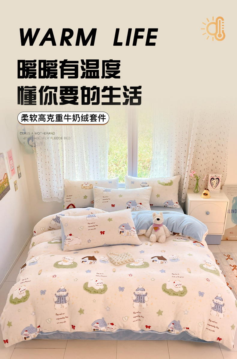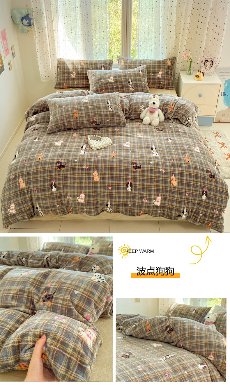当前位置: 91家纺网 > 商品网购 > 床品套件 > 四件套 > 牛奶绒四件套 > 麦伦家居 2025新款双面200g牛奶绒四件套 汪汪暖居
