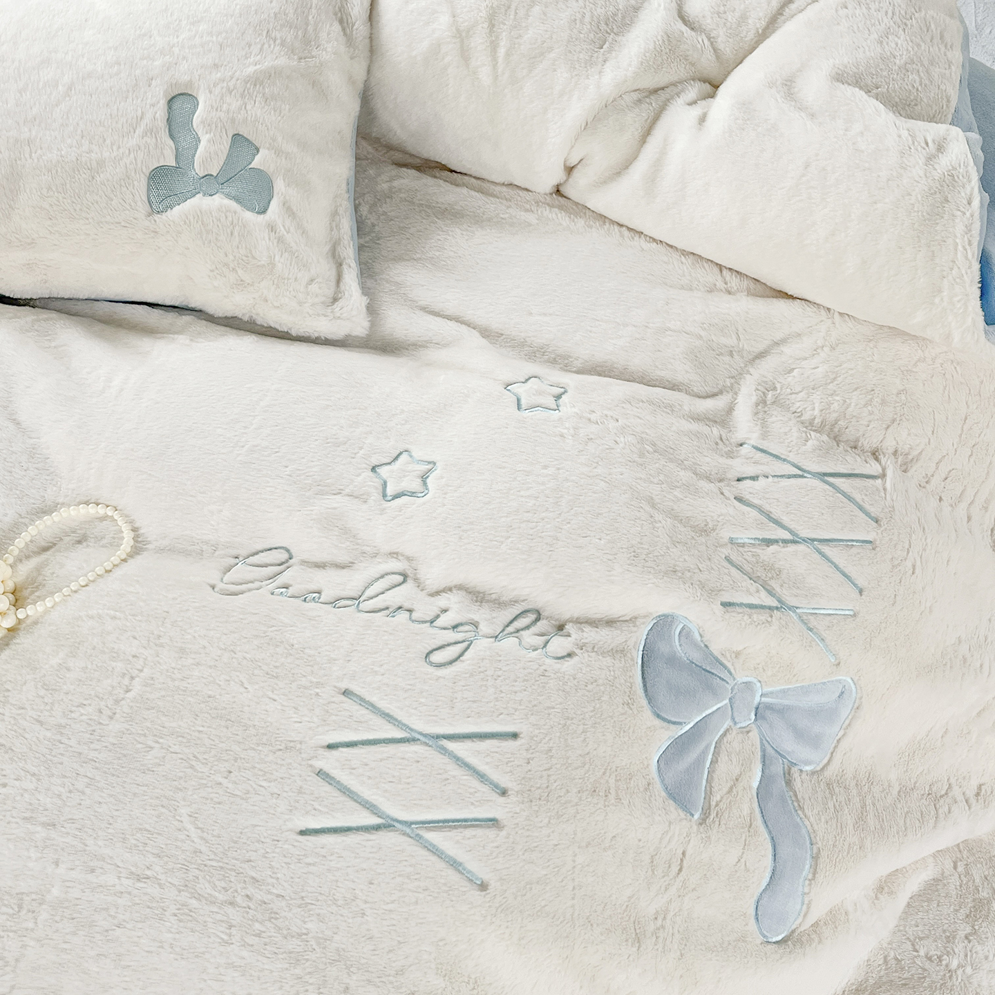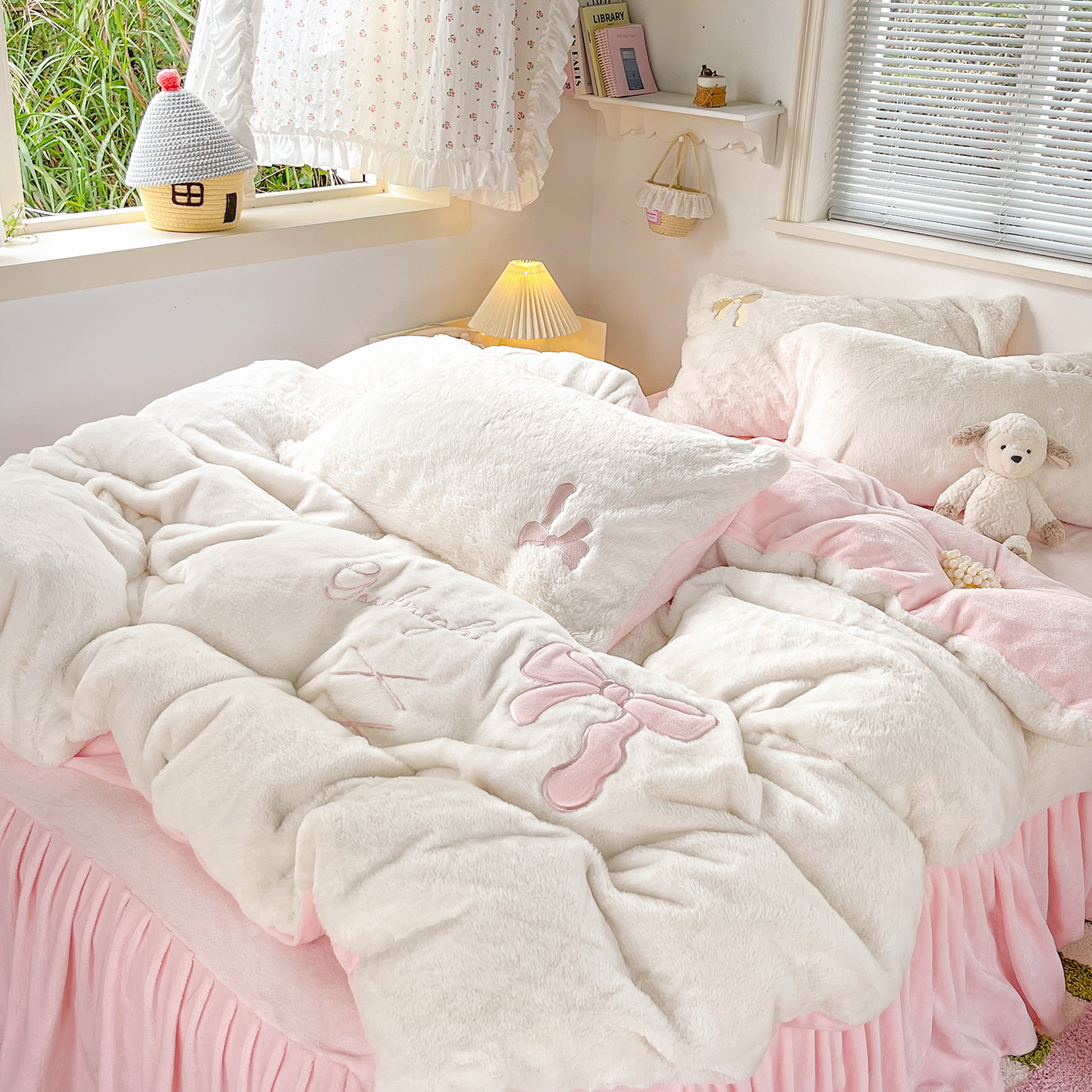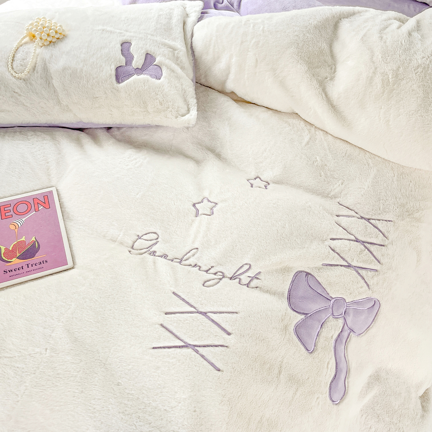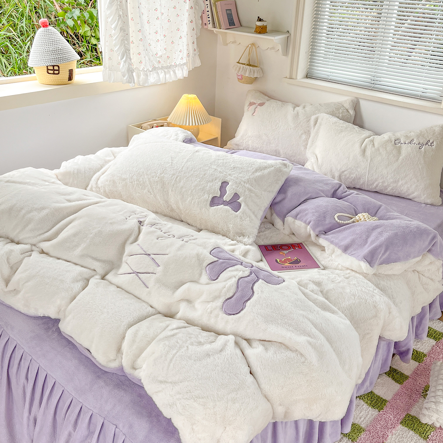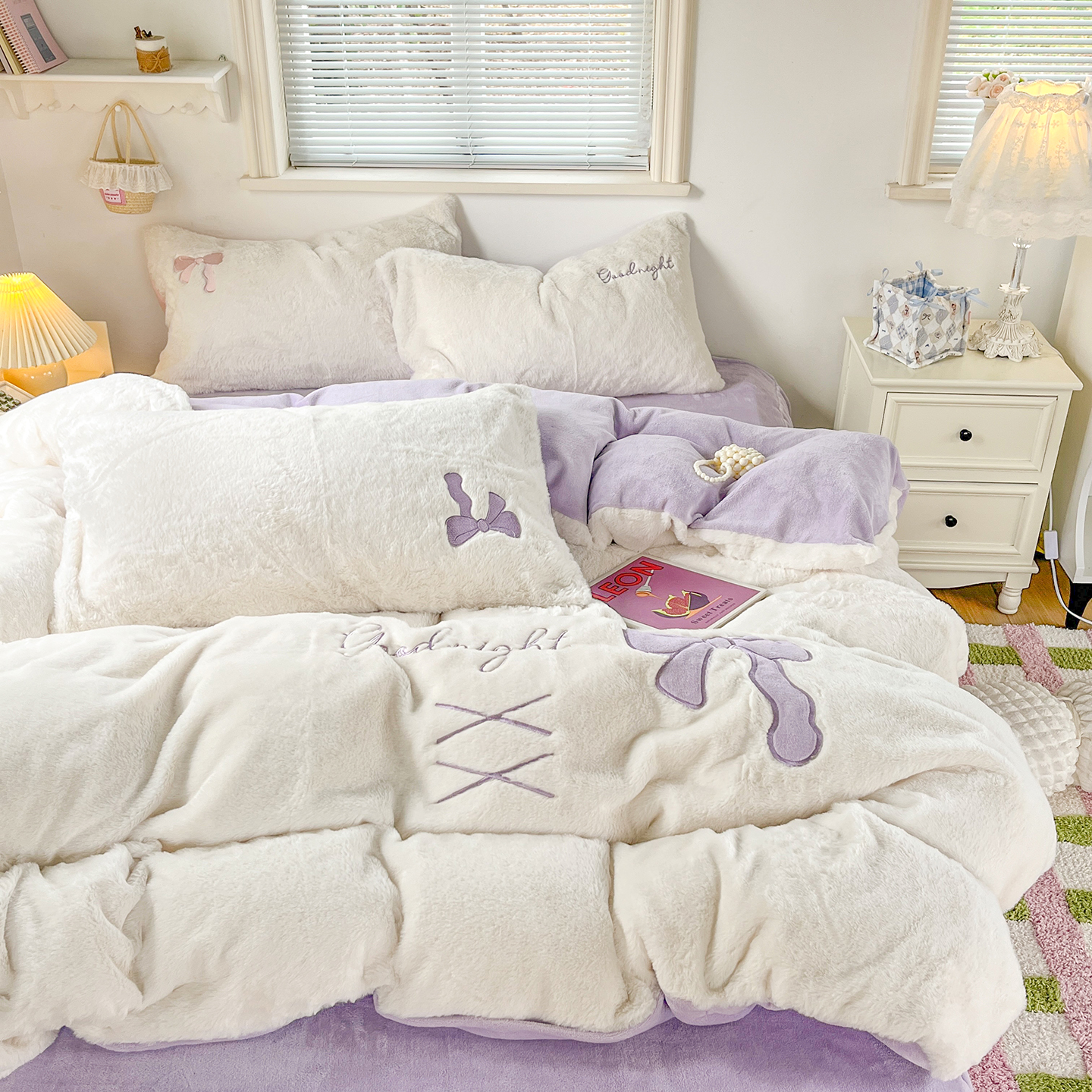 当前位置: 91家纺网 > 商品网购 > 床品套件 > 四件套 > 牛奶绒四件套 > 麦朵家居 2025新款高克重兔毛贴布绣牛奶绒四件套雕花绒法莱绒四件套兔兔绒四件套床笠三件套 兔毛-紫色