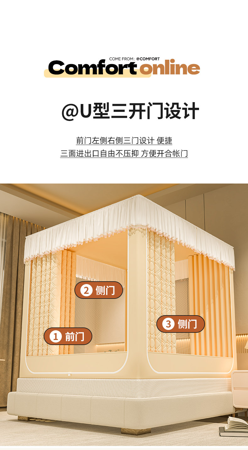 当前位置: 91家纺网 > 商品网购 > 床上用品 > 蚊帐 > 坐床式蚊帐 > (总)海虹蚊帐 2025新款加高内穿U型三门2402保暖款夹棉防尘顶坐床蚊帐