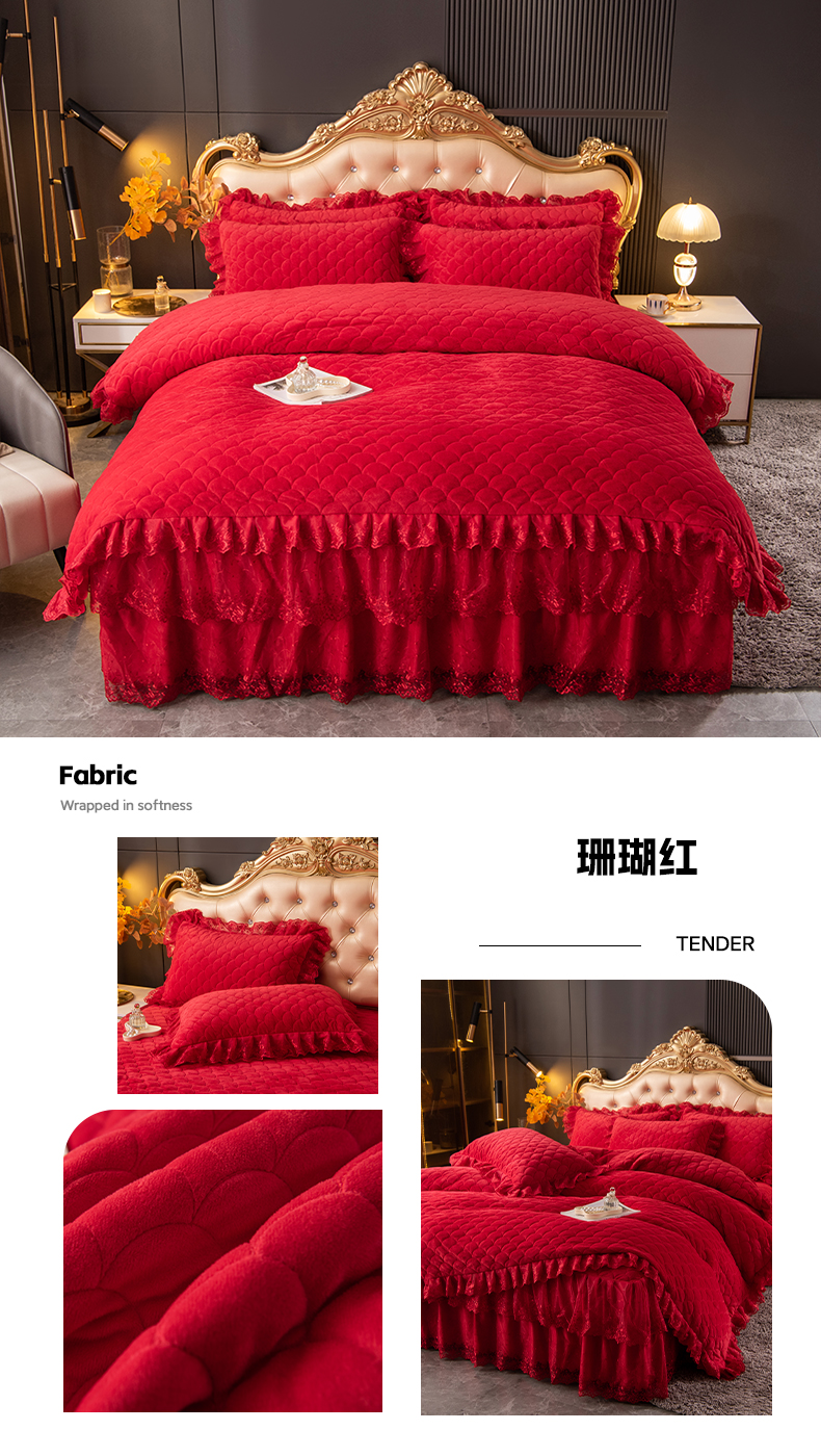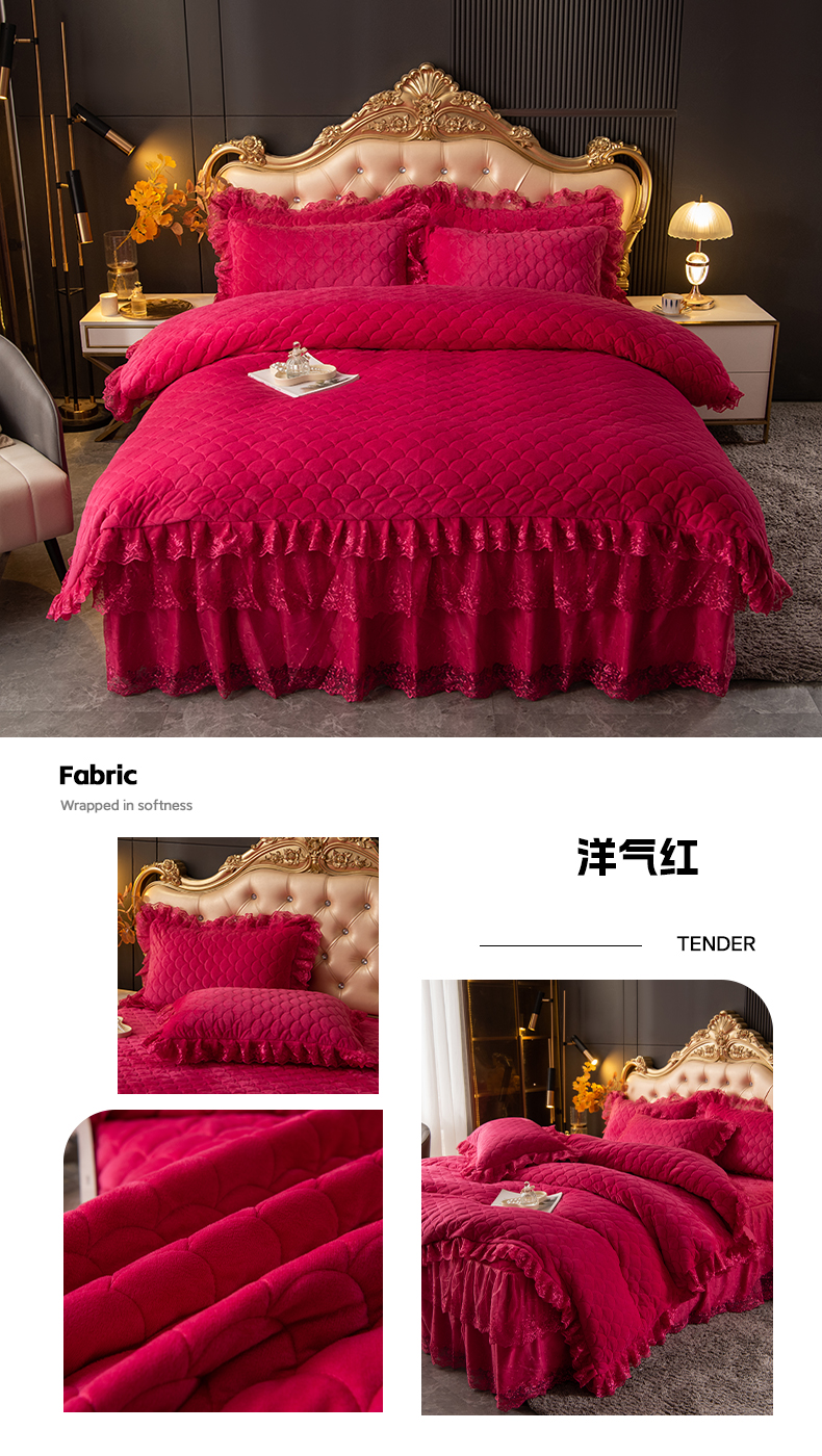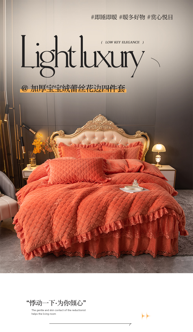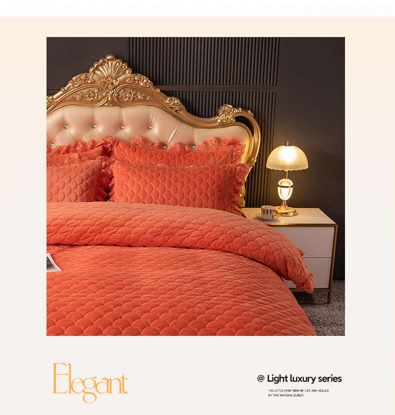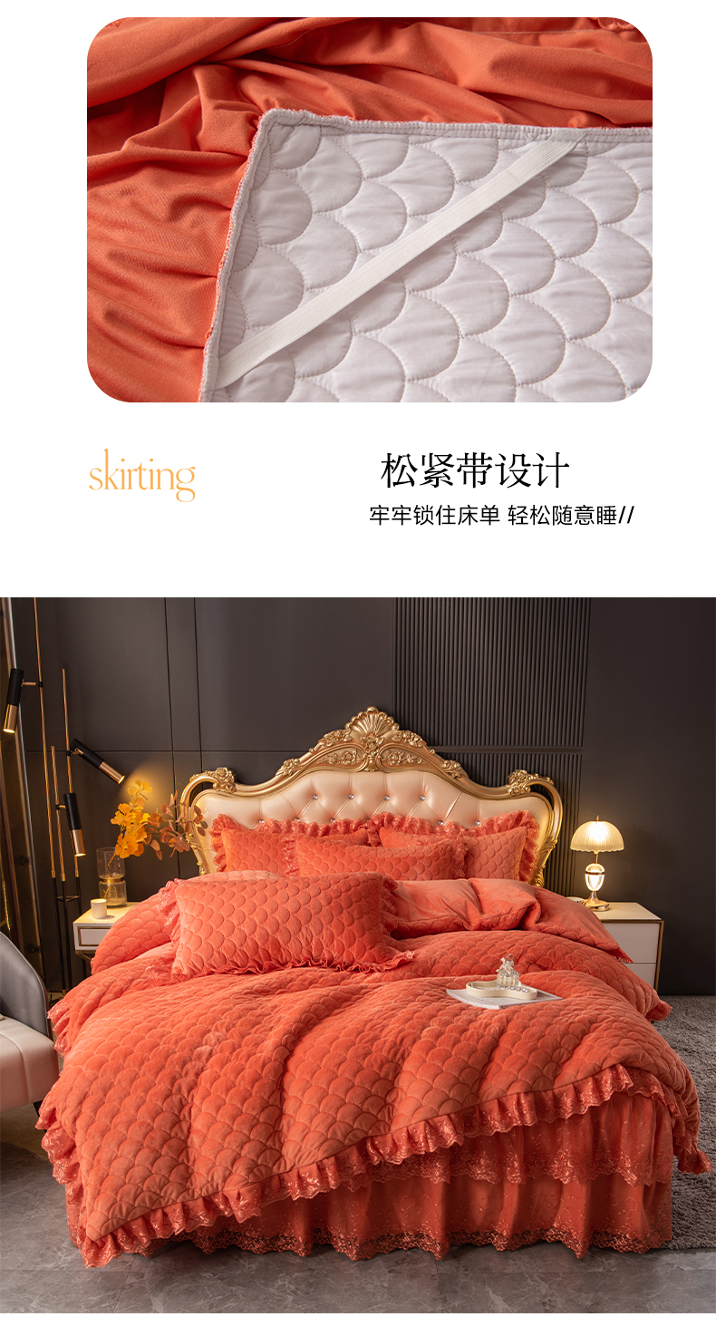 当前位置: 91家纺网 > 商品网购 > 床品套件 > 四件套 > 宝宝绒四件套 > 默忆 2025新款宝宝绒蕾丝刺绣花边四件套 秋日橙
