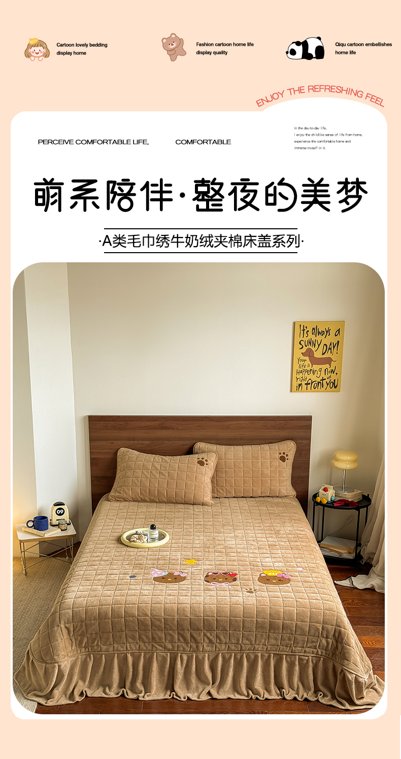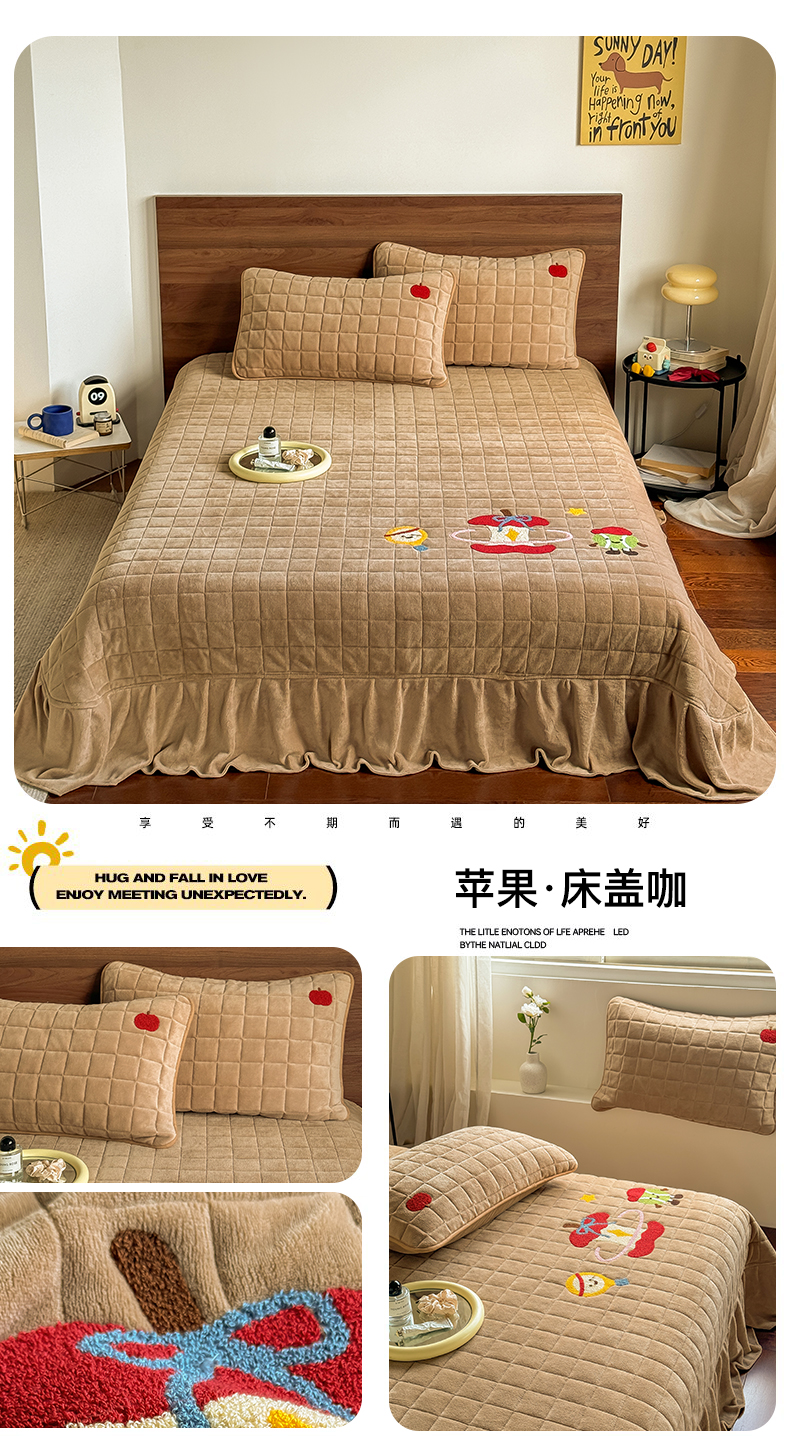 (总)TT.one 塔塔家居 2025新款牛奶绒毛巾绣床盖三件套,苹果-床盖咖,苹果-床盖粉,粉爪-床盖豆沙,粉爪-床盖粉,粉爪-床盖咖,小狗-床盖豆沙,小狗-床盖咖
