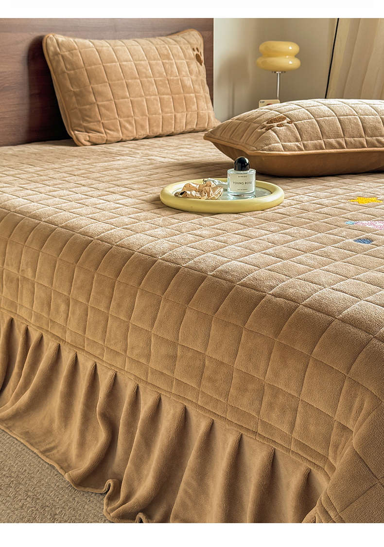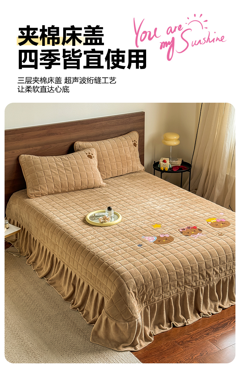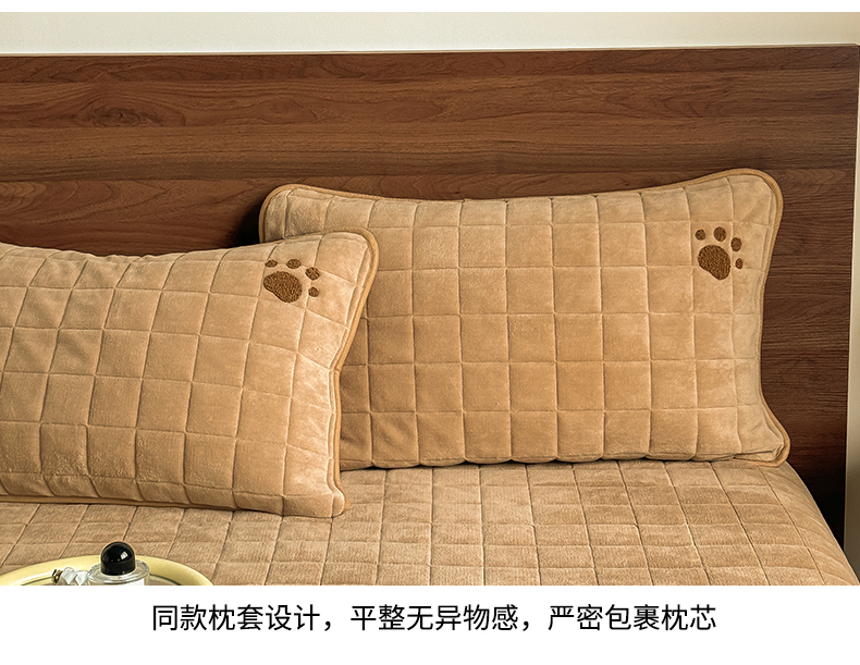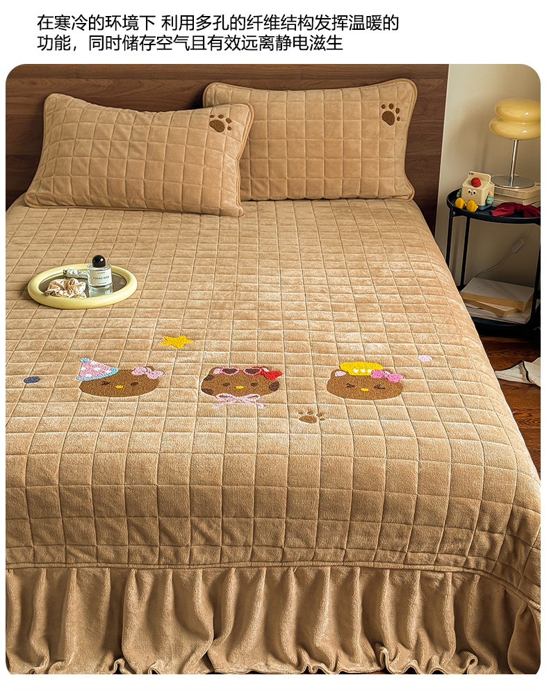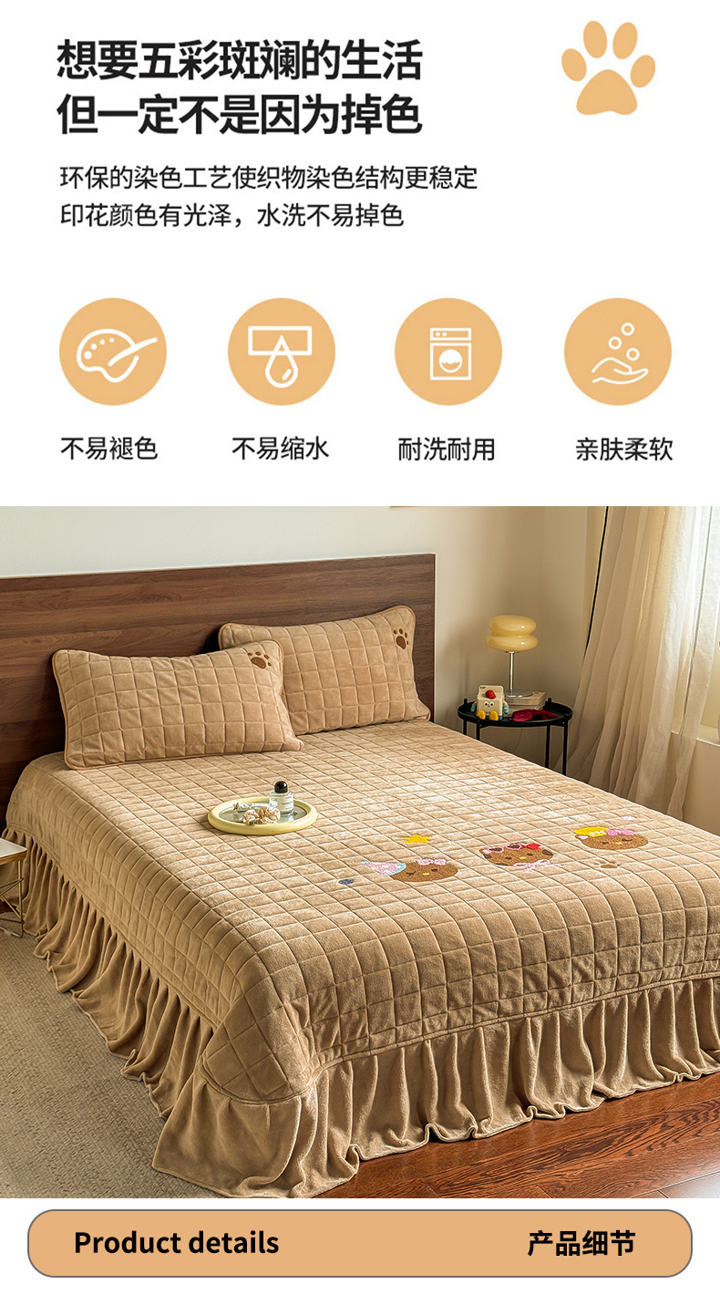 商品名称:TT.one 塔塔家居 2025新款牛奶绒毛巾绣床盖三件套 粉爪-床盖咖